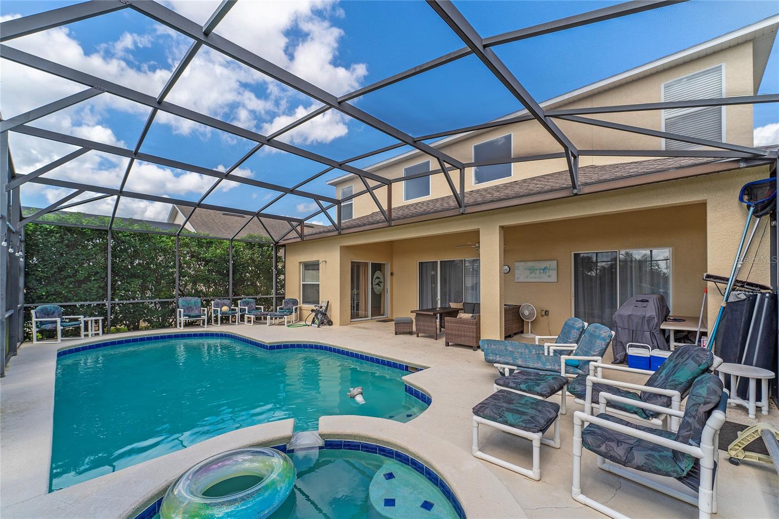 PRICE REDUCED – Income-producing short-term rental opportunity! Don't miss your chance to own this fully furnished, turn-key property that's already operating as a successful short-term rental! Whether you're looking to relocate to sunny Florida, invest in a high-performing vacation rental, or settle into your next primary residence, this versatile home is ready for you. This beautifully maintained 5-bedroom, 4.5-bathroom home features soaring vaulted ceilings, creating a bright and spacious atmosphere throughout. The new roof (2023) and brand-new AC unit (installed January 2025) offer peace of mind and low maintenance for years to come. Currently configured for guests and entertainment, the garage has been transformed into a game room with a pool table, darts, and foosball. Outside, you'll find a private pool, perfect for enjoying Florida’s warm weather or delighting vacationers year-round. Located in a gated community in sought-after Davenport, this home includes access to lawn care, a playground, and tennis courts as part of the HOA. Situated just 20 minutes from Disney World and close to dining, shopping, and major attractions along U.S. 192, this home is in a prime location for short-term rental success. Whether you're expanding your STR portfolio or seeking a home that can effortlessly double as a personal residence, this property checks all the boxes. Schedule your showing today—this is a rare opportunity you don’t want to miss!