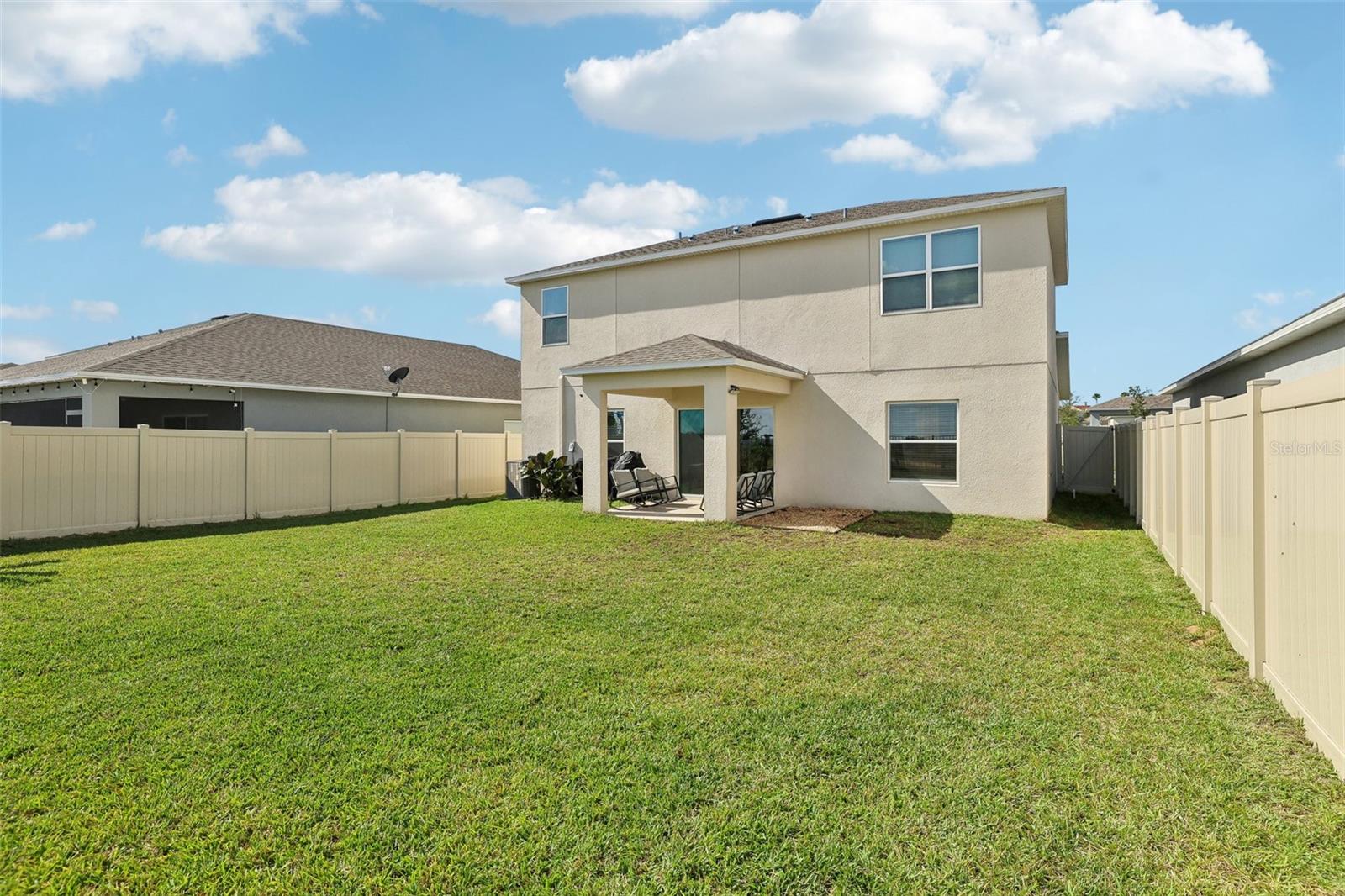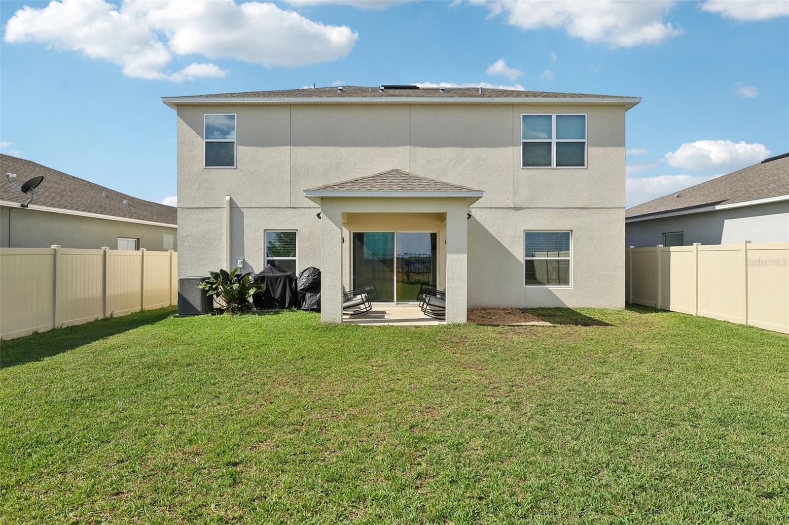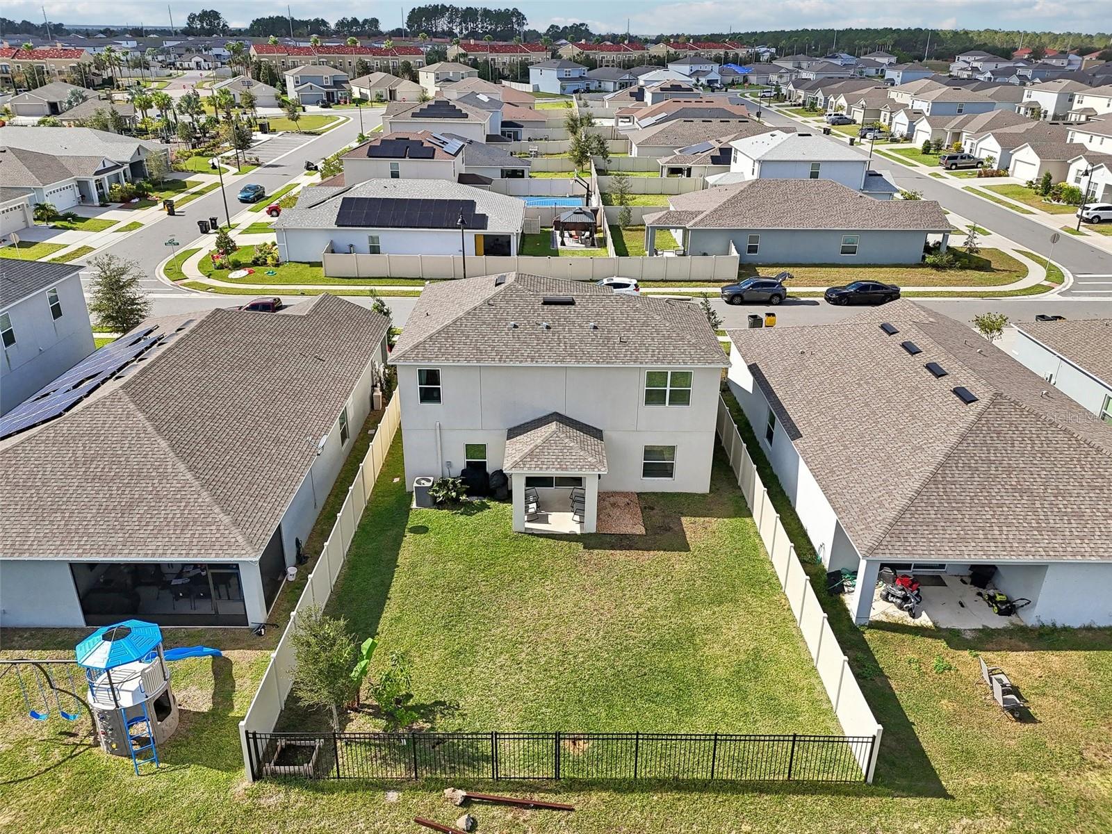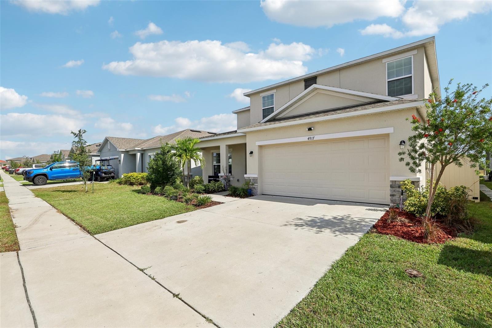 Welcome to this beautifully maintained 5-bedroom, 3- full bathroom home with a two car garage, offering both comfort and style located in Tierra Del Sol. The open floor plan seamlessly connects the spacious living areas, providing the perfect setting for family gatherings and entertaining. The kitchen is a true highlight, featuring stunning cabinets, sleek quartz countertops, and stainless steel appliances. This home boasts a versatile flex room that can easily serve as an office, den, or playroom, offering added flexibility to suit your needs. The downstairs bedroom offers both privacy and convenience, making it ideal for guests, in-laws, or anyone who prefers easy access to a full bathroom without the need to go upstairs. The master bedroom located upstairs along with the other three bedrooms is a true retreat, offering plenty of space to unwind and relax. Featuring a generously sized closet, there’s no shortage of storage for your wardrobe and personal items. The adjoining master bathroom is equally impressive, with elegant finishes and a thoughtful layout. Enjoy privacy with a separate toilet area, and indulge in the luxurious feel of this beautifully appointed bathroom. It’s the perfect place to start and end your day in comfort. With no rear neighbors, you’ll enjoy privacy in your backyard, which is watered by an irrigation system using reclaimed water—an eco-friendly feature you’ll appreciate. Relax and unwind on your covered front porch or rear lanai if you desire more privacy, both perfect for enjoying the beautiful Florida weather. This home features Florida-friendly landscaping in the front yard, enhancing curb appeal while being low maintenance. Enjoy sunny Florida days by taking a dip in the community pool, perfect for cooling off and relaxing. For families, the neighborhood playground provides a great space to play and explore. Pet owners will love the dog park, offering a safe and spacious area for your furry friends to run and socialize. Conveniently located just a short drive from major highways and interstates, this home also offers easy access to nearby shopping, restaurants, fitness centers, theme parks and other amenities, making it an ideal location to live, work and play. Don’t miss out on this amazing home—schedule your home tour today!