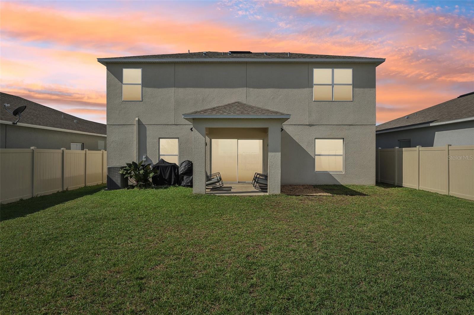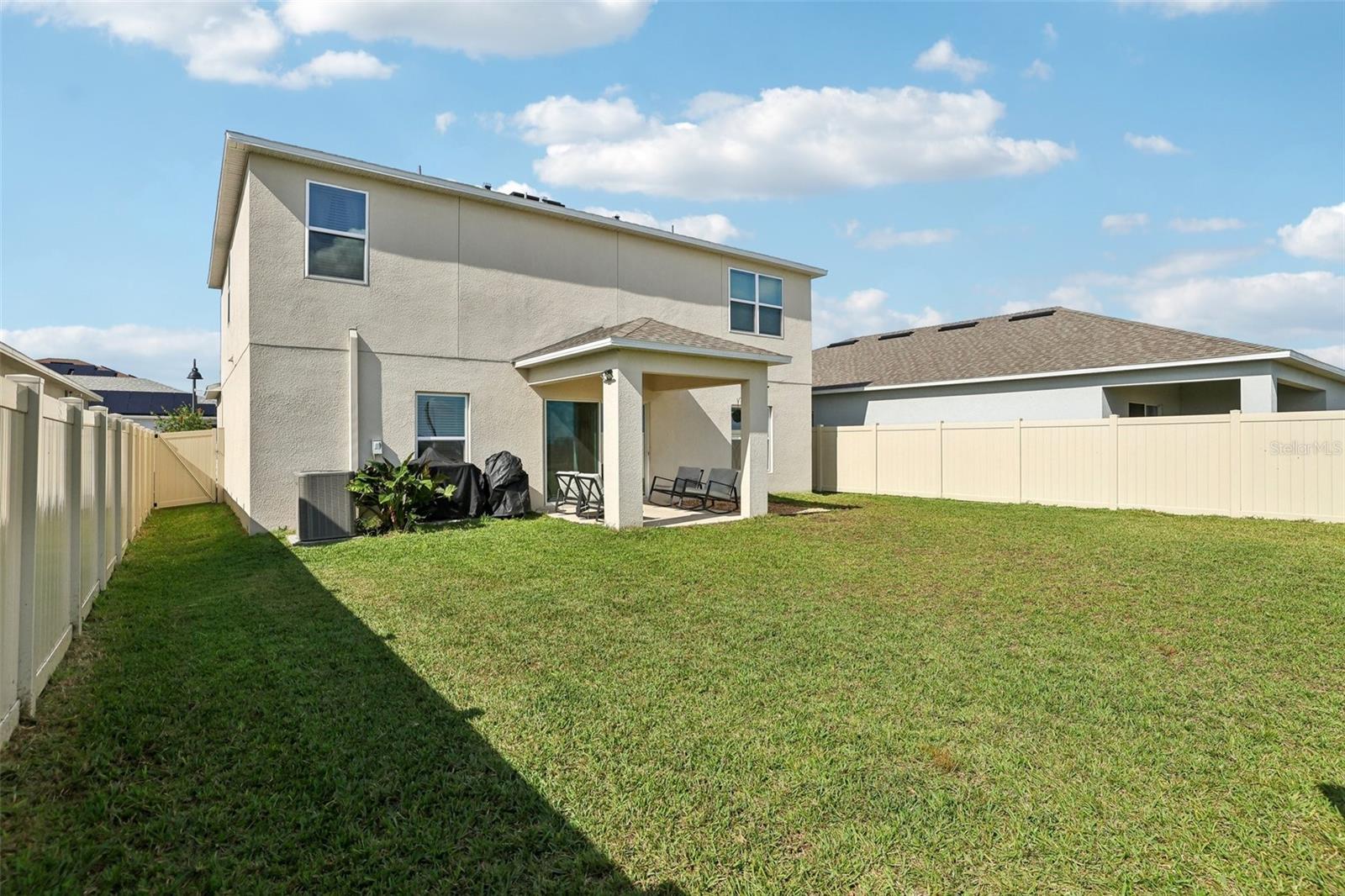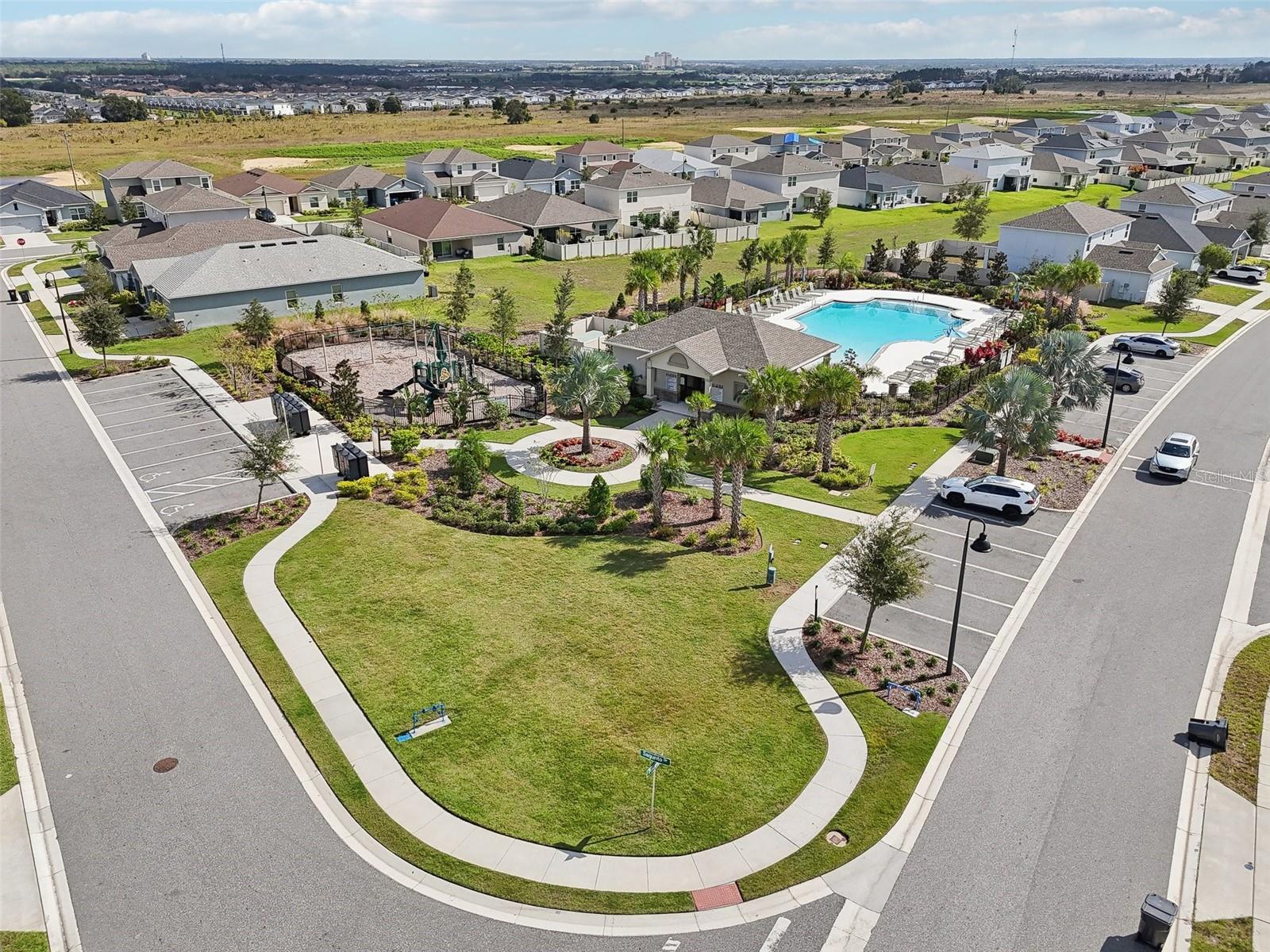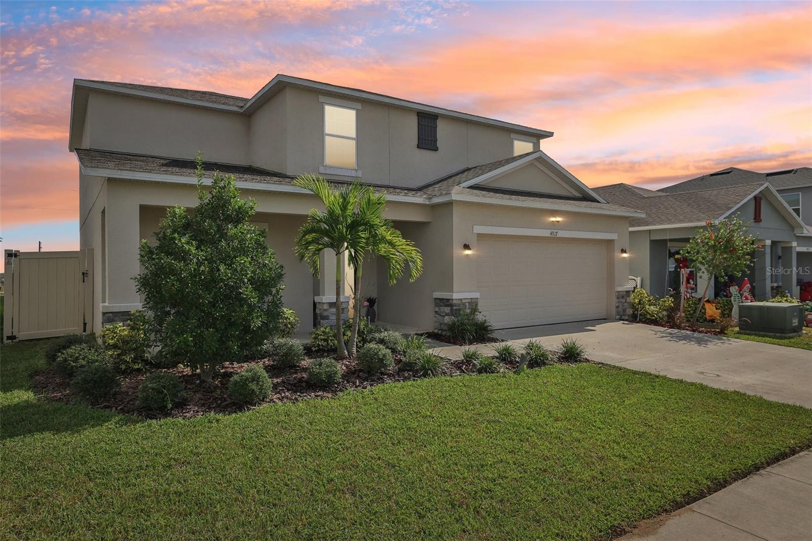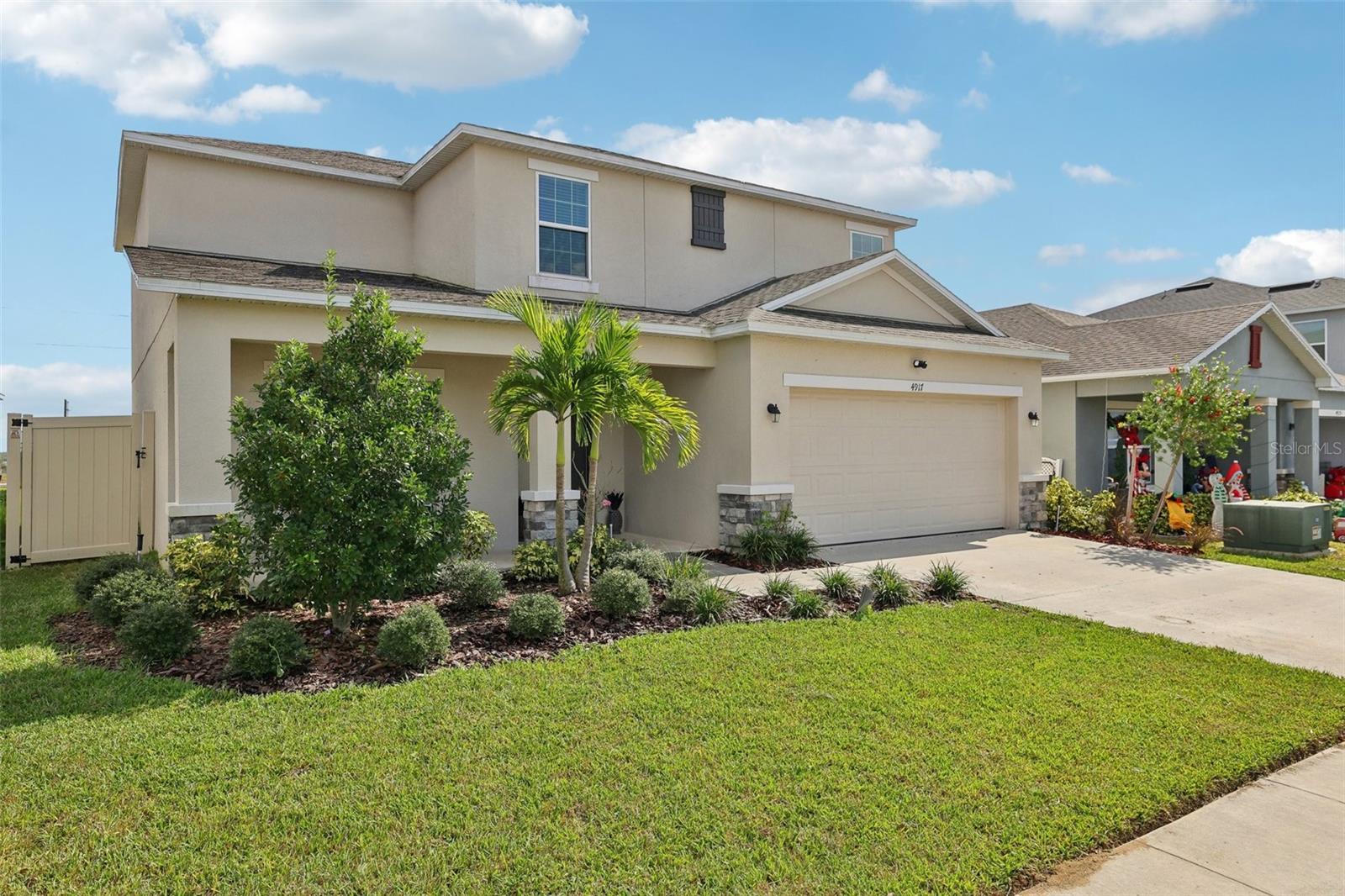 Welcome to this beautifully maintained 5-bedroom, 3- full bathroom home with a two car garage, offering both comfort and style located in Tierra Del Sol. The open floor plan seamlessly connects the spacious living areas, providing the perfect setting for family gatherings and entertaining. The kitchen is a true highlight, featuring stunning cabinets, sleek quartz countertops, and stainless steel appliances. This home boasts a versatile flex room that can easily serve as an office, den, or playroom, offering added flexibility to suit your needs. The downstairs bedroom offers both privacy and convenience, making it ideal for guests, in-laws, or anyone who prefers easy access to a full bathroom without the need to go upstairs. The master bedroom located upstairs along with the other three bedrooms is a true retreat, offering plenty of space to unwind and relax. Featuring a generously sized closet, there’s no shortage of storage for your wardrobe and personal items. The adjoining master bathroom is equally impressive, with elegant finishes and a thoughtful layout. Enjoy privacy with a separate toilet area, and indulge in the luxurious feel of this beautifully appointed bathroom. It’s the perfect place to start and end your day in comfort. With no rear neighbors, you’ll enjoy privacy in your backyard, which is watered by an irrigation system using reclaimed water—an eco-friendly feature you’ll appreciate. Relax and unwind on your covered front porch or rear lanai if you desire more privacy, both perfect for enjoying the beautiful Florida weather. This home features Florida-friendly landscaping in the front yard, enhancing curb appeal while being low maintenance. Enjoy sunny Florida days by taking a dip in the community pool, perfect for cooling off and relaxing. For families, the neighborhood playground provides a great space to play and explore. Pet owners will love the dog park, offering a safe and spacious area for your furry friends to run and socialize. Conveniently located just a short drive from major highways and interstates, this home also offers easy access to nearby shopping, restaurants, fitness centers, theme parks and other amenities, making it an ideal location to live, work and play. Don’t miss out on this amazing home—schedule your home tour today!