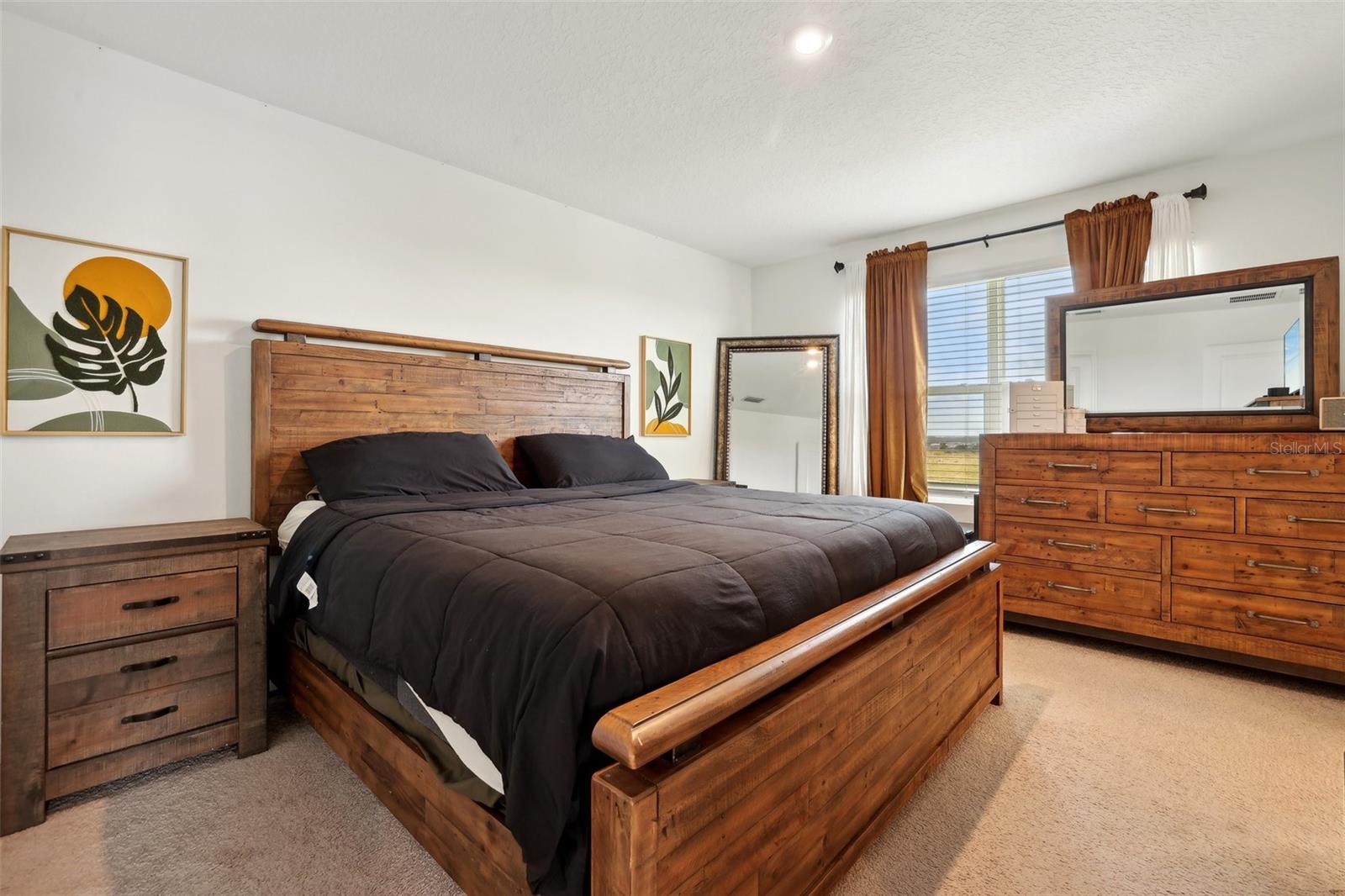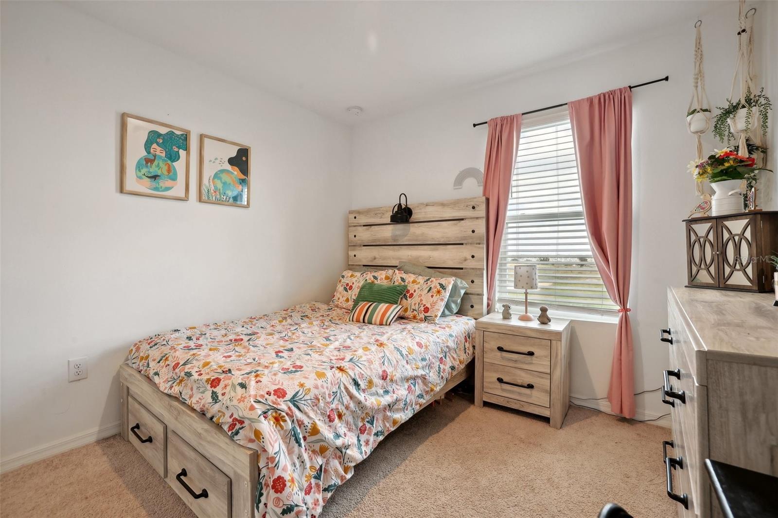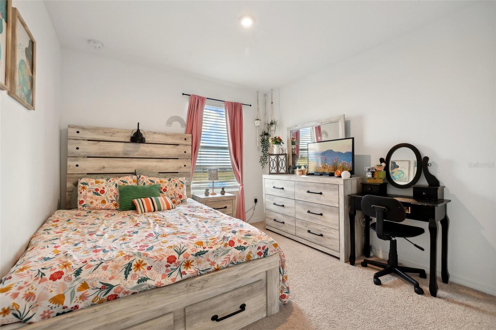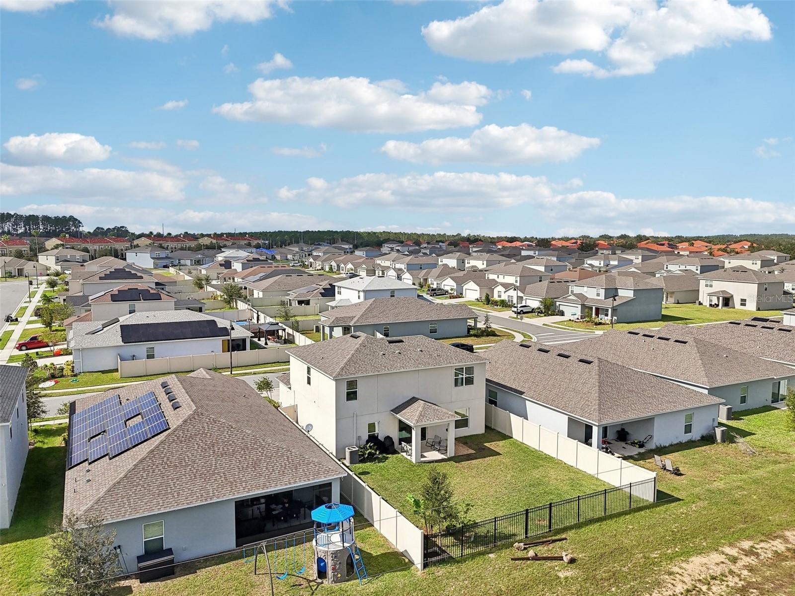 Welcome to this beautifully maintained 5-bedroom, 3- full bathroom home with a two car garage, offering both comfort and style located in Tierra Del Sol. The open floor plan seamlessly connects the spacious living areas, providing the perfect setting for family gatherings and entertaining. The kitchen is a true highlight, featuring stunning cabinets, sleek quartz countertops, and stainless steel appliances. This home boasts a versatile flex room that can easily serve as an office, den, or playroom, offering added flexibility to suit your needs. The downstairs bedroom offers both privacy and convenience, making it ideal for guests, in-laws, or anyone who prefers easy access to a full bathroom without the need to go upstairs. The master bedroom located upstairs along with the other three bedrooms is a true retreat, offering plenty of space to unwind and relax. Featuring a generously sized closet, there’s no shortage of storage for your wardrobe and personal items. The adjoining master bathroom is equally impressive, with elegant finishes and a thoughtful layout. Enjoy privacy with a separate toilet area, and indulge in the luxurious feel of this beautifully appointed bathroom. It’s the perfect place to start and end your day in comfort. With no rear neighbors, you’ll enjoy privacy in your backyard, which is watered by an irrigation system using reclaimed water—an eco-friendly feature you’ll appreciate. Relax and unwind on your covered front porch or rear lanai if you desire more privacy, both perfect for enjoying the beautiful Florida weather. This home features Florida-friendly landscaping in the front yard, enhancing curb appeal while being low maintenance. Enjoy sunny Florida days by taking a dip in the community pool, perfect for cooling off and relaxing. For families, the neighborhood playground provides a great space to play and explore. Pet owners will love the dog park, offering a safe and spacious area for your furry friends to run and socialize. Conveniently located just a short drive from major highways and interstates, this home also offers easy access to nearby shopping, restaurants, fitness centers, theme parks and other amenities, making it an ideal location to live, work and play. Don’t miss out on this amazing home—schedule your home tour today!
