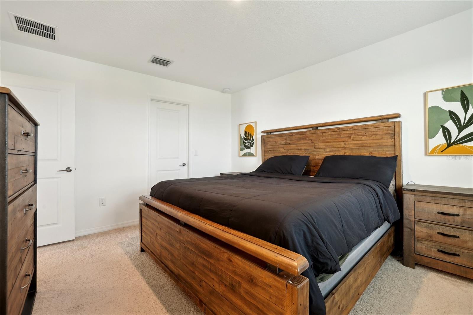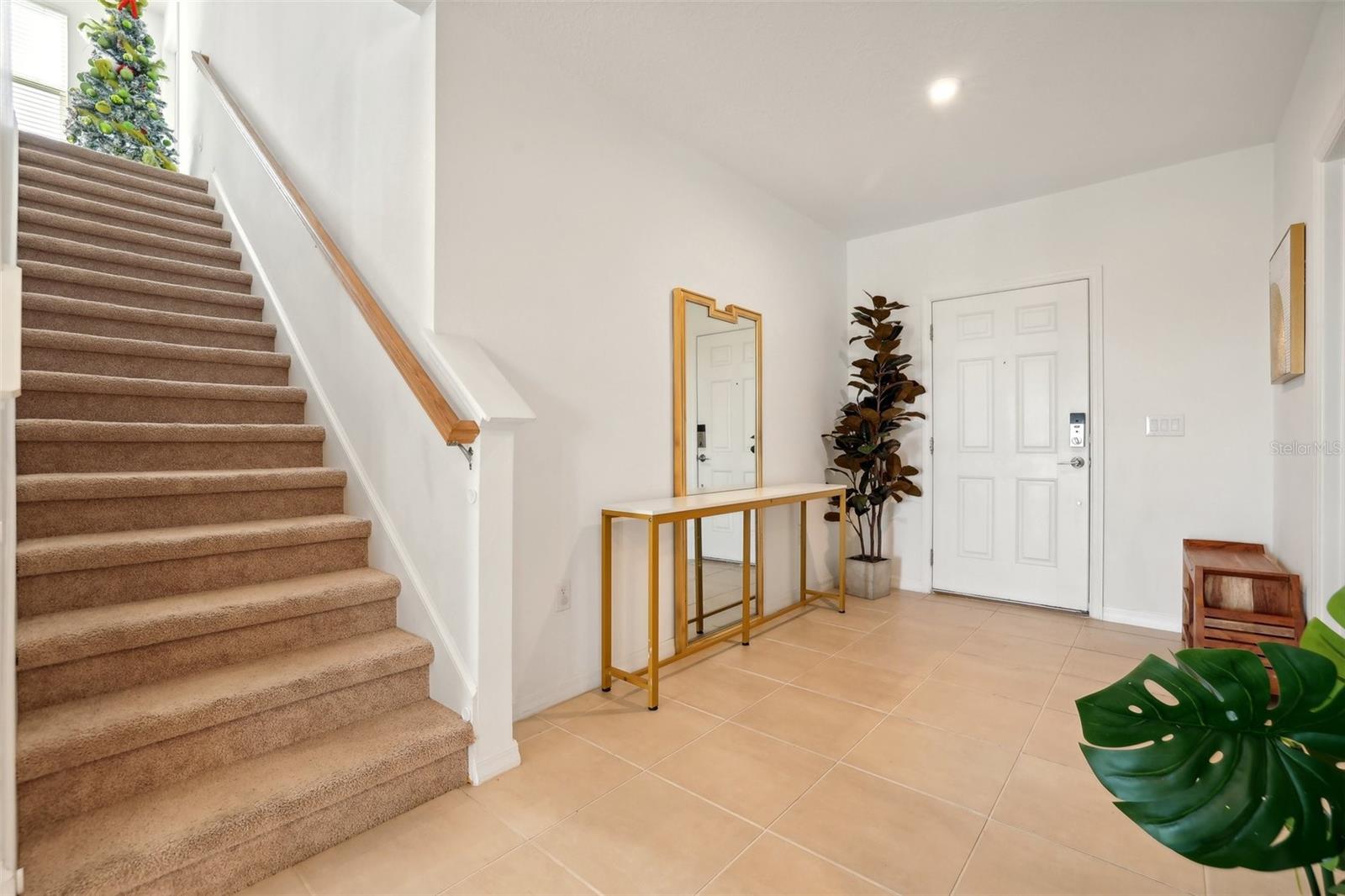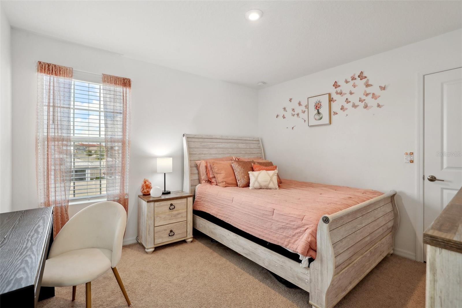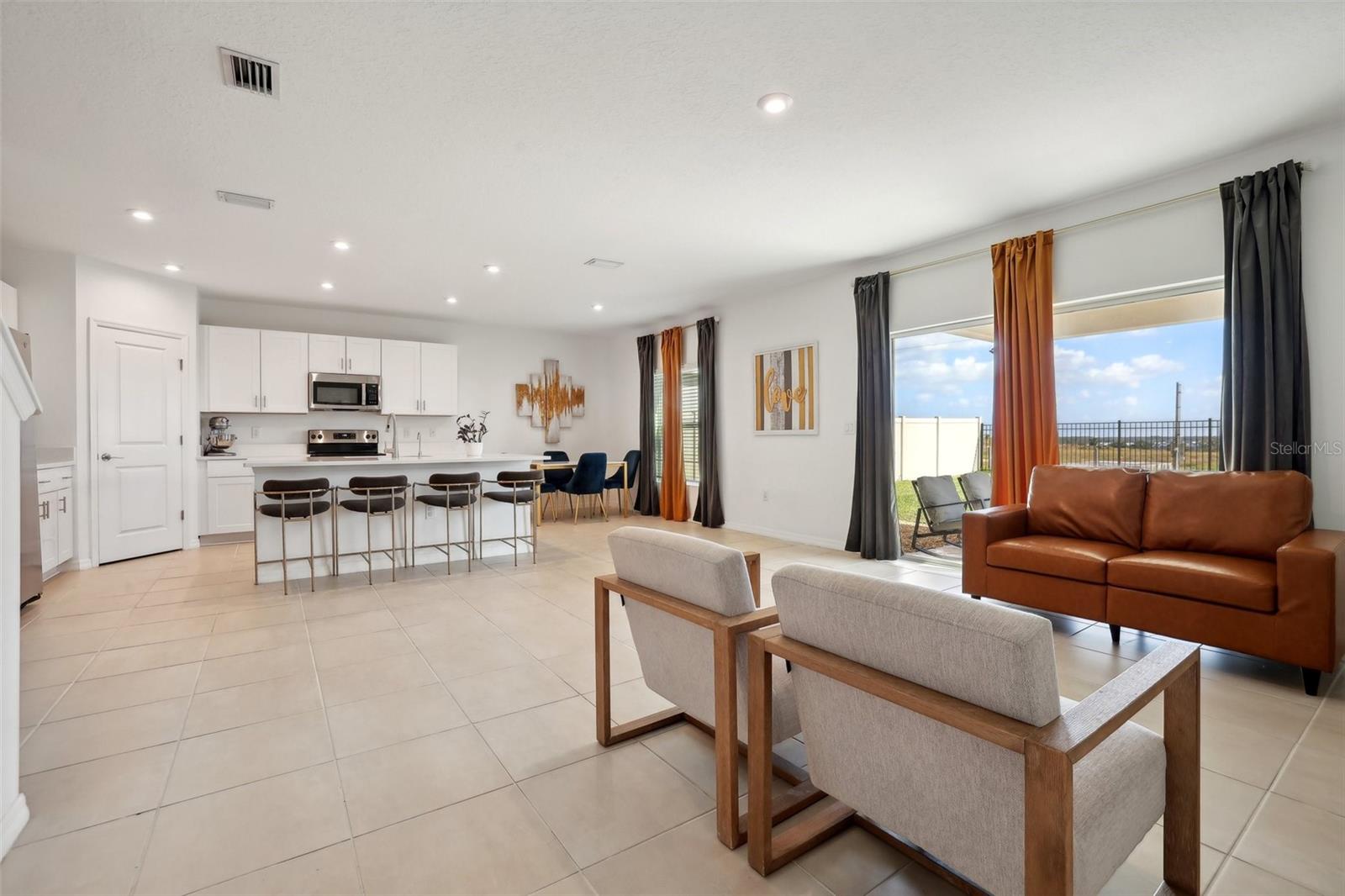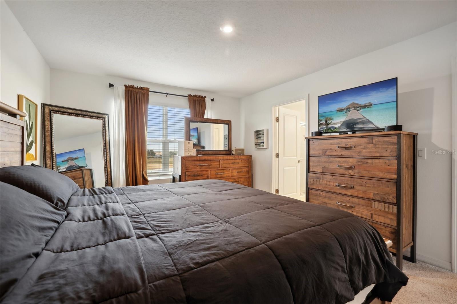 Welcome to this beautifully maintained 5-bedroom, 3- full bathroom home with a two car garage, offering both comfort and style located in Tierra Del Sol. The open floor plan seamlessly connects the spacious living areas, providing the perfect setting for family gatherings and entertaining. The kitchen is a true highlight, featuring stunning cabinets, sleek quartz countertops, and stainless steel appliances. This home boasts a versatile flex room that can easily serve as an office, den, or playroom, offering added flexibility to suit your needs. The downstairs bedroom offers both privacy and convenience, making it ideal for guests, in-laws, or anyone who prefers easy access to a full bathroom without the need to go upstairs. The master bedroom located upstairs along with the other three bedrooms is a true retreat, offering plenty of space to unwind and relax. Featuring a generously sized closet, there’s no shortage of storage for your wardrobe and personal items. The adjoining master bathroom is equally impressive, with elegant finishes and a thoughtful layout. Enjoy privacy with a separate toilet area, and indulge in the luxurious feel of this beautifully appointed bathroom. It’s the perfect place to start and end your day in comfort. With no rear neighbors, you’ll enjoy privacy in your backyard, which is watered by an irrigation system using reclaimed water—an eco-friendly feature you’ll appreciate. Relax and unwind on your covered front porch or rear lanai if you desire more privacy, both perfect for enjoying the beautiful Florida weather. This home features Florida-friendly landscaping in the front yard, enhancing curb appeal while being low maintenance. Enjoy sunny Florida days by taking a dip in the community pool, perfect for cooling off and relaxing. For families, the neighborhood playground provides a great space to play and explore. Pet owners will love the dog park, offering a safe and spacious area for your furry friends to run and socialize. Conveniently located just a short drive from major highways and interstates, this home also offers easy access to nearby shopping, restaurants, fitness centers, theme parks and other amenities, making it an ideal location to live, work and play. Don’t miss out on this amazing home—schedule your home tour today!