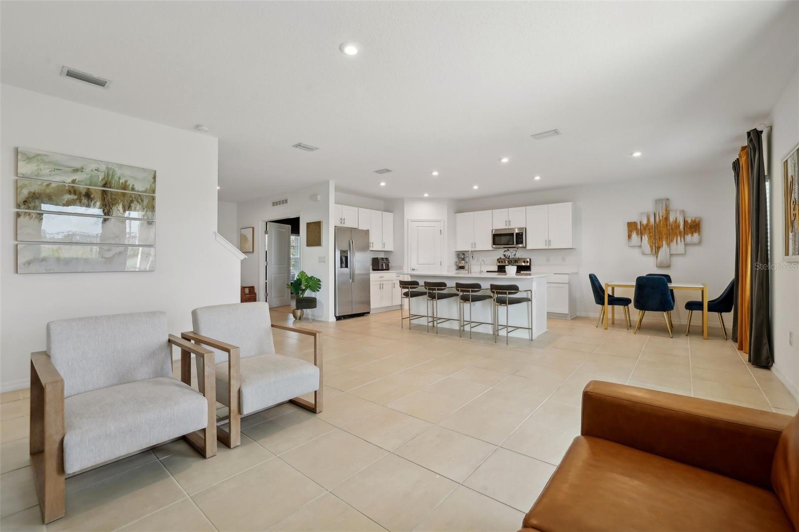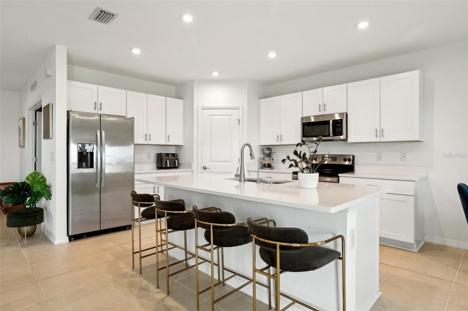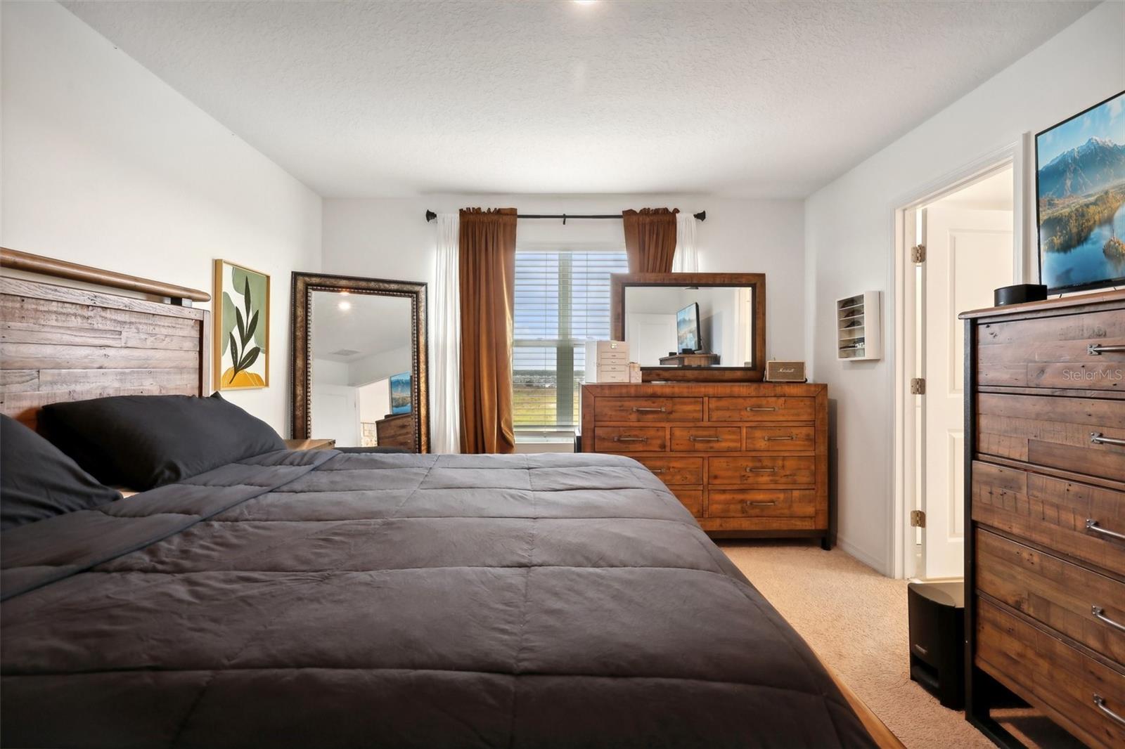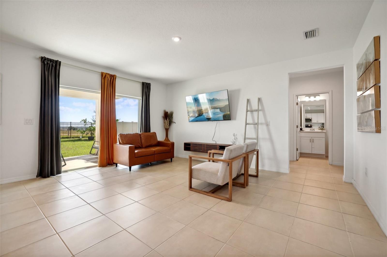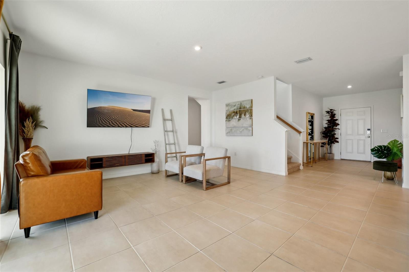 Welcome to this beautifully maintained 5-bedroom, 3- full bathroom home with a two car garage, offering both comfort and style located in Tierra Del Sol. The open floor plan seamlessly connects the spacious living areas, providing the perfect setting for family gatherings and entertaining. The kitchen is a true highlight, featuring stunning cabinets, sleek quartz countertops, and stainless steel appliances. This home boasts a versatile flex room that can easily serve as an office, den, or playroom, offering added flexibility to suit your needs. The downstairs bedroom offers both privacy and convenience, making it ideal for guests, in-laws, or anyone who prefers easy access to a full bathroom without the need to go upstairs. The master bedroom located upstairs along with the other three bedrooms is a true retreat, offering plenty of space to unwind and relax. Featuring a generously sized closet, there’s no shortage of storage for your wardrobe and personal items. The adjoining master bathroom is equally impressive, with elegant finishes and a thoughtful layout. Enjoy privacy with a separate toilet area, and indulge in the luxurious feel of this beautifully appointed bathroom. It’s the perfect place to start and end your day in comfort. With no rear neighbors, you’ll enjoy privacy in your backyard, which is watered by an irrigation system using reclaimed water—an eco-friendly feature you’ll appreciate. Relax and unwind on your covered front porch or rear lanai if you desire more privacy, both perfect for enjoying the beautiful Florida weather. This home features Florida-friendly landscaping in the front yard, enhancing curb appeal while being low maintenance. Enjoy sunny Florida days by taking a dip in the community pool, perfect for cooling off and relaxing. For families, the neighborhood playground provides a great space to play and explore. Pet owners will love the dog park, offering a safe and spacious area for your furry friends to run and socialize. Conveniently located just a short drive from major highways and interstates, this home also offers easy access to nearby shopping, restaurants, fitness centers, theme parks and other amenities, making it an ideal location to live, work and play. Don’t miss out on this amazing home—schedule your home tour today!