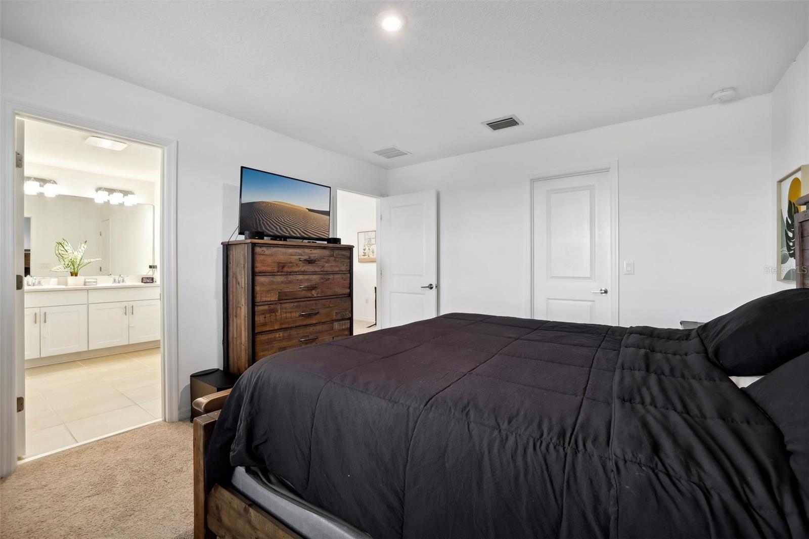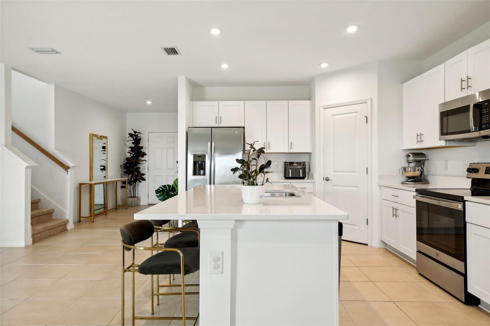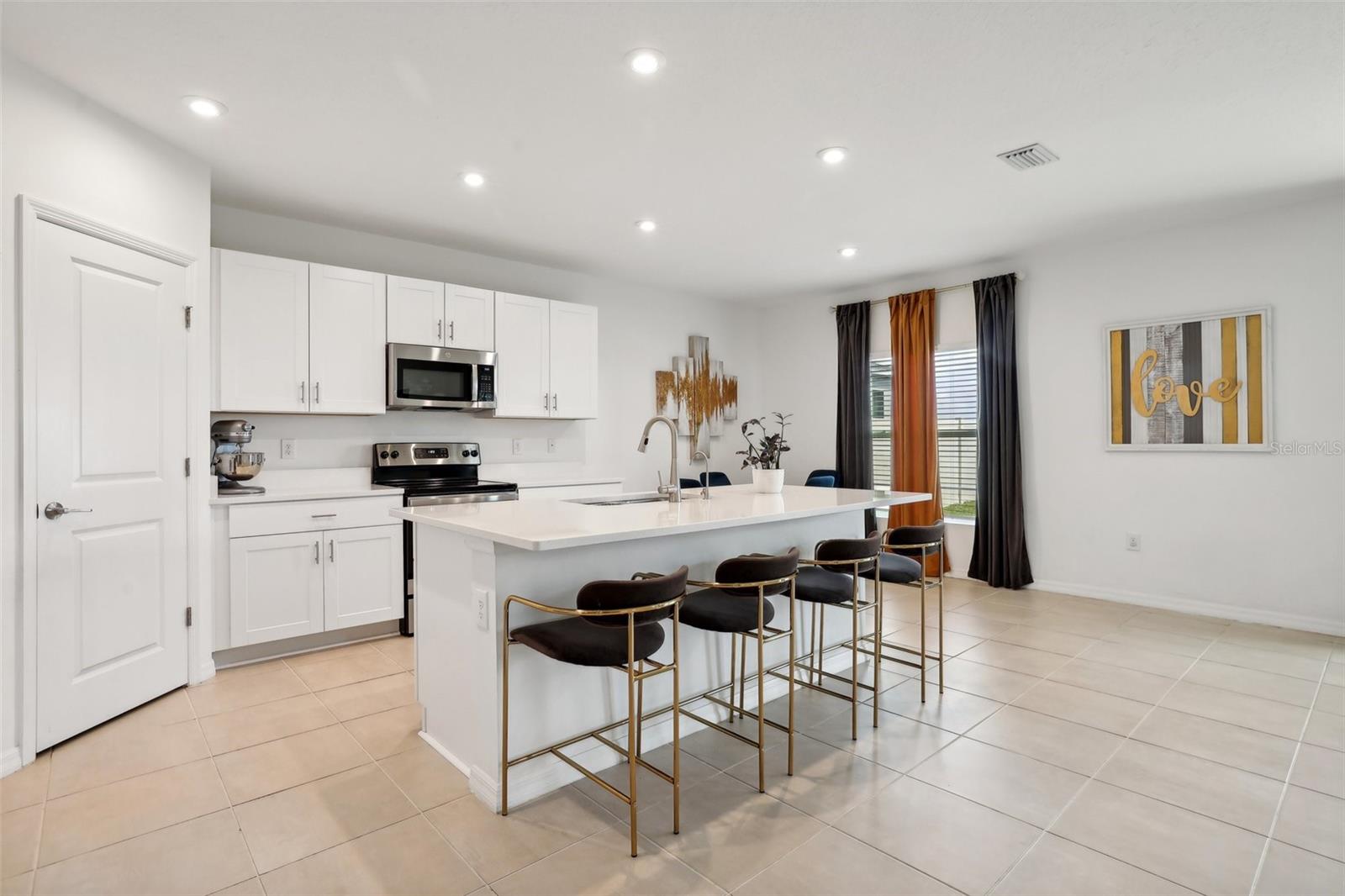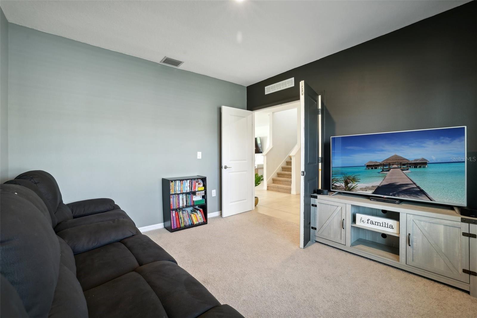 Welcome to this beautifully maintained 5-bedroom, 3- full bathroom home with a two car garage, offering both comfort and style located in Tierra Del Sol. The open floor plan seamlessly connects the spacious living areas, providing the perfect setting for family gatherings and entertaining. The kitchen is a true highlight, featuring stunning cabinets, sleek quartz countertops, and stainless steel appliances. This home boasts a versatile flex room that can easily serve as an office, den, or playroom, offering added flexibility to suit your needs. The downstairs bedroom offers both privacy and convenience, making it ideal for guests, in-laws, or anyone who prefers easy access to a full bathroom without the need to go upstairs. The master bedroom located upstairs along with the other three bedrooms is a true retreat, offering plenty of space to unwind and relax. Featuring a generously sized closet, there’s no shortage of storage for your wardrobe and personal items. The adjoining master bathroom is equally impressive, with elegant finishes and a thoughtful layout. Enjoy privacy with a separate toilet area, and indulge in the luxurious feel of this beautifully appointed bathroom. It’s the perfect place to start and end your day in comfort. With no rear neighbors, you’ll enjoy privacy in your backyard, which is watered by an irrigation system using reclaimed water—an eco-friendly feature you’ll appreciate. Relax and unwind on your covered front porch or rear lanai if you desire more privacy, both perfect for enjoying the beautiful Florida weather. This home features Florida-friendly landscaping in the front yard, enhancing curb appeal while being low maintenance. Enjoy sunny Florida days by taking a dip in the community pool, perfect for cooling off and relaxing. For families, the neighborhood playground provides a great space to play and explore. Pet owners will love the dog park, offering a safe and spacious area for your furry friends to run and socialize. Conveniently located just a short drive from major highways and interstates, this home also offers easy access to nearby shopping, restaurants, fitness centers, theme parks and other amenities, making it an ideal location to live, work and play. Don’t miss out on this amazing home—schedule your home tour today!
