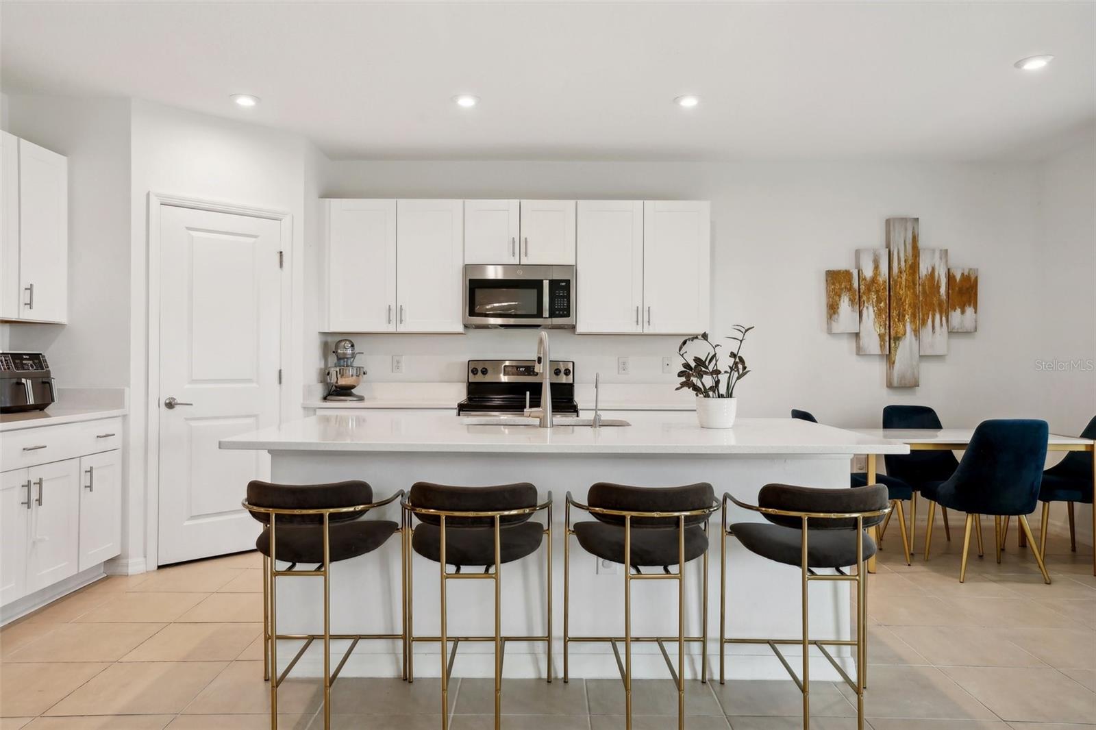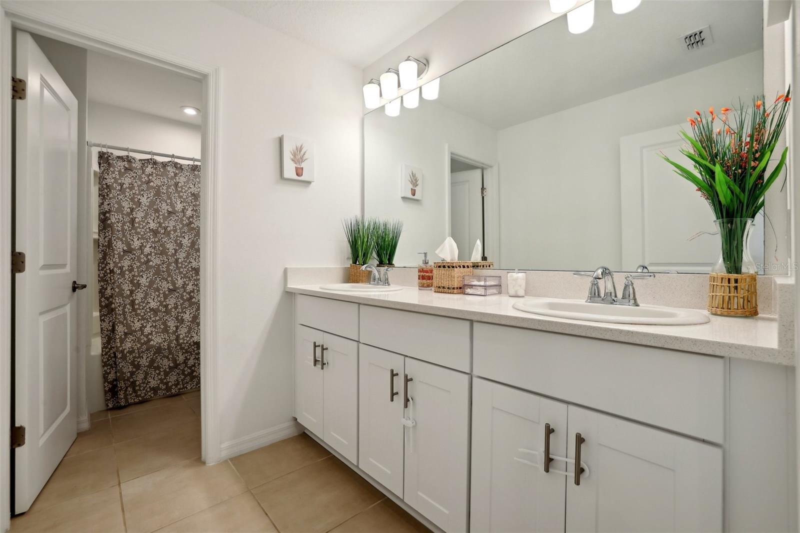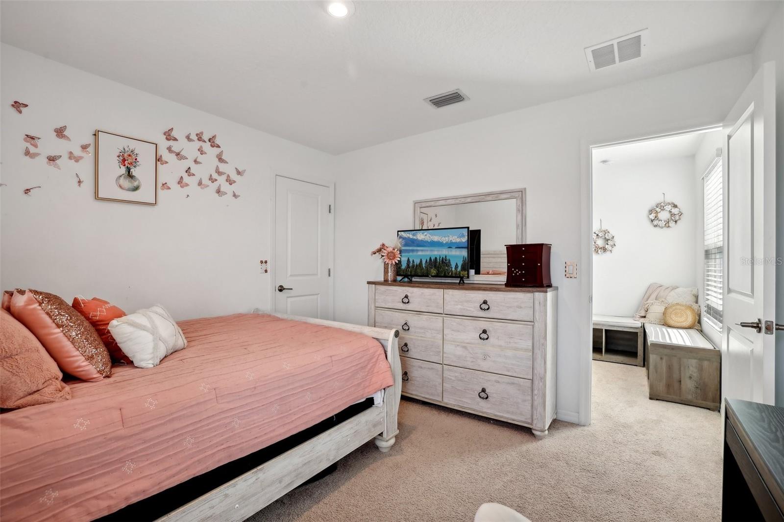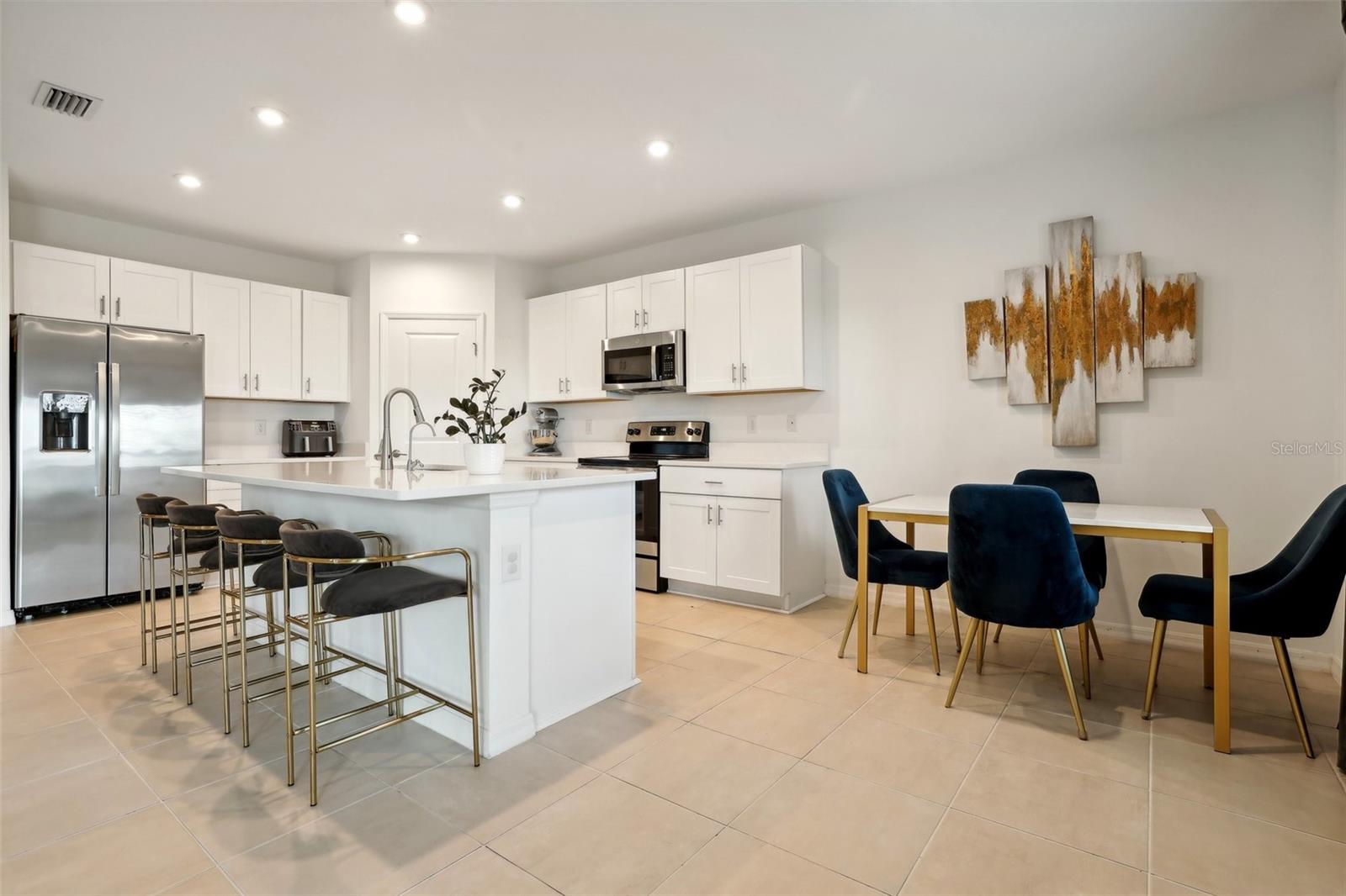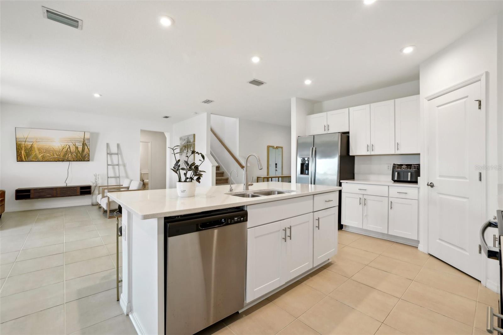 Welcome to this beautifully maintained 5-bedroom, 3- full bathroom home with a two car garage, offering both comfort and style located in Tierra Del Sol. The open floor plan seamlessly connects the spacious living areas, providing the perfect setting for family gatherings and entertaining. The kitchen is a true highlight, featuring stunning cabinets, sleek quartz countertops, and stainless steel appliances. This home boasts a versatile flex room that can easily serve as an office, den, or playroom, offering added flexibility to suit your needs. The downstairs bedroom offers both privacy and convenience, making it ideal for guests, in-laws, or anyone who prefers easy access to a full bathroom without the need to go upstairs. The master bedroom located upstairs along with the other three bedrooms is a true retreat, offering plenty of space to unwind and relax. Featuring a generously sized closet, there’s no shortage of storage for your wardrobe and personal items. The adjoining master bathroom is equally impressive, with elegant finishes and a thoughtful layout. Enjoy privacy with a separate toilet area, and indulge in the luxurious feel of this beautifully appointed bathroom. It’s the perfect place to start and end your day in comfort. With no rear neighbors, you’ll enjoy privacy in your backyard, which is watered by an irrigation system using reclaimed water—an eco-friendly feature you’ll appreciate. Relax and unwind on your covered front porch or rear lanai if you desire more privacy, both perfect for enjoying the beautiful Florida weather. This home features Florida-friendly landscaping in the front yard, enhancing curb appeal while being low maintenance. Enjoy sunny Florida days by taking a dip in the community pool, perfect for cooling off and relaxing. For families, the neighborhood playground provides a great space to play and explore. Pet owners will love the dog park, offering a safe and spacious area for your furry friends to run and socialize. Conveniently located just a short drive from major highways and interstates, this home also offers easy access to nearby shopping, restaurants, fitness centers, theme parks and other amenities, making it an ideal location to live, work and play. Don’t miss out on this amazing home—schedule your home tour today!