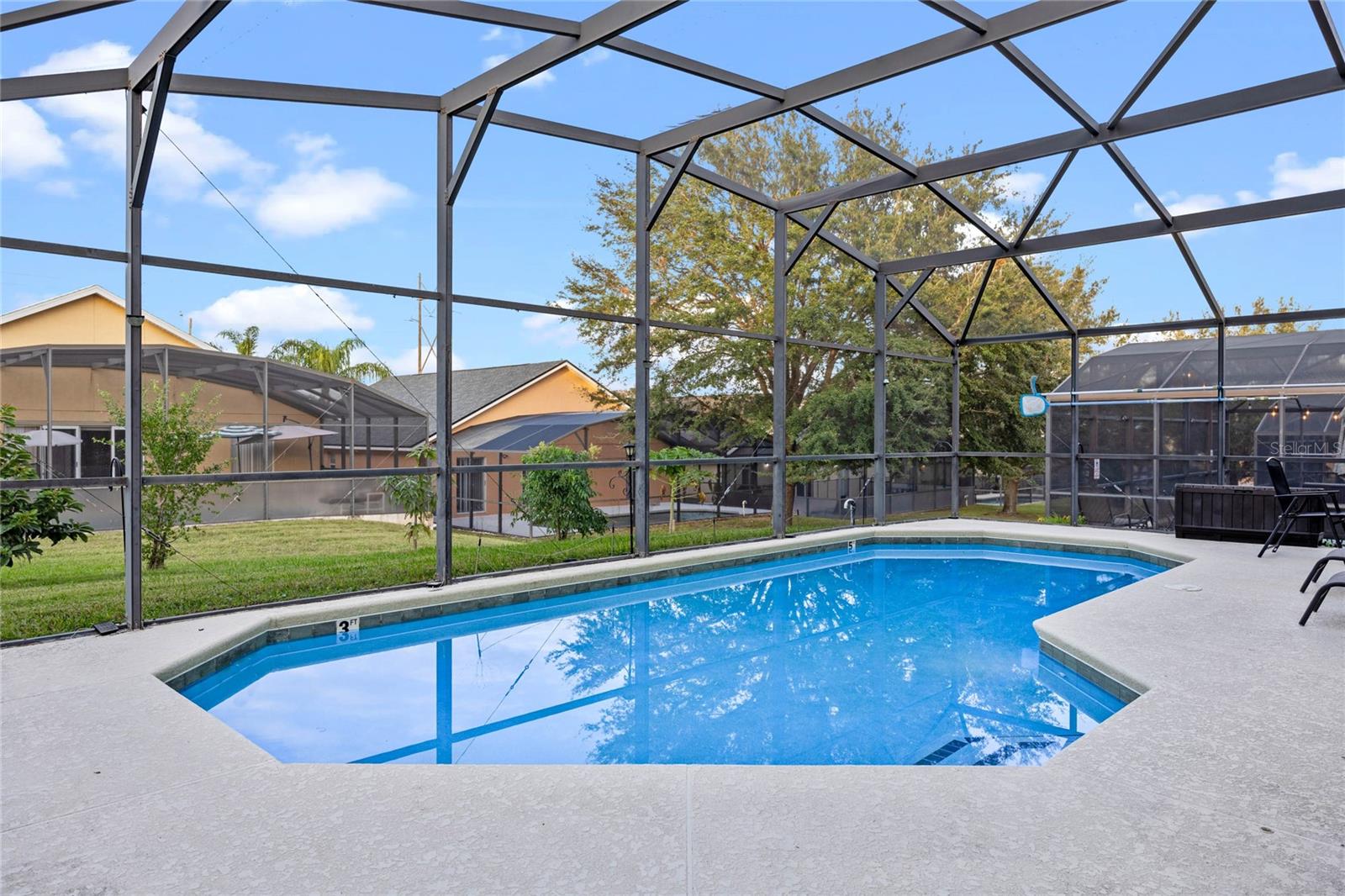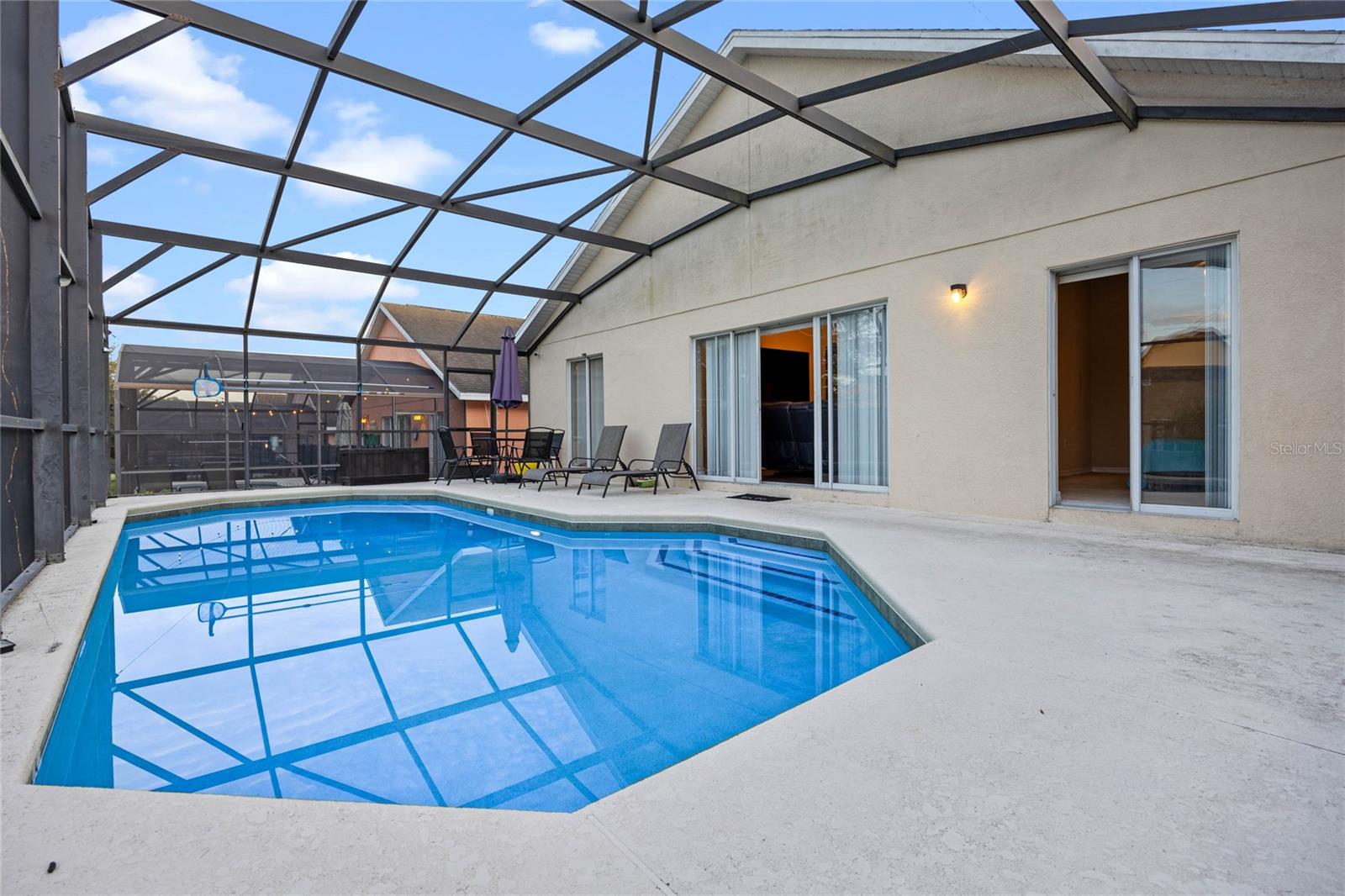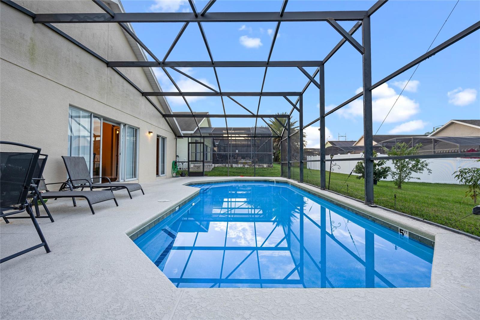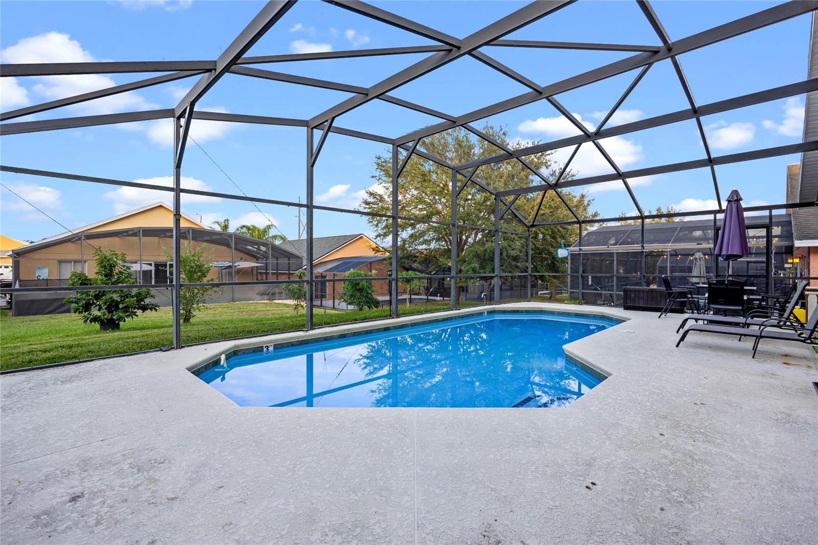 Check out 132 Vine Dr, Davenport, FL – a fantastic one-story pool home that mixes comfort with convenience. Nestled in a quiet neighborhood, this place has a roomy and well-thought-out layout that's perfect for modern living. Upon entering, you'll find an open floor plan that effortlessly connects the living room, dining area, and kitchen, creating a welcoming space for family gatherings and entertaining. The kitchen is equipped with modern appliances and plenty of counter space, making meal preparation a breeze. Step outside to discover your private pool oasis, perfect for soaking up the Florida sunshine or hosting memorable get-togethers. Whether you're enjoying a refreshing swim or a relaxing evening by the pool, this backyard is your personal retreat. This home's prime location is a standout feature. You're just 5 minutes from Posner Village, where a variety of shopping and dining options await. Golf enthusiasts will appreciate the proximity to Champions Gate, only 11 minutes away, offering top-notch golfing experiences. Plus, the magic of Disney World is just a 19-minute drive, making it easy to enjoy all the attractions and entertainment. Additionally, the sellers are willing to provide a credit for the roof or have it replaced prior to closing, offering you peace of mind with your purchase. Don't miss the opportunity to make this beautiful Davenport home your own. Schedule a visit today!