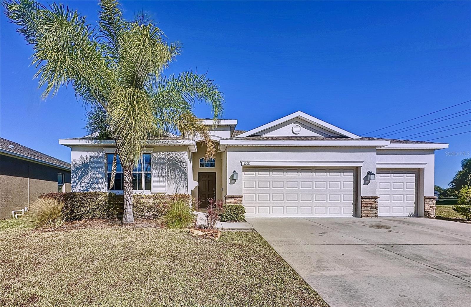 BEST PRICE IN THE AREA, DON'T MISS OUT THIS OPPORTUNITY!!! Welcome to your new residence in a gated community ready for move-in, complete with exceptional amenities such as a championship golf course. Just a short drive from Disney and directly accessible to I-4, this single-level home strikes the perfect balance between peaceful seclusion and convenient access to the best of Central Florida. The fast-growing community of Davenport is ideally located for quick trips into vibrant city scenes. This home is designed for both elegance and comfort, featuring soaring ceilings, ceramic flooring throughout, while plush carpeting in the bedrooms adds a touch of warmth. The master suite is a true retreat, boasting dual walk-in closets and a serene en-suite bath. The home is especially appealing to families and those considering retirement , the one-story layout offers effortless living and mobility. The spacious kitchen, the heart of the home, is perfect for culinary adventures and gatherings, complemented by three full baths to comfortably accommodate both family and guests. Set on one of the largest lots in the neighborhood—a rarity in this sought-after enclave—the property includes an expansive driveway with space for three cars plus a generous three-car garage, ensuring ample storage and parking. Discover a lifestyle of tranquility and convenience in one of Davenport’s premier neighborhoods. This property isn’t just a house; it’s a prime choice for those looking to plant roots or find a peaceful, connected retirement haven. Take this unique opportunity to secure one of the most desirable lots available and embrace the luxury living you deserve.