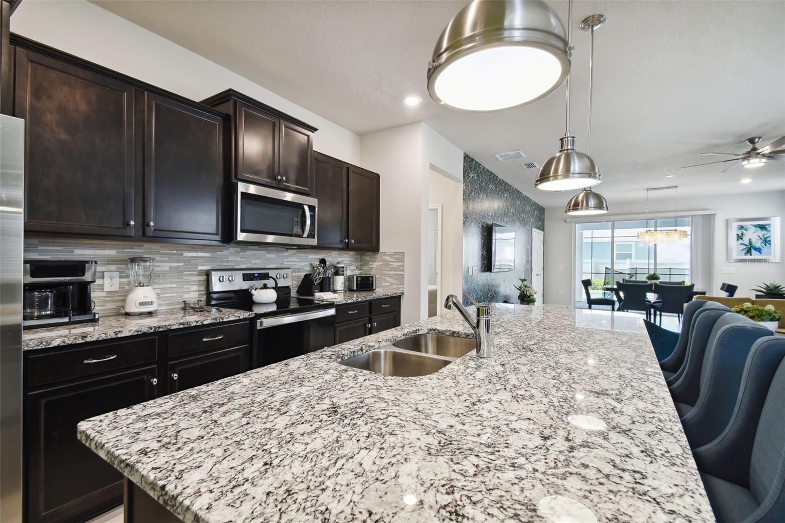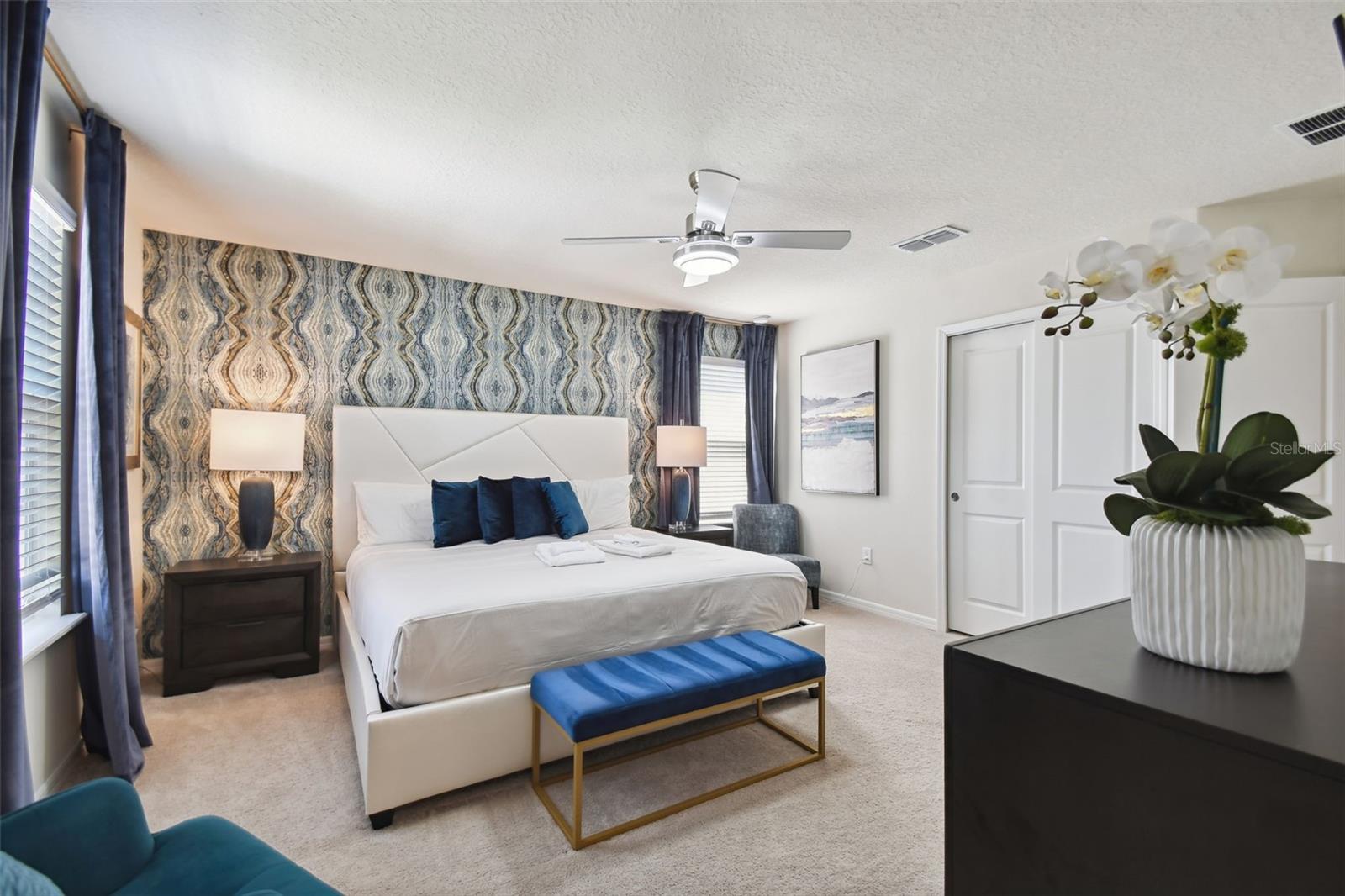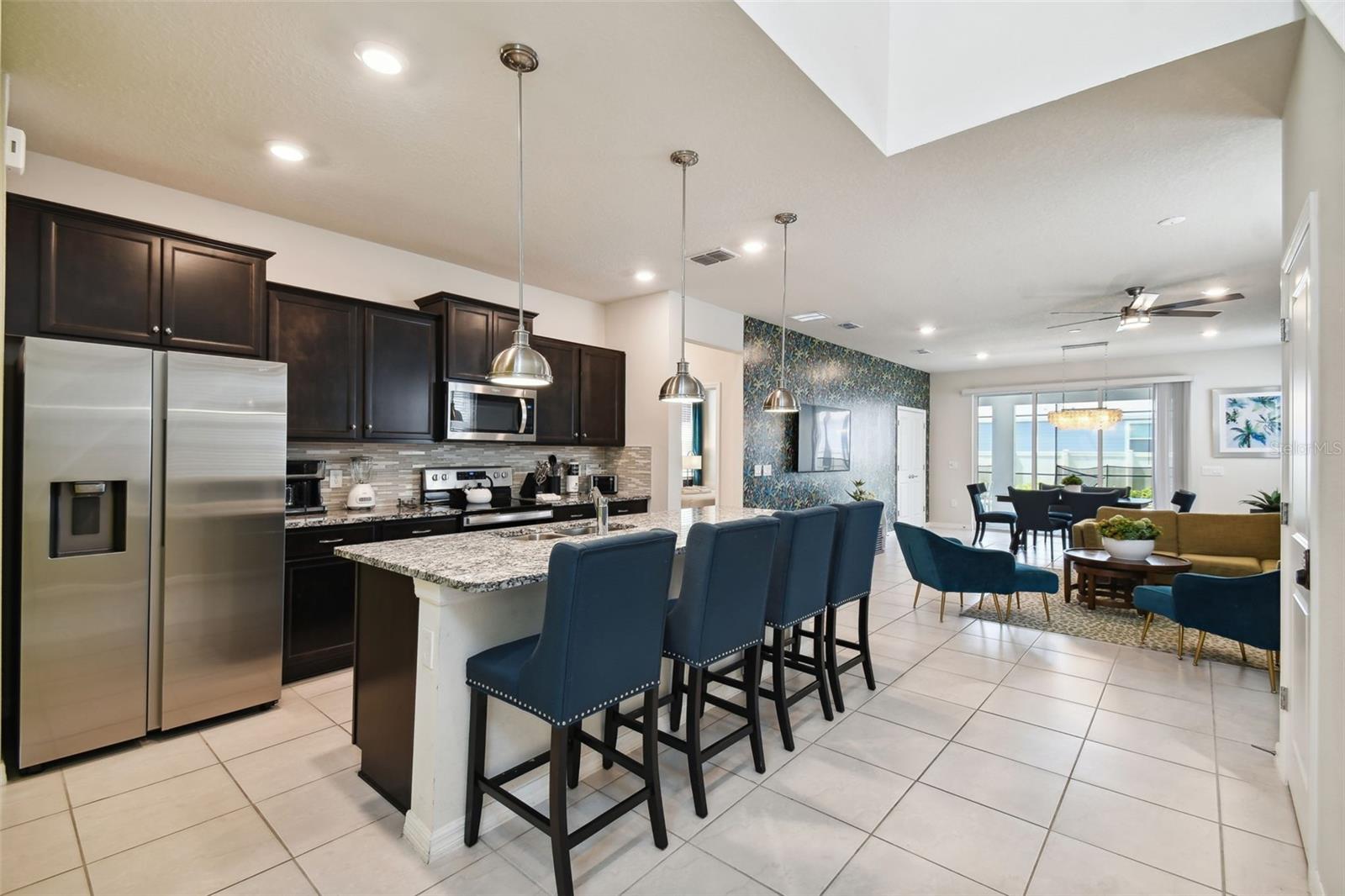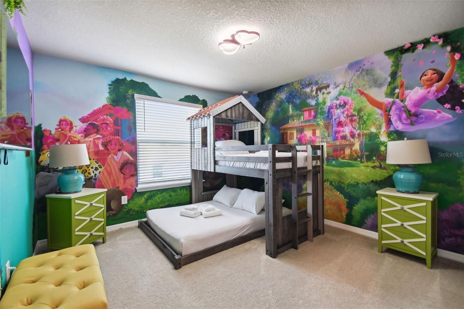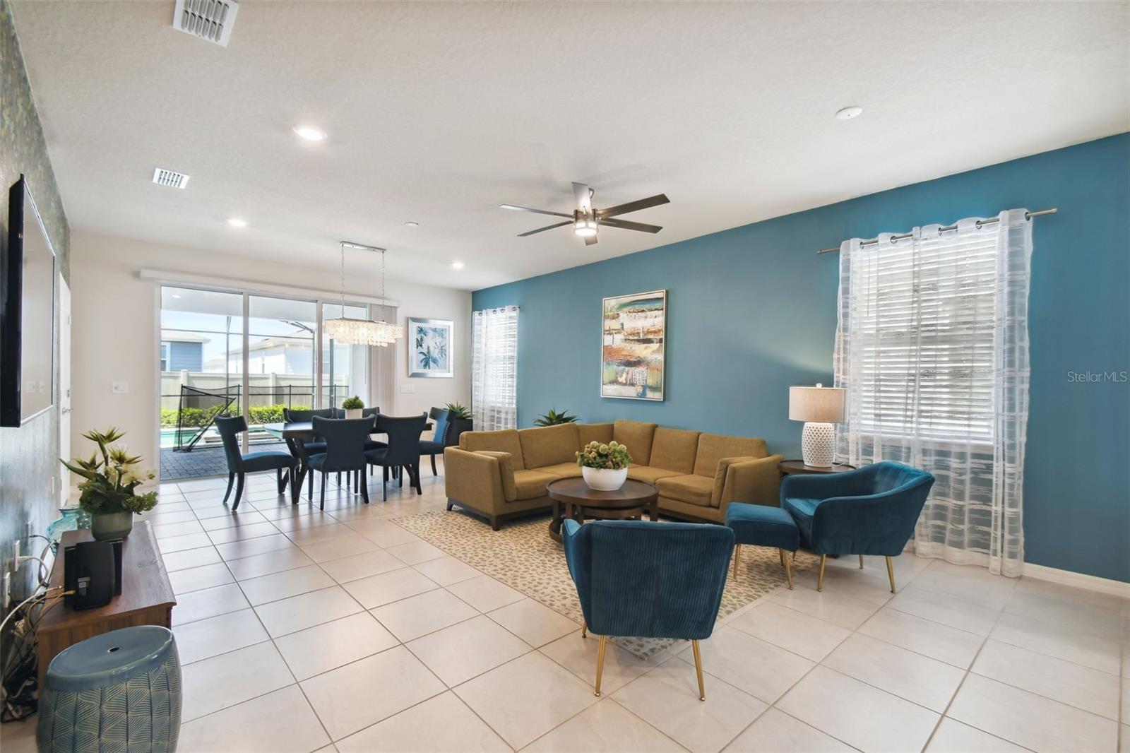 Whether you plan to use as a short term vacation rental or as a second home vacation getaway... this home & community are right for you! This spacious 6 bedroom, 4.5 bath, 2022 built pool home is located in the highly sought after Windsor Island Resort Community. As soon as you walk in the house you'll notice the soaring ceilings and open concept floorplan, complete with a kitchen/dining/great room combo with huge sliding glass doors leading to the outside oasis. Master Bedroom & En Suite- with garden tub, dual sinks, shower, water closet- are located on the first floor. Also on the main level, you'll find the laundry room & half bath. Upstairs you have a massive loft, the remaining bedrooms and a home theater! Amenities include- waterpark style community resort pool with dueling slides- lazy river- hot tub/spa- splash pad-pool side miniature golf course- outdoor bar and dinning- fire pit area- clubhouse- fitness center- arcade/ gaming room- playground- basketball courts- soccer fields & more! Close to Disney & other Theme Parks, Local Attractions, Shopping, Restaurants, Orlando International Airport & Major Highways taking you the Beaches... this location is BEYOND prime!