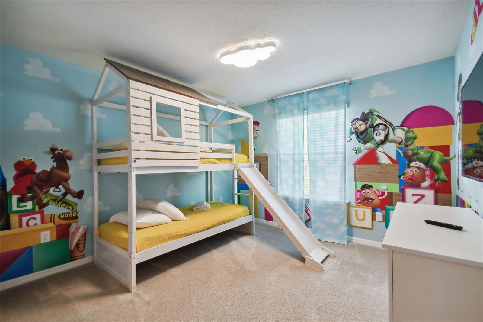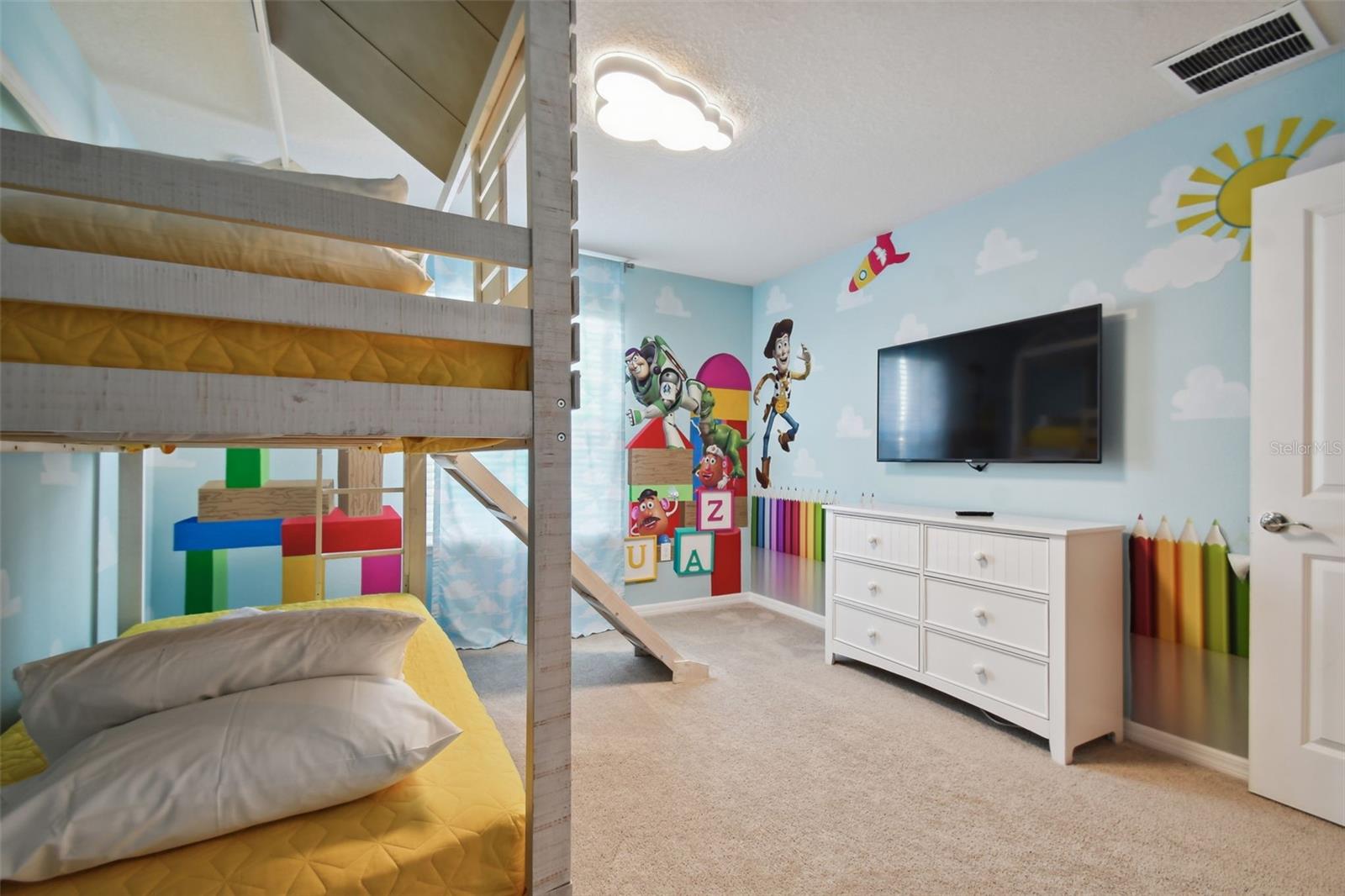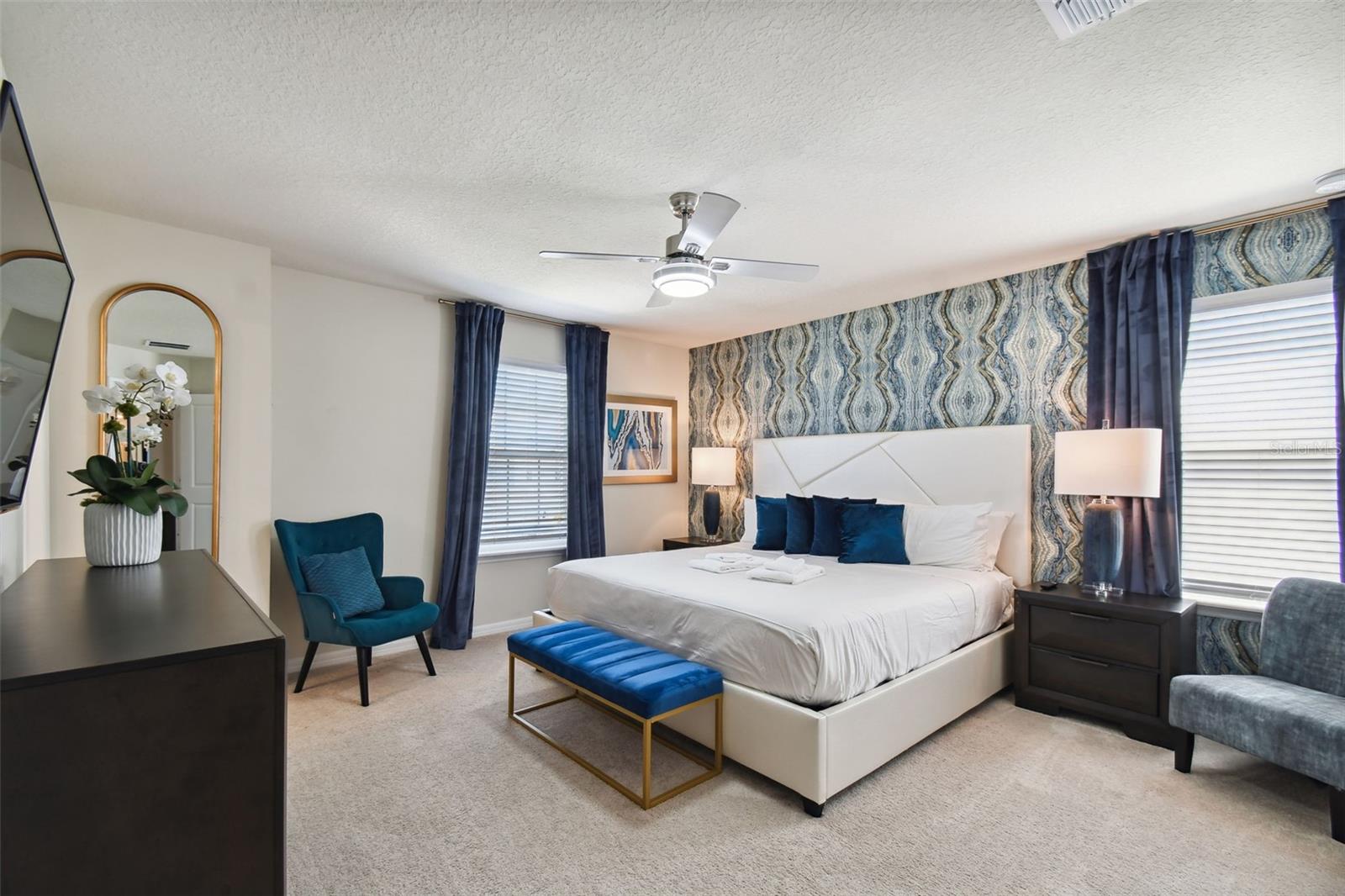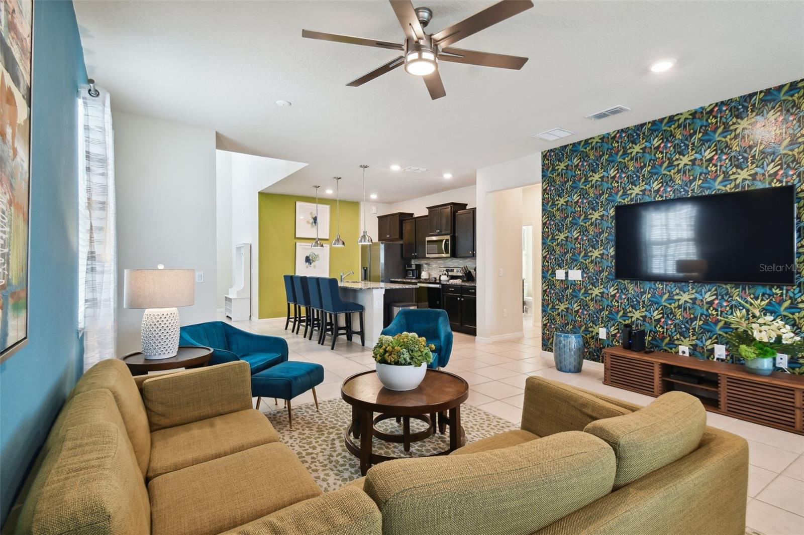 Whether you plan to use as a short term vacation rental or as a second home vacation getaway... this home & community are right for you! This spacious 6 bedroom, 4.5 bath, 2022 built pool home is located in the highly sought after Windsor Island Resort Community. As soon as you walk in the house you'll notice the soaring ceilings and open concept floorplan, complete with a kitchen/dining/great room combo with huge sliding glass doors leading to the outside oasis. Master Bedroom & En Suite- with garden tub, dual sinks, shower, water closet- are located on the first floor. Also on the main level, you'll find the laundry room & half bath. Upstairs you have a massive loft, the remaining bedrooms and a home theater! Amenities include- waterpark style community resort pool with dueling slides- lazy river- hot tub/spa- splash pad-pool side miniature golf course- outdoor bar and dinning- fire pit area- clubhouse- fitness center- arcade/ gaming room- playground- basketball courts- soccer fields & more! Close to Disney & other Theme Parks, Local Attractions, Shopping, Restaurants, Orlando International Airport & Major Highways taking you the Beaches... this location is BEYOND prime!