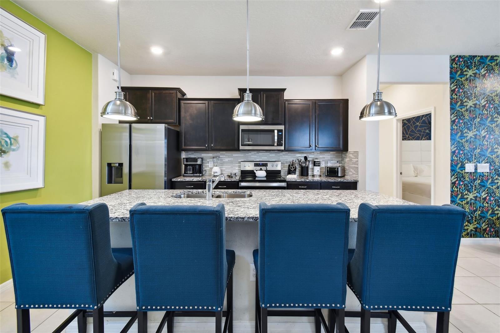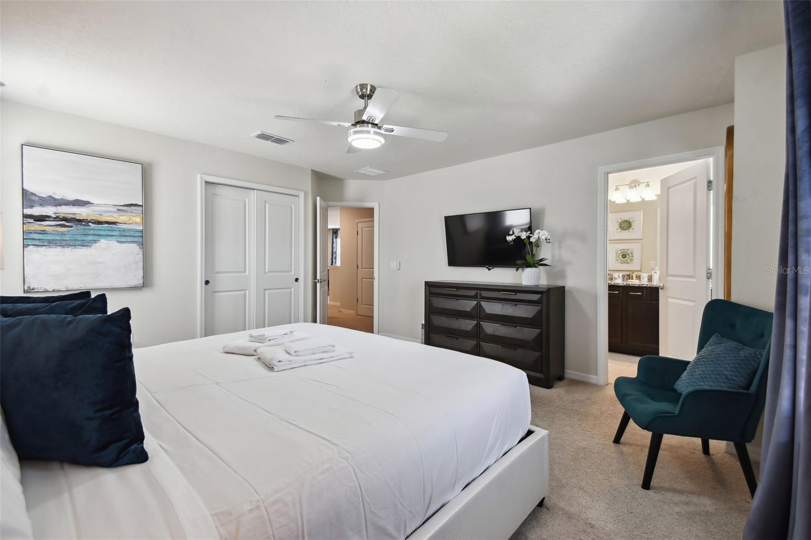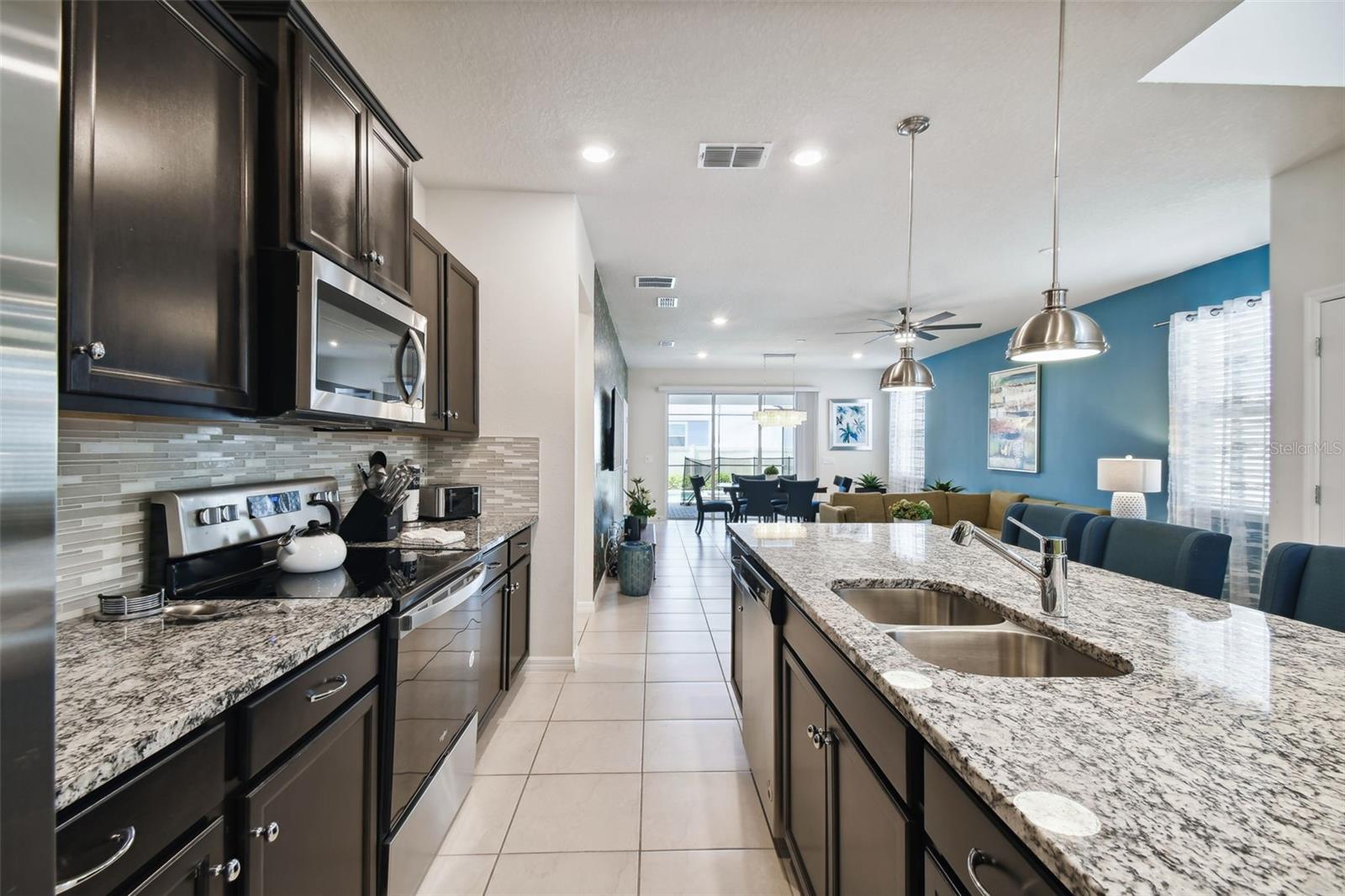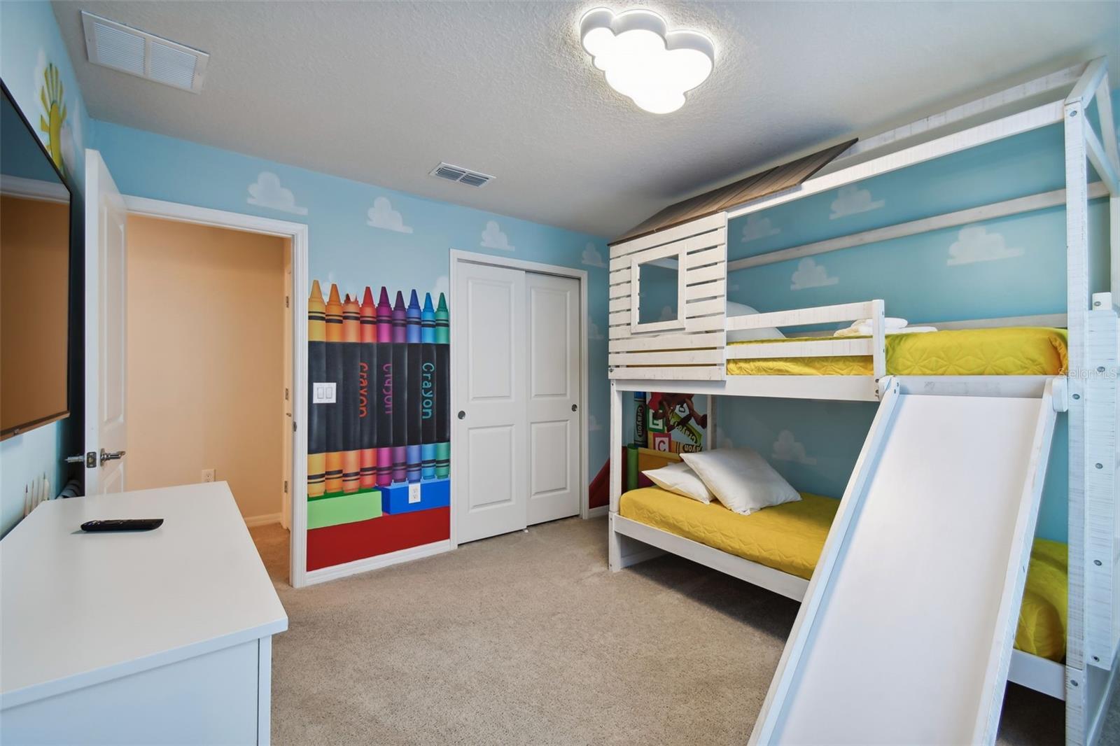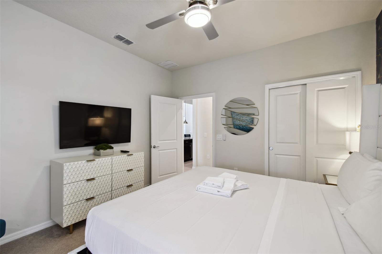 Whether you plan to use as a short term vacation rental or as a second home vacation getaway... this home & community are right for you! This spacious 6 bedroom, 4.5 bath, 2022 built pool home is located in the highly sought after Windsor Island Resort Community. As soon as you walk in the house you'll notice the soaring ceilings and open concept floorplan, complete with a kitchen/dining/great room combo with huge sliding glass doors leading to the outside oasis. Master Bedroom & En Suite- with garden tub, dual sinks, shower, water closet- are located on the first floor. Also on the main level, you'll find the laundry room & half bath. Upstairs you have a massive loft, the remaining bedrooms and a home theater! Amenities include- waterpark style community resort pool with dueling slides- lazy river- hot tub/spa- splash pad-pool side miniature golf course- outdoor bar and dinning- fire pit area- clubhouse- fitness center- arcade/ gaming room- playground- basketball courts- soccer fields & more! Close to Disney & other Theme Parks, Local Attractions, Shopping, Restaurants, Orlando International Airport & Major Highways taking you the Beaches... this location is BEYOND prime!