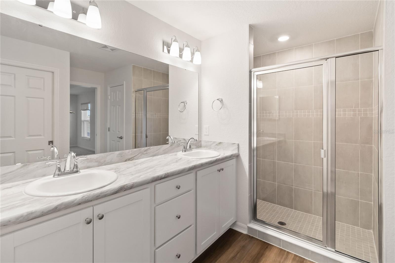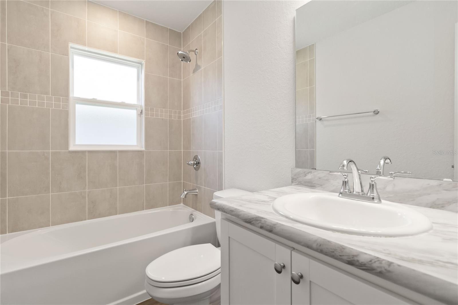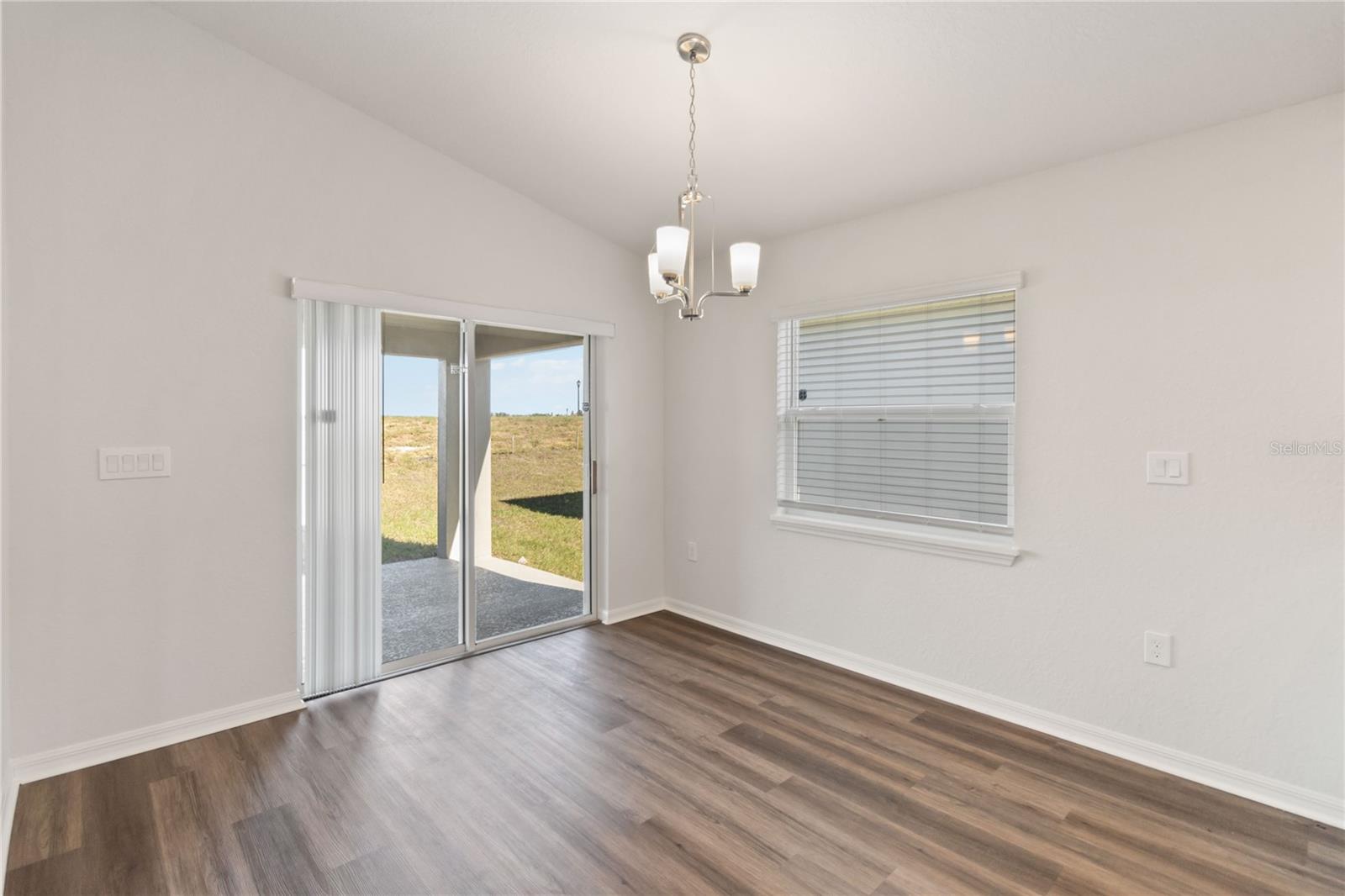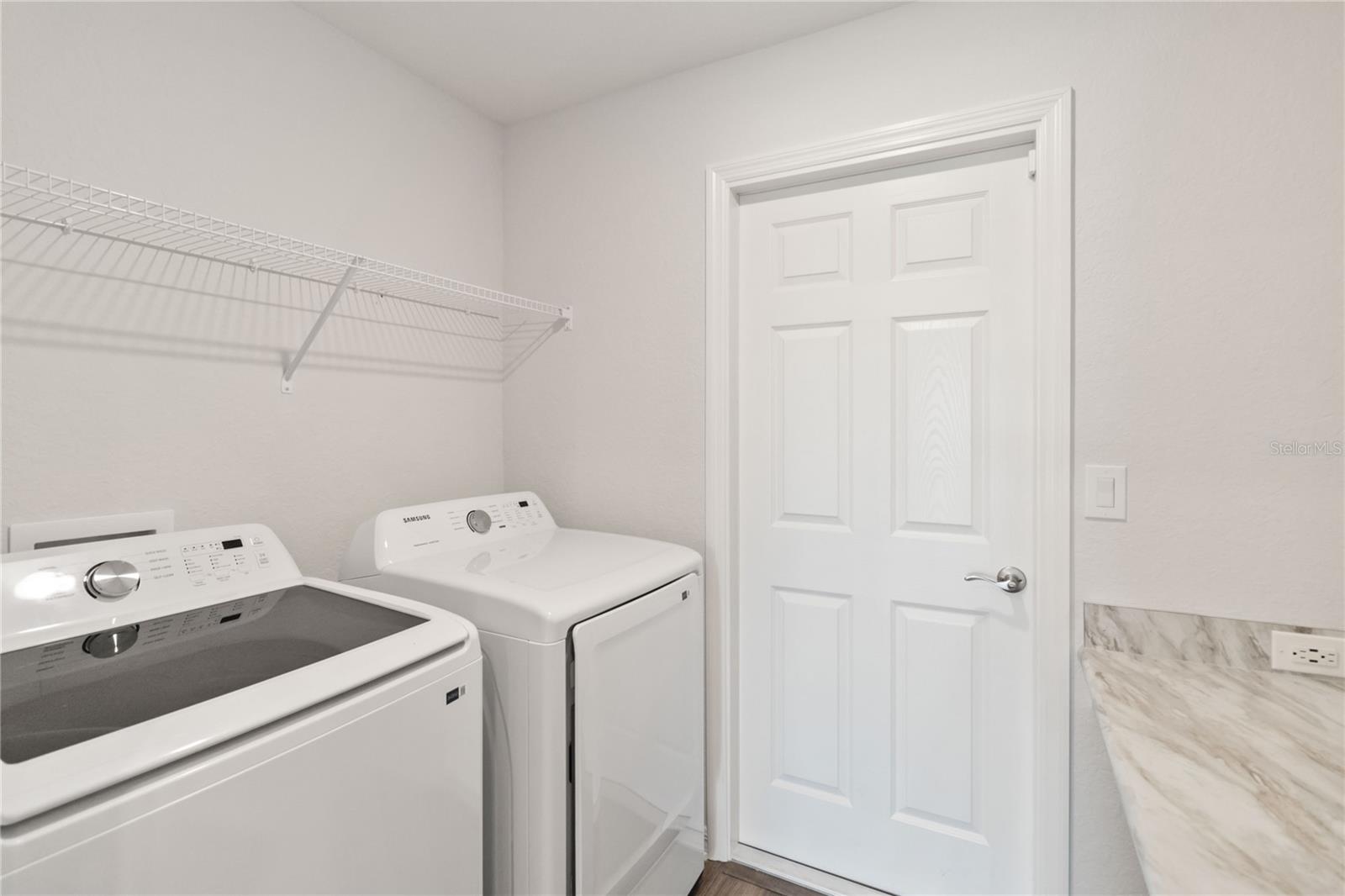 Introducing a beautiful new construction home offering 1,819 square feet of thoughtfully designed living space all on one level. This home features 4 spacious bedrooms, 2 bathrooms, and an open-concept living area, perfect for modern living. The chef-inspired kitchen boasts stunning Cambria countertops, Samsung stainless steel appliances, a walk-in pantry, and a large island, all seamlessly connected to the dining café and gathering room. Throughout the home, you'll find luxury wood vinyl plank flooring in the living areas, laundry room, and bathrooms, with stain-resistant carpet in the bedrooms for added comfort. The owner's suite is a true retreat, complete with a walk-in wardrobe and a private en-suite bath featuring dual vanities, a tiled shower, and a closeted toilet for added privacy. Enjoy outdoor living with a covered lanai, a 2-car garage, custom-fit window blinds, and durable architectural shingles. Energy-efficient insulation and windows ensure comfort year-round, while a full builder warranty provides peace of mind.