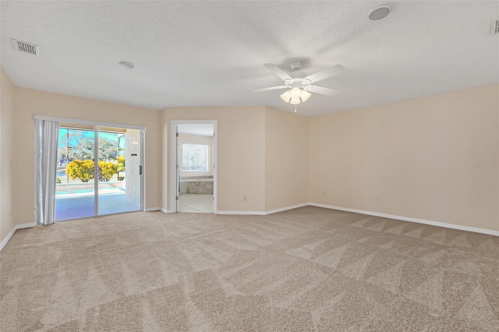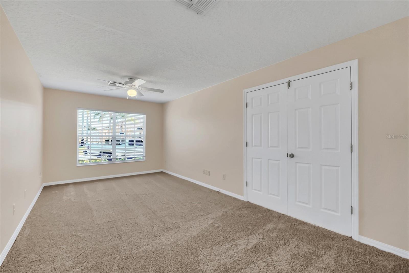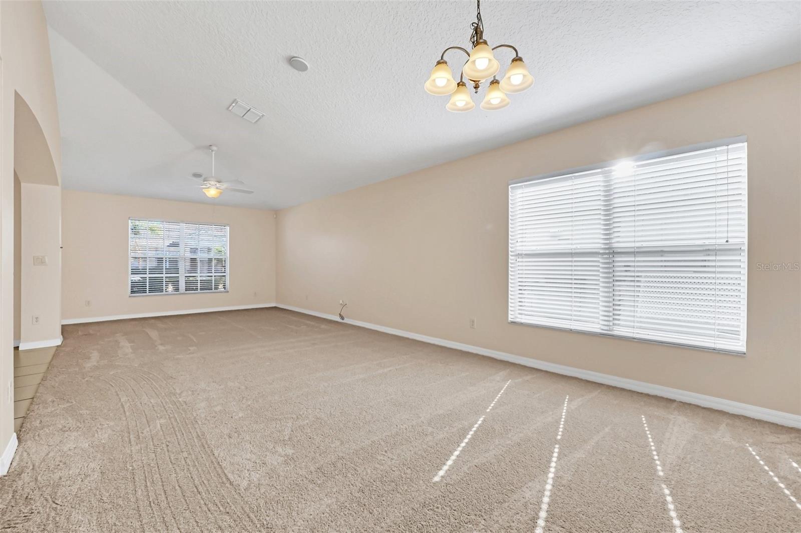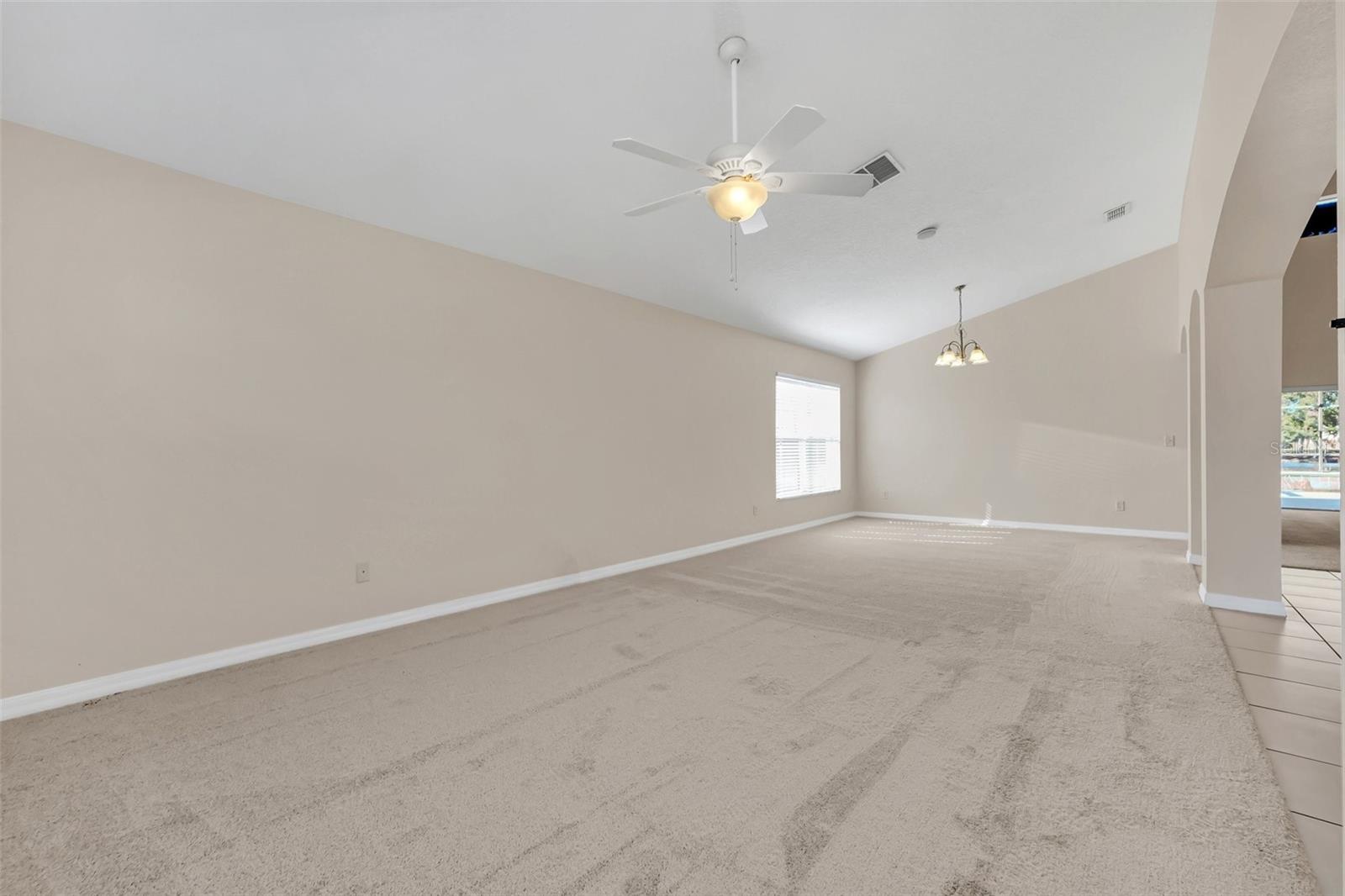This large house is one of only a handful of 5 bedroom 3 1/2 bathroom homes located in the gated Forest of Ridgewood Lake of Dell Webb. Two story with an oversized Master Bedroom/Bath with pool access on first floor, large family room overlooking the protected lanai and golf course tee and lake. Large living room, dining room area, family room, eat in kitchen, home or den and 2 car garage. New paint inside and out, new carpeting up and down, two year old roof, and a separate laundry room with washer and dryer. Great house for large family, lots of guests or in laws and just 20 miles from Disney and minutes Posner Shopping just off highway 27. What a find, motivated seller, move in ready, needs nothing but you. Best view on the street All ages welcome!