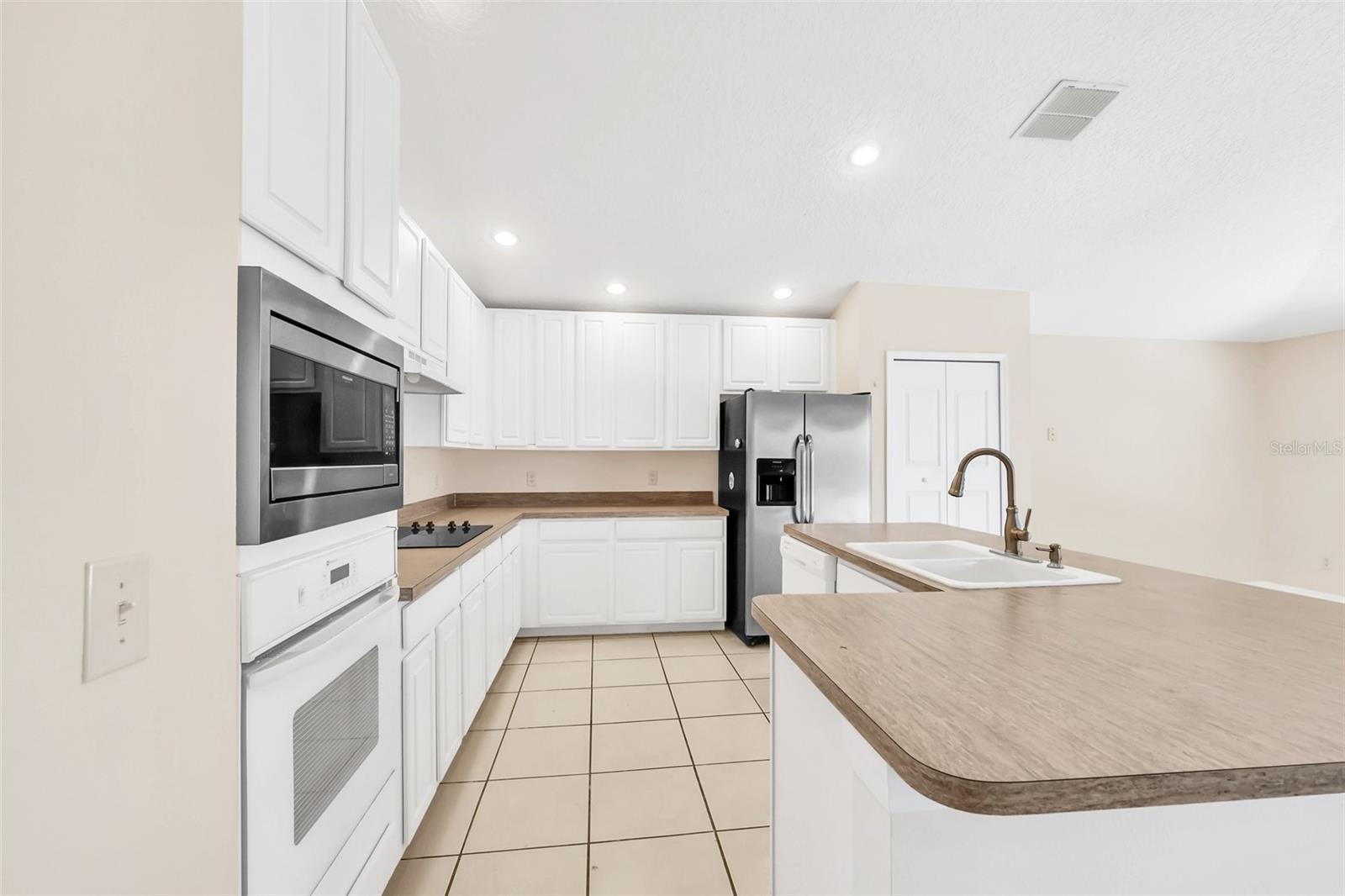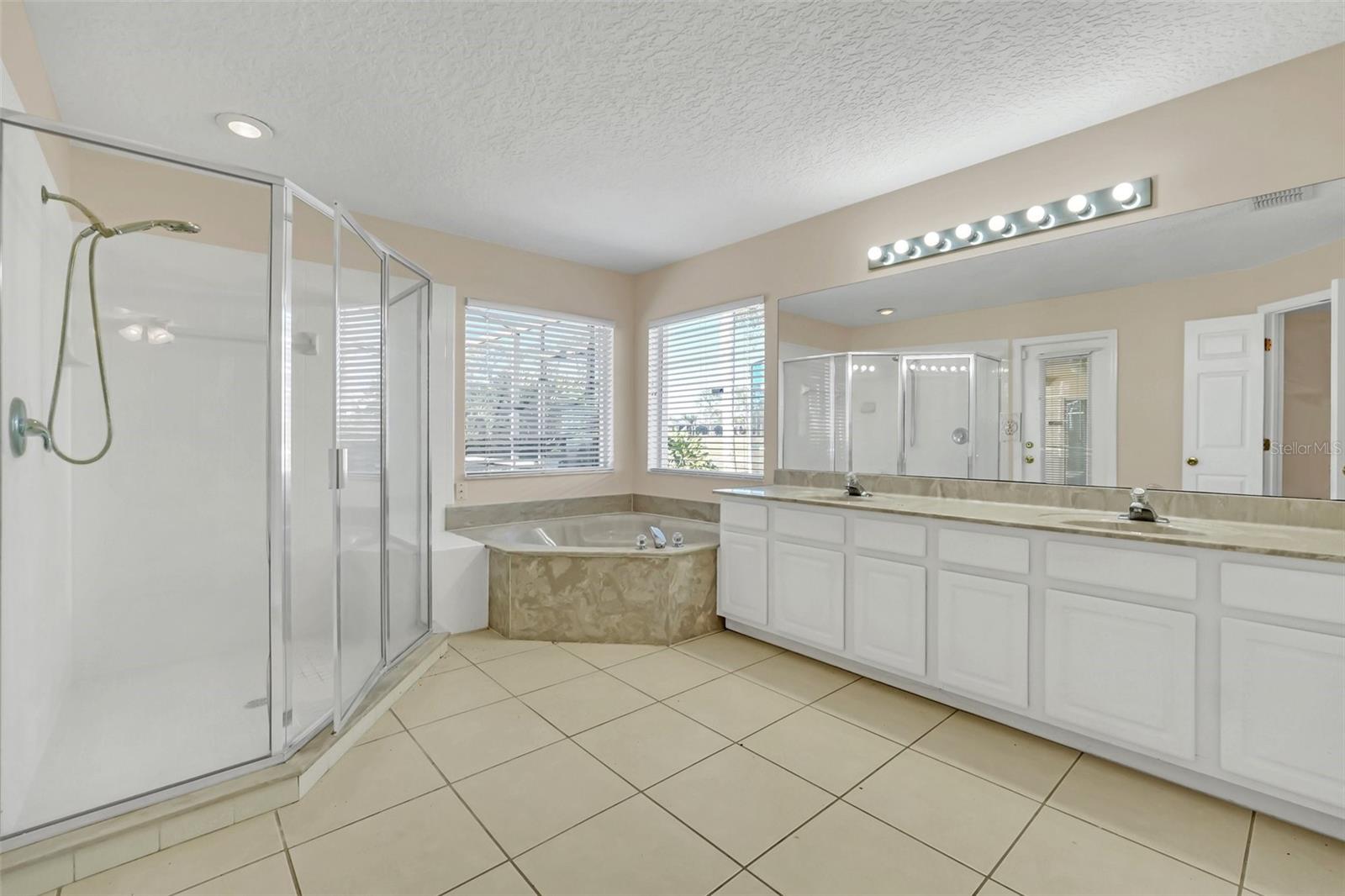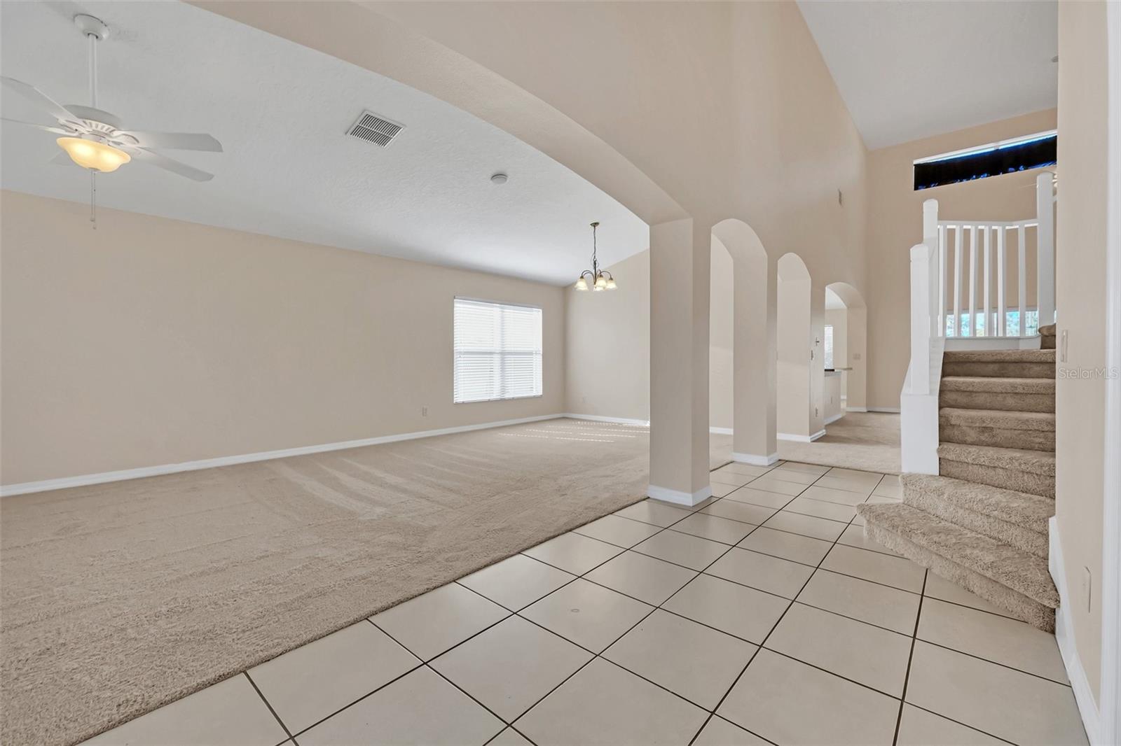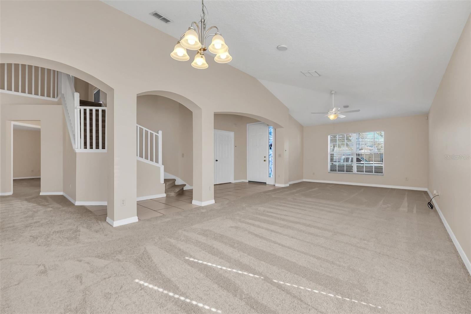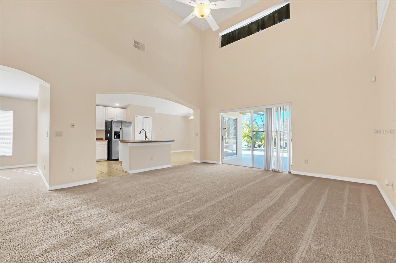 This large house is one of only a handful of 5 bedroom 3 1/2 bathroom homes located in the gated Forest of Ridgewood Lake of Dell Webb. Two story with an oversized Master Bedroom/Bath with pool access on first floor, large family room overlooking the protected lanai and golf course tee and lake. Large living room, dining room area, family room, eat in kitchen, home or den and 2 car garage. New paint inside and out, new carpeting up and down, two year old roof, and a separate laundry room with washer and dryer. Great house for large family, lots of guests or in laws and just 20 miles from Disney and minutes Posner Shopping just off highway 27. What a find, motivated seller, move in ready, needs nothing but you. Best view on the street All ages welcome!
