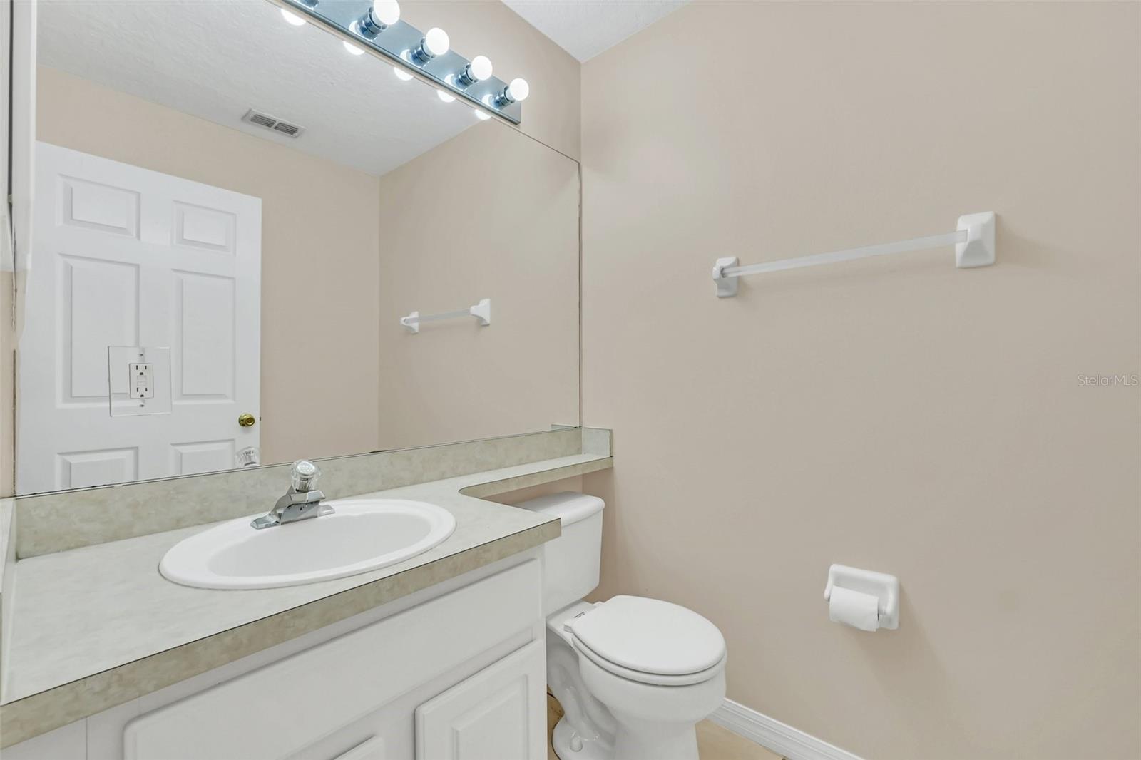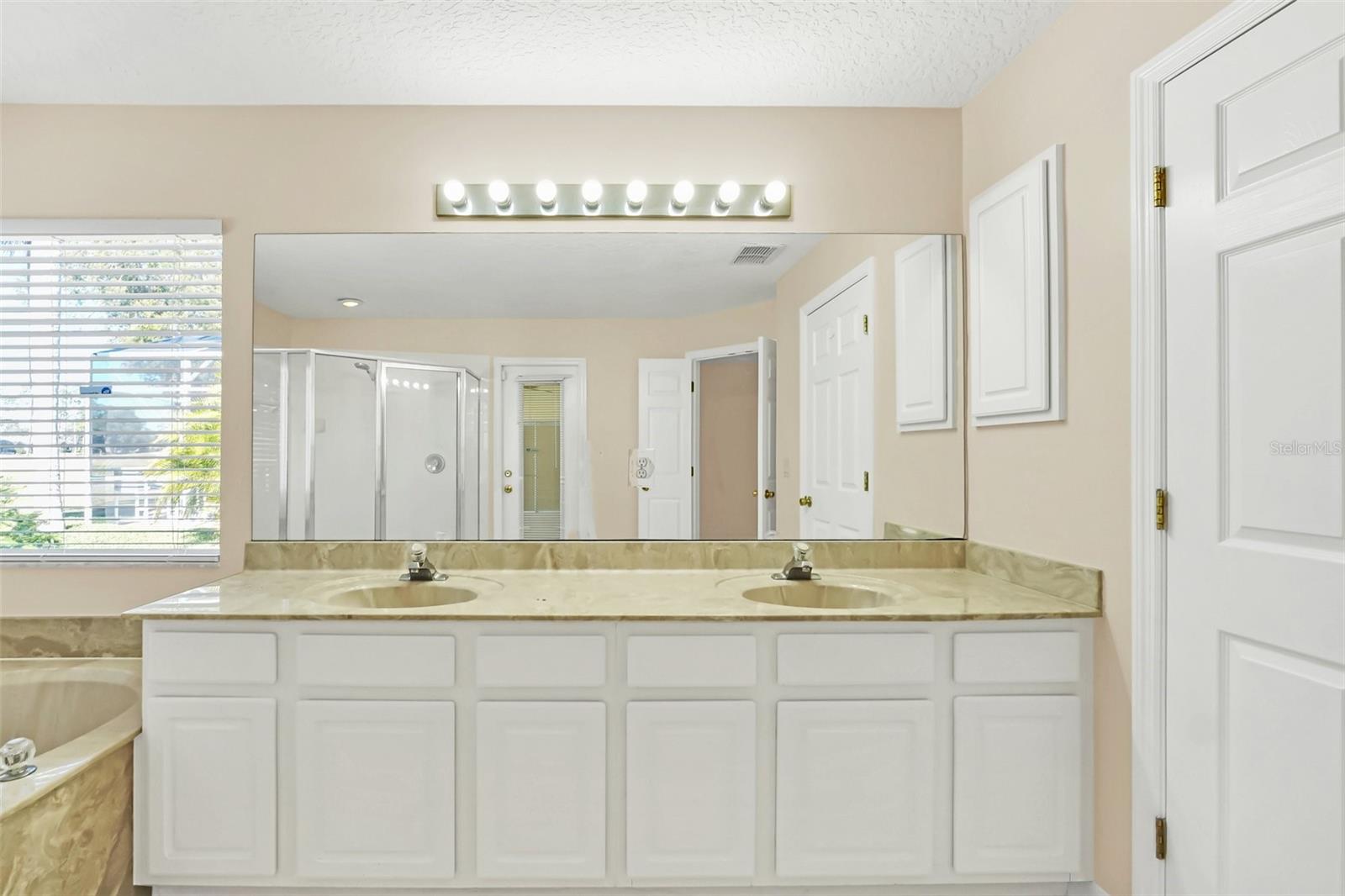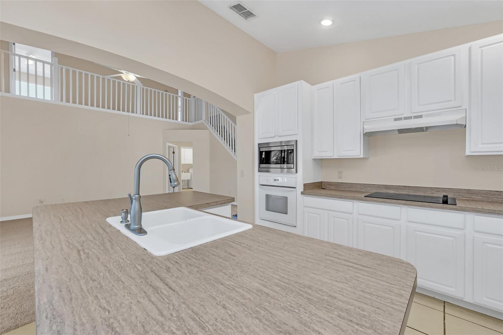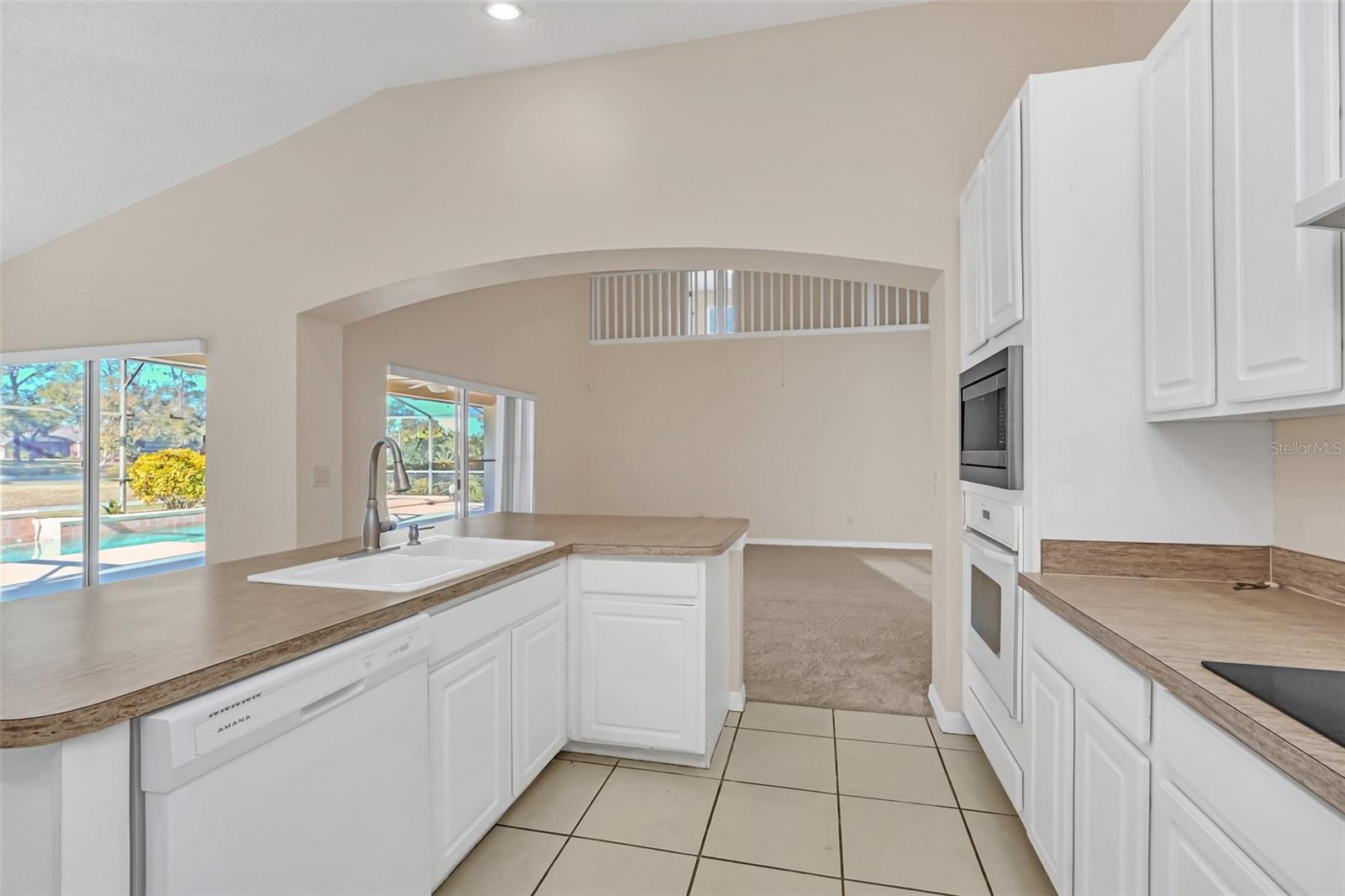 This large house is one of only a handful of 5 bedroom 3 1/2 bathroom homes located in the gated Forest of Ridgewood Lake of Dell Webb. Two story with an oversized Master Bedroom/Bath with pool access on first floor, large family room overlooking the protected lanai and golf course tee and lake. Large living room, dining room area, family room, eat in kitchen, home or den and 2 car garage. New paint inside and out, new carpeting up and down, two year old roof, and a separate laundry room with washer and dryer. Great house for large family, lots of guests or in laws and just 20 miles from Disney and minutes Posner Shopping just off highway 27. What a find, motivated seller, move in ready, needs nothing but you. Best view on the street All ages welcome!