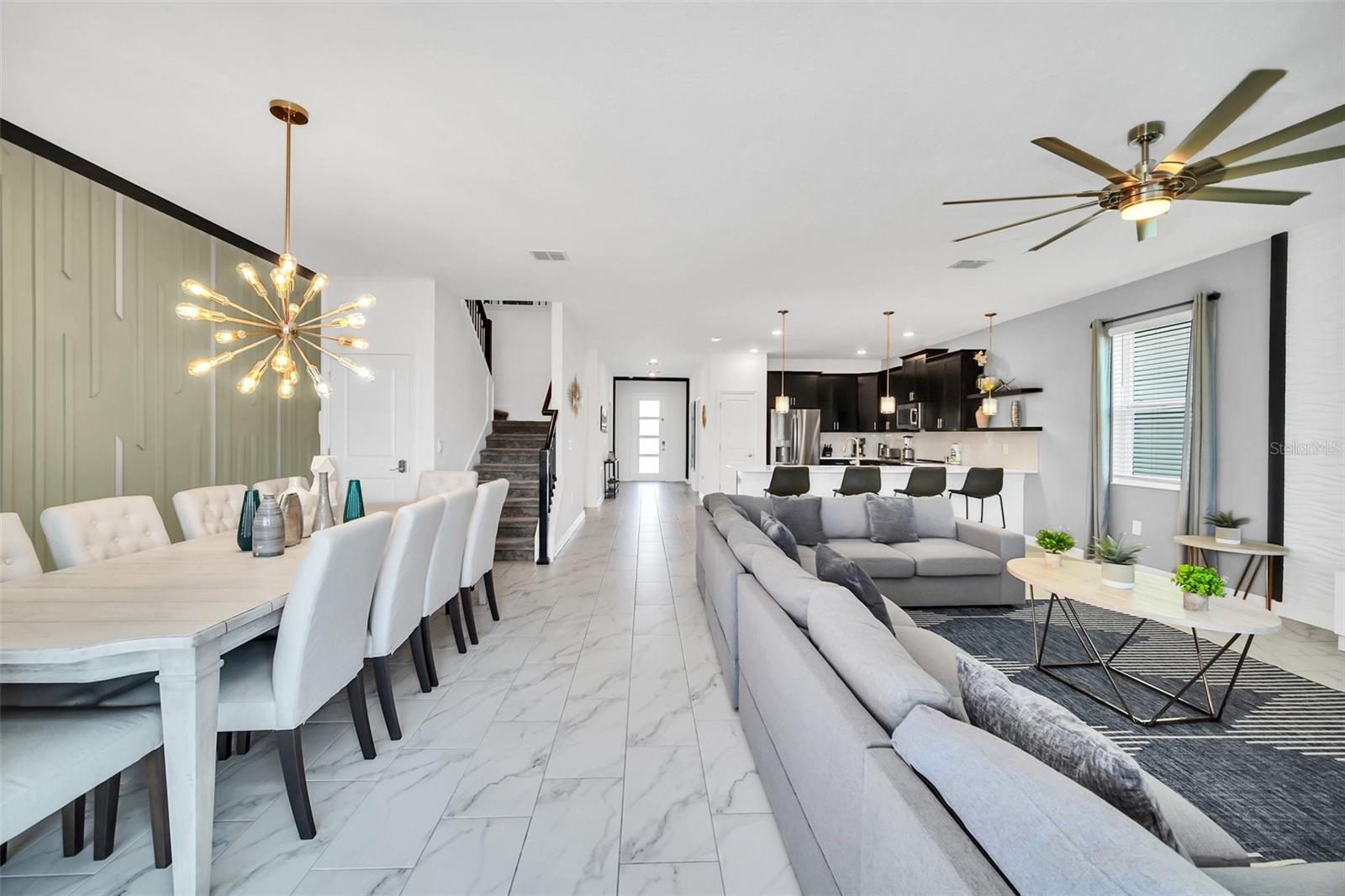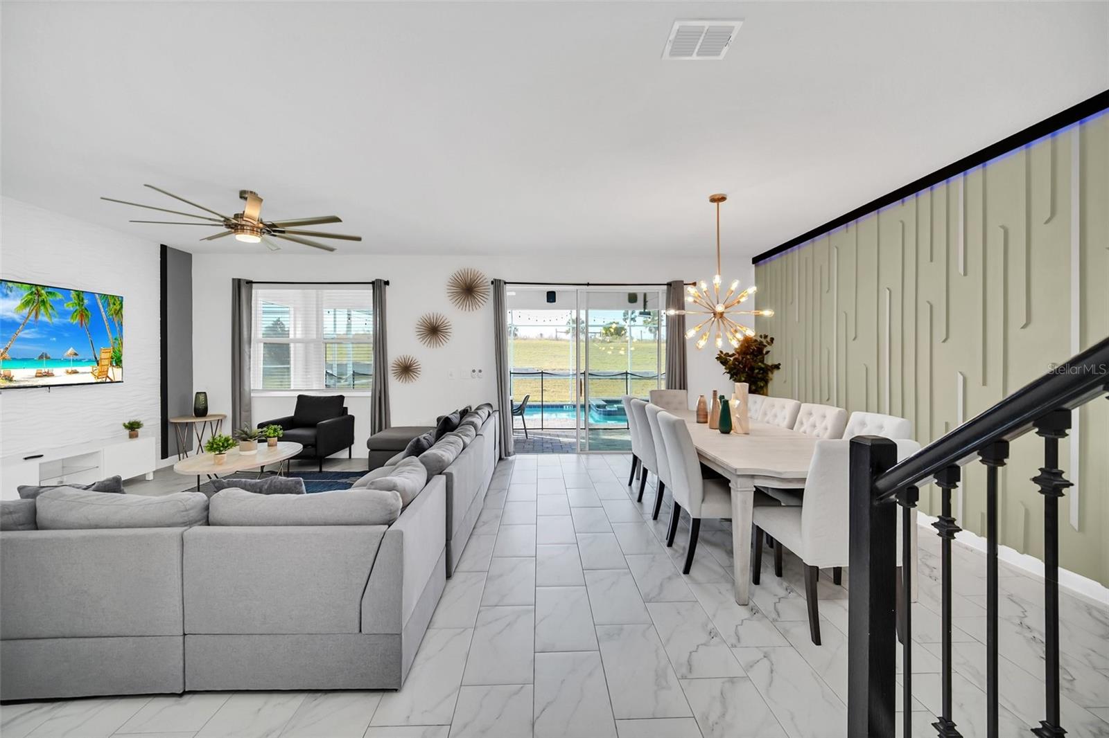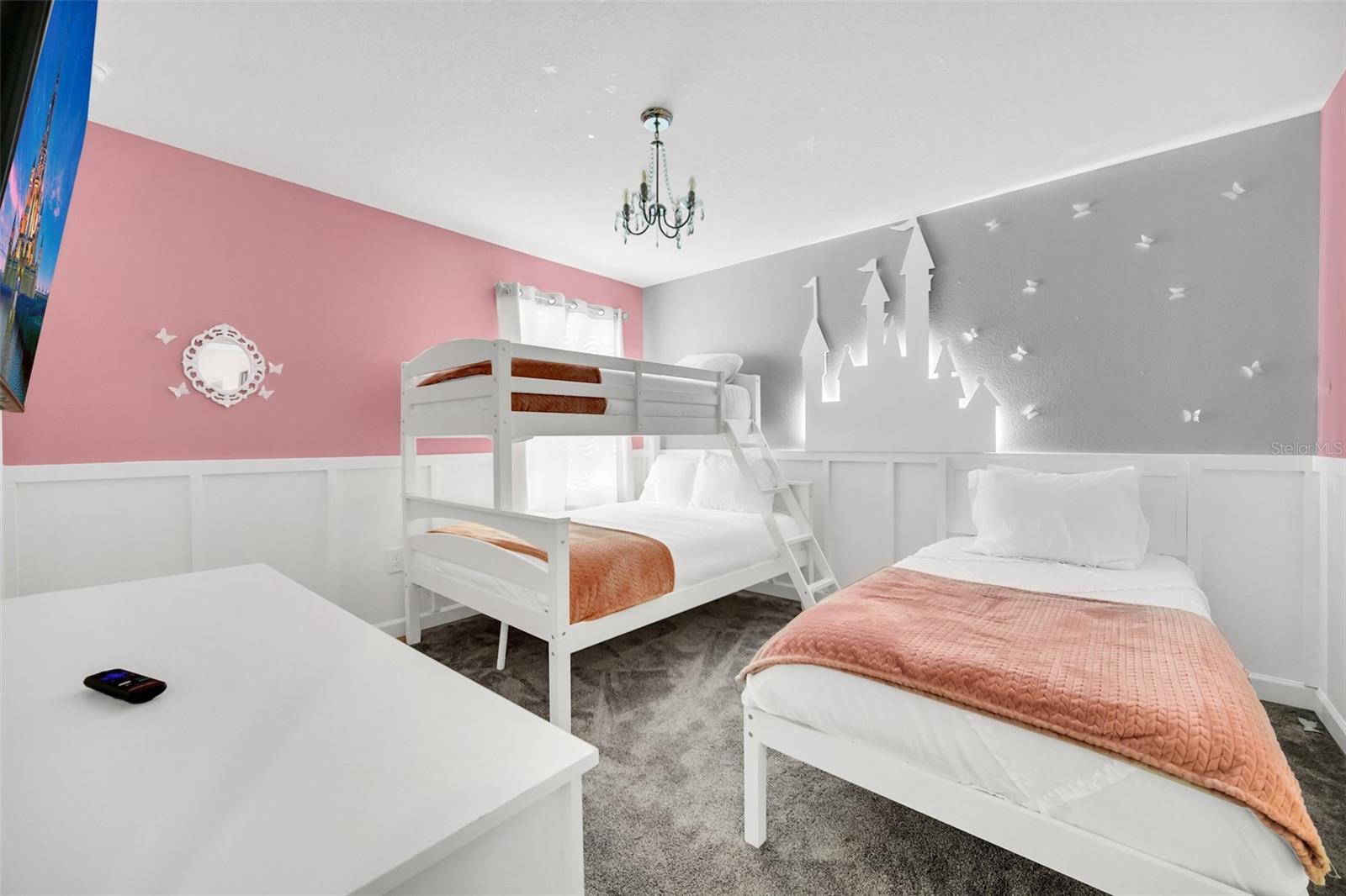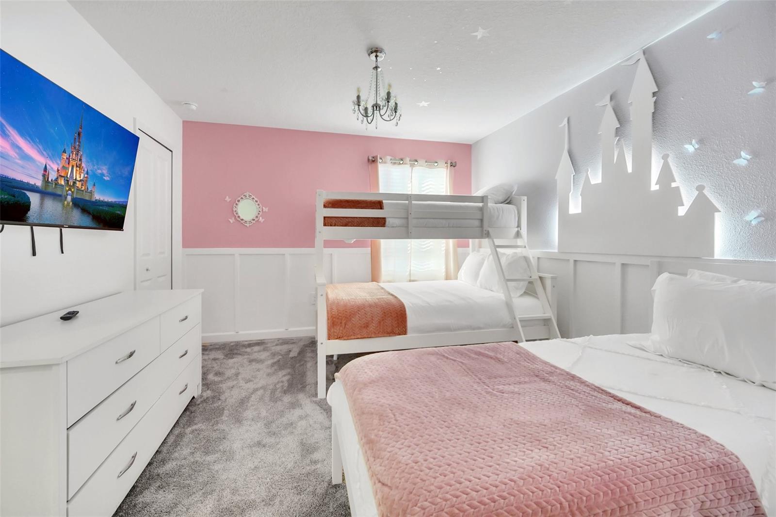 Stunning home with over $100,000 of furnishings. Welcome to your dream vacation home! This extraordinary opportunity presents itself in the form of a luxurious 9-bedroom property, fully furnished and ready for you to move in. Situated in the highly sought-after gated resort community of Champions Gate, this turnkey home offers not only a perfect getaway for you but also a fantastic investment opportunity to generate income. As you step through the front door, leave your worries behind and immerse yourself in the ultimate vacation experience. Unwind in the heated pool and spa, enjoying privacy without any neighbors at the rear. Take pleasure in savoring your favorite drink while preparing delicious meals for your loved ones on the BBQ or in the stunning kitchen, complete with quartz countertops, 42" cabinets and stainless steel appliances. The open concept design allows for effortless entertaining while you cook, catch up on your favorite TV shows, or simply relax after a long day. Whether you're gathering around the breakfast bar or the spacious dining table, there's plenty of seating for all your guests. For additional entertainment, indulge in the media room, where you can engage in lively games of foosball, ping pong, or basketball. Alternatively, unwind in the loft area on the second floor, watching your favorite movies. After an eventful day, retire to one of the nine beautifully appointed bedrooms. Conveniently located on the first floor, both the primary suite and an additional guest suite offer easy access (with one providing direct access to the private pool). The little ones will be enchanted by the themed rooms available, with options like Mickey Mouse, Avengers, or a Princess room to choose from. The Champions Gate community boasts an array of outstanding amenities, including The Oasis Club—a magnificent 16,000 sq ft Clubhouse featuring a full-service restaurant and bar, a movie theater, an arcade/game room, a business center, a yoga room, and Camp Oasis for the younger ones. Stay active at the full fitness center, take a dip in one of the two community pools or the thrilling water park, float along the lazy river, or relax at the tiki bar. Outdoor enthusiasts can enjoy the sand volleyball courts, basketball courts, dog park, and air-conditioned cabanas. Tennis enthusiasts can take advantage of the tennis courts, and golfers can tee off at the 18-hole championship golf courses. An additional clubhouse, pool, and water park offer even more opportunities for recreation. Security and peace of mind are paramount at Champions Gate, with 24-hour surveillance and included security provided by the gated community. HOA fees cover essential services such as basic cable TV, internet, yard maintenance, and trash pickup. Don't miss out on this extraordinary opportunity to own your ideal vacation home. Simply unpack, relax, and enjoy the unparalleled luxury and convenience of Champions Gate.