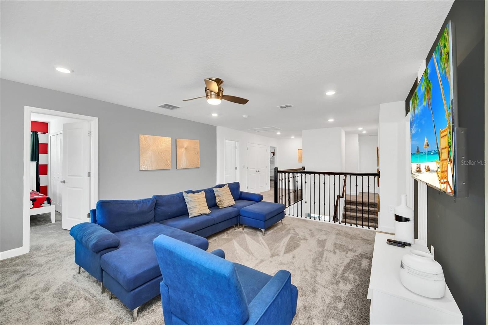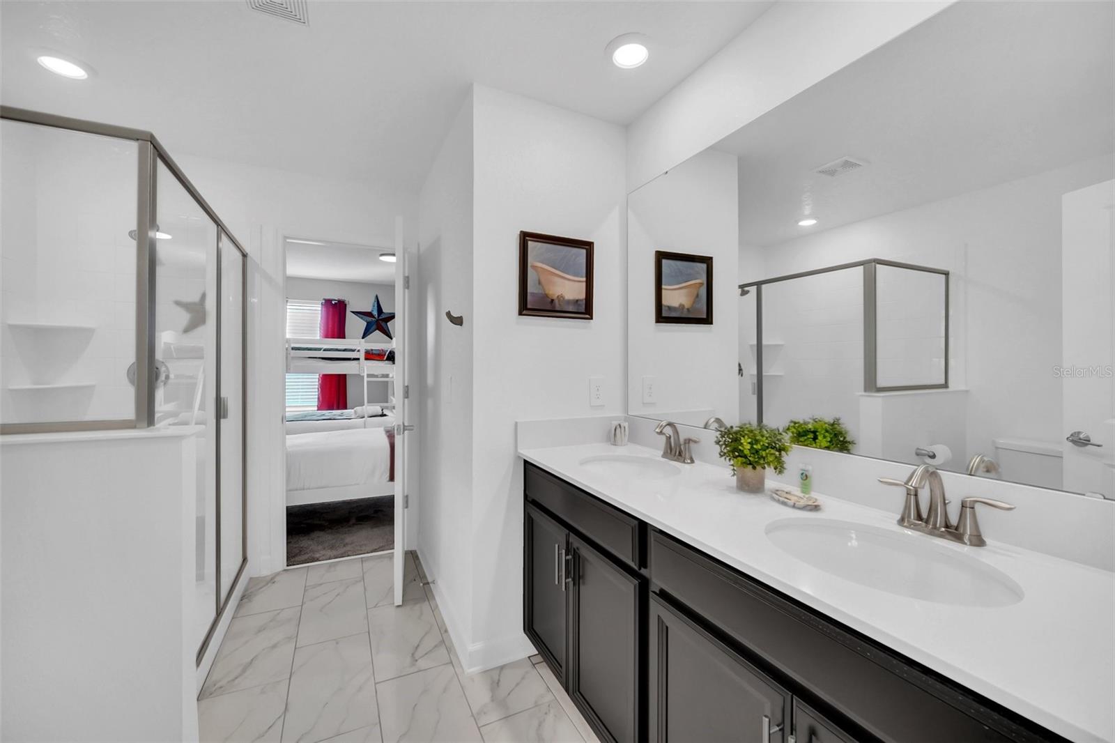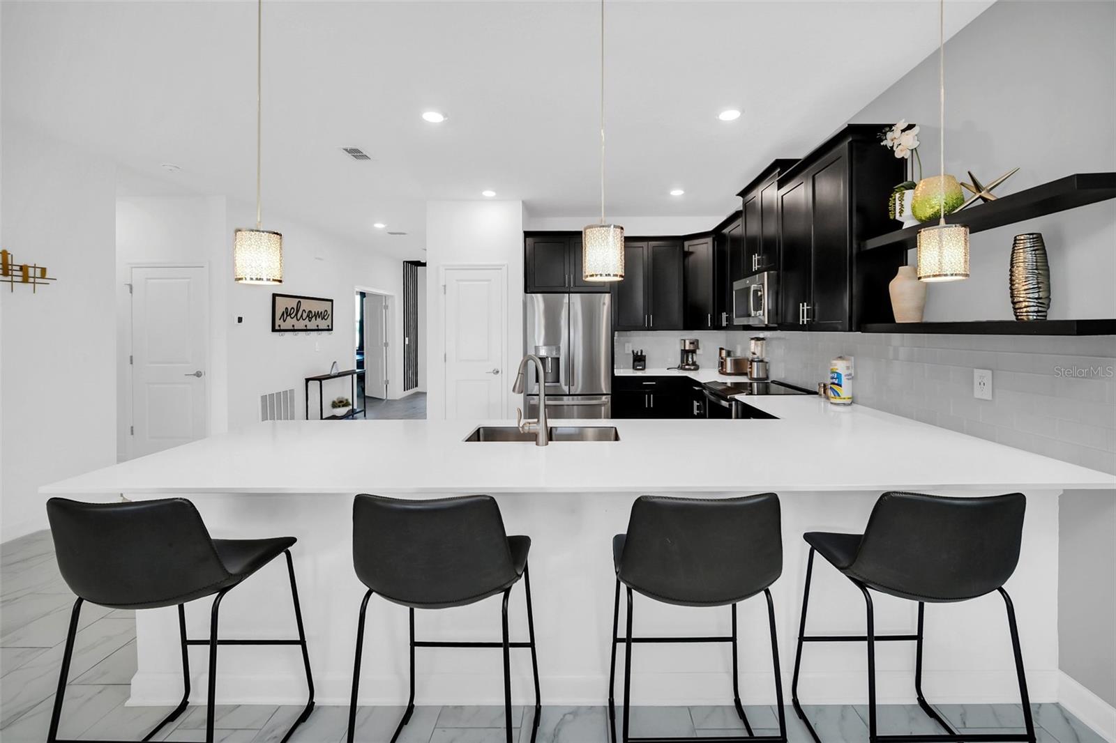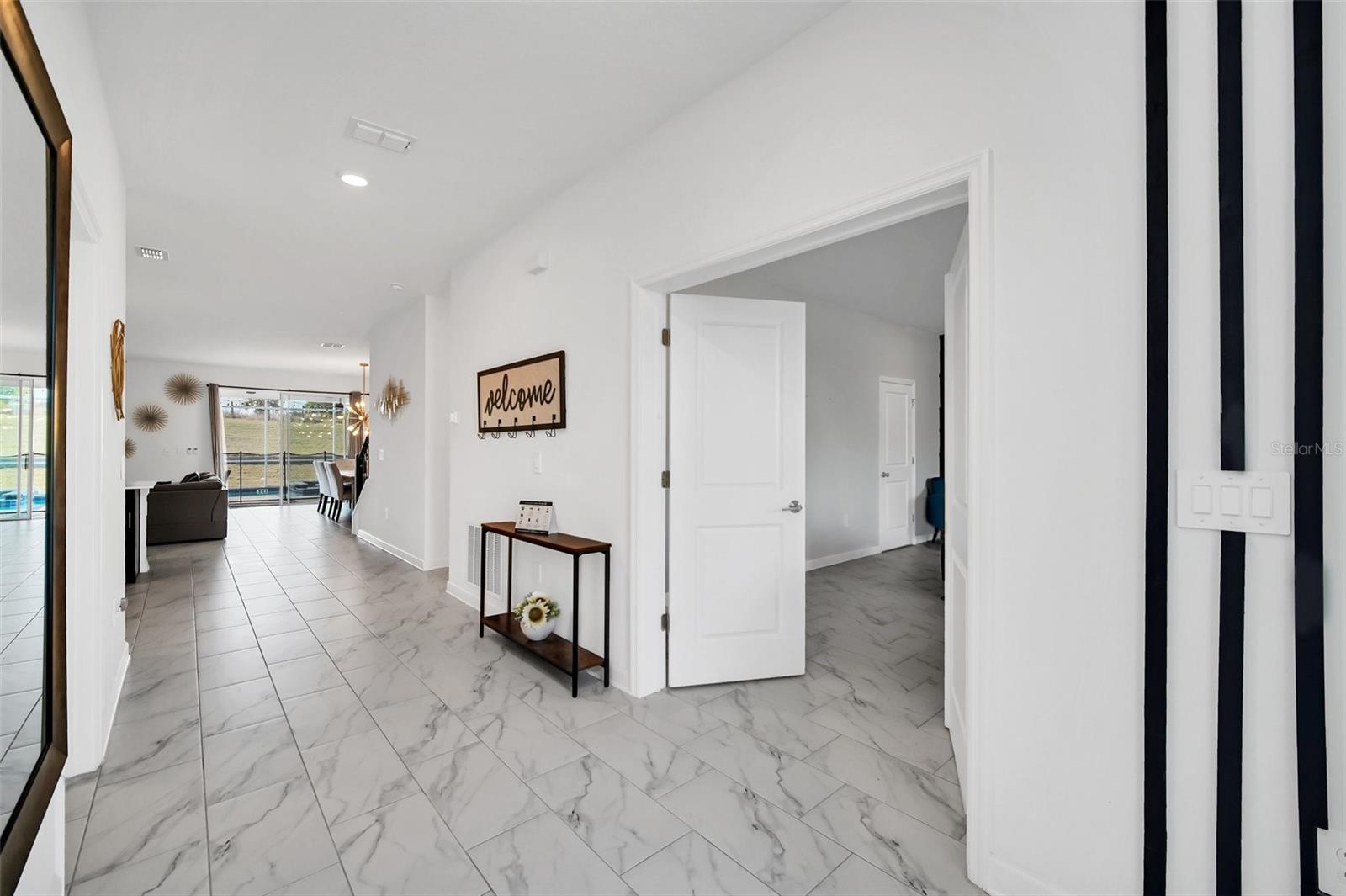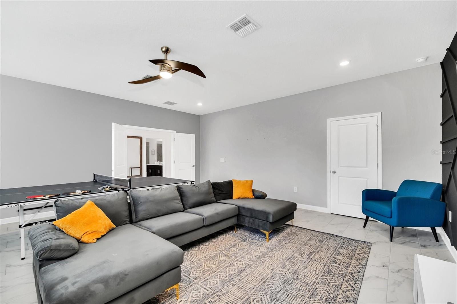 Stunning home with over $100,000 of furnishings. Welcome to your dream vacation home! This extraordinary opportunity presents itself in the form of a luxurious 9-bedroom property, fully furnished and ready for you to move in. Situated in the highly sought-after gated resort community of Champions Gate, this turnkey home offers not only a perfect getaway for you but also a fantastic investment opportunity to generate income. As you step through the front door, leave your worries behind and immerse yourself in the ultimate vacation experience. Unwind in the heated pool and spa, enjoying privacy without any neighbors at the rear. Take pleasure in savoring your favorite drink while preparing delicious meals for your loved ones on the BBQ or in the stunning kitchen, complete with quartz countertops, 42" cabinets and stainless steel appliances. The open concept design allows for effortless entertaining while you cook, catch up on your favorite TV shows, or simply relax after a long day. Whether you're gathering around the breakfast bar or the spacious dining table, there's plenty of seating for all your guests. For additional entertainment, indulge in the media room, where you can engage in lively games of foosball, ping pong, or basketball. Alternatively, unwind in the loft area on the second floor, watching your favorite movies. After an eventful day, retire to one of the nine beautifully appointed bedrooms. Conveniently located on the first floor, both the primary suite and an additional guest suite offer easy access (with one providing direct access to the private pool). The little ones will be enchanted by the themed rooms available, with options like Mickey Mouse, Avengers, or a Princess room to choose from. The Champions Gate community boasts an array of outstanding amenities, including The Oasis Club—a magnificent 16,000 sq ft Clubhouse featuring a full-service restaurant and bar, a movie theater, an arcade/game room, a business center, a yoga room, and Camp Oasis for the younger ones. Stay active at the full fitness center, take a dip in one of the two community pools or the thrilling water park, float along the lazy river, or relax at the tiki bar. Outdoor enthusiasts can enjoy the sand volleyball courts, basketball courts, dog park, and air-conditioned cabanas. Tennis enthusiasts can take advantage of the tennis courts, and golfers can tee off at the 18-hole championship golf courses. An additional clubhouse, pool, and water park offer even more opportunities for recreation. Security and peace of mind are paramount at Champions Gate, with 24-hour surveillance and included security provided by the gated community. HOA fees cover essential services such as basic cable TV, internet, yard maintenance, and trash pickup. Don't miss out on this extraordinary opportunity to own your ideal vacation home. Simply unpack, relax, and enjoy the unparalleled luxury and convenience of Champions Gate.