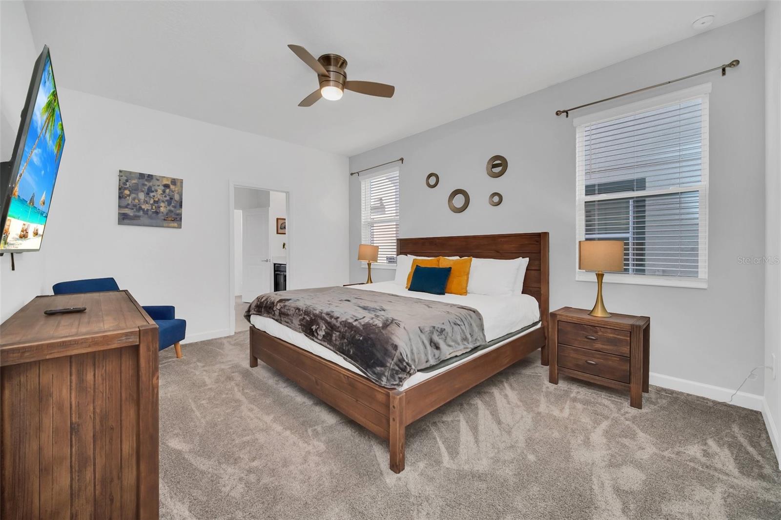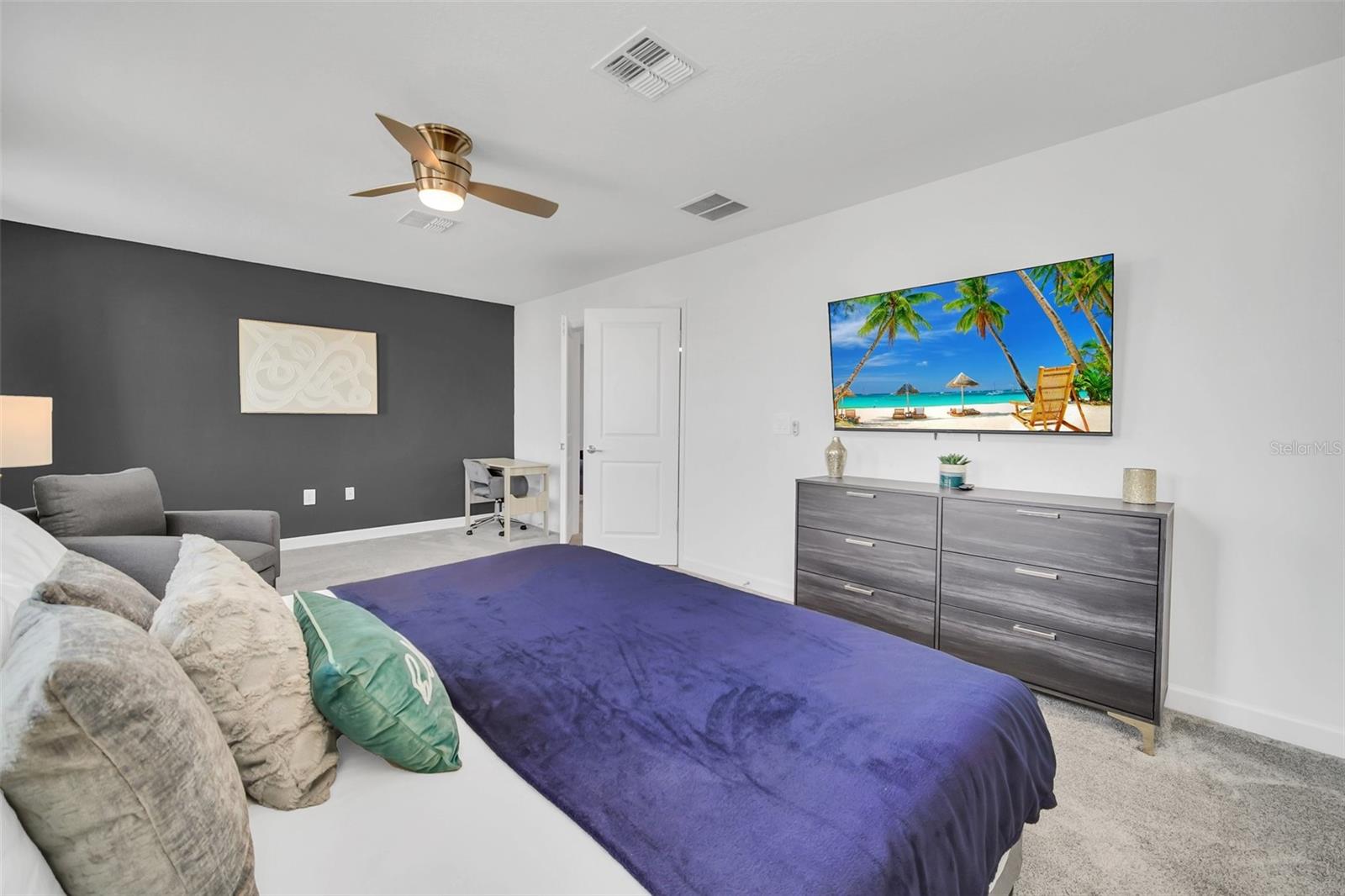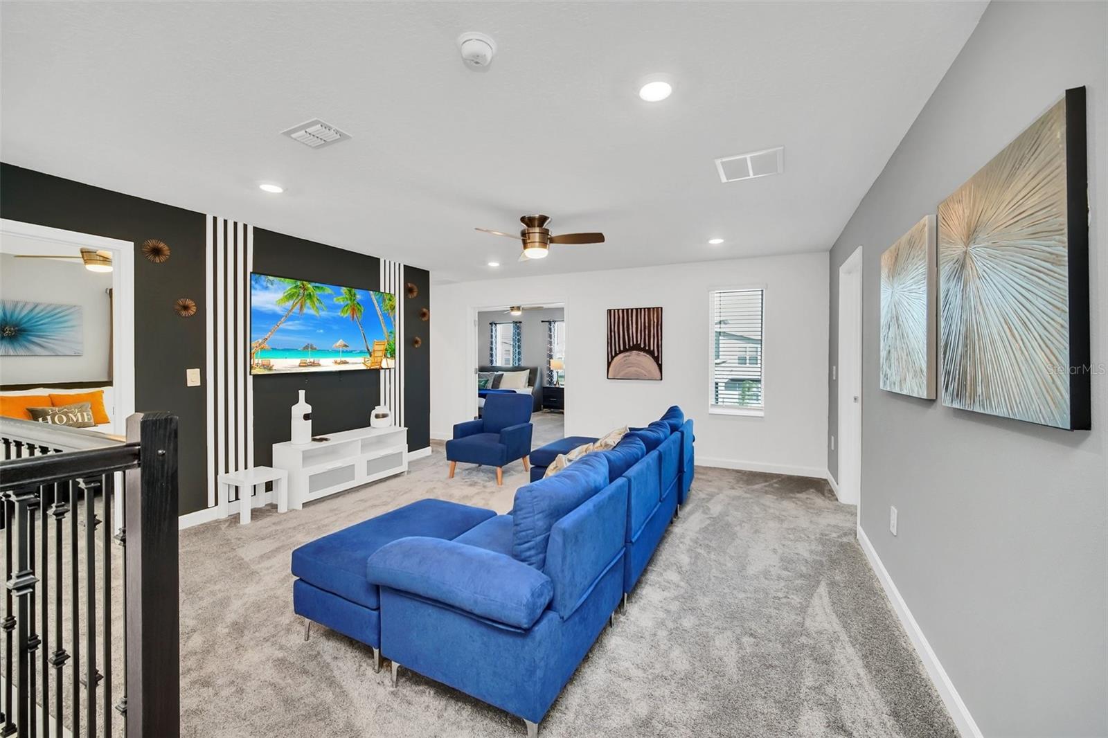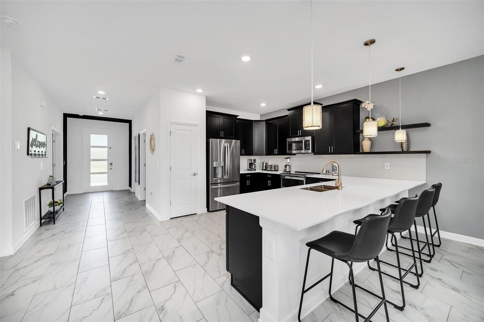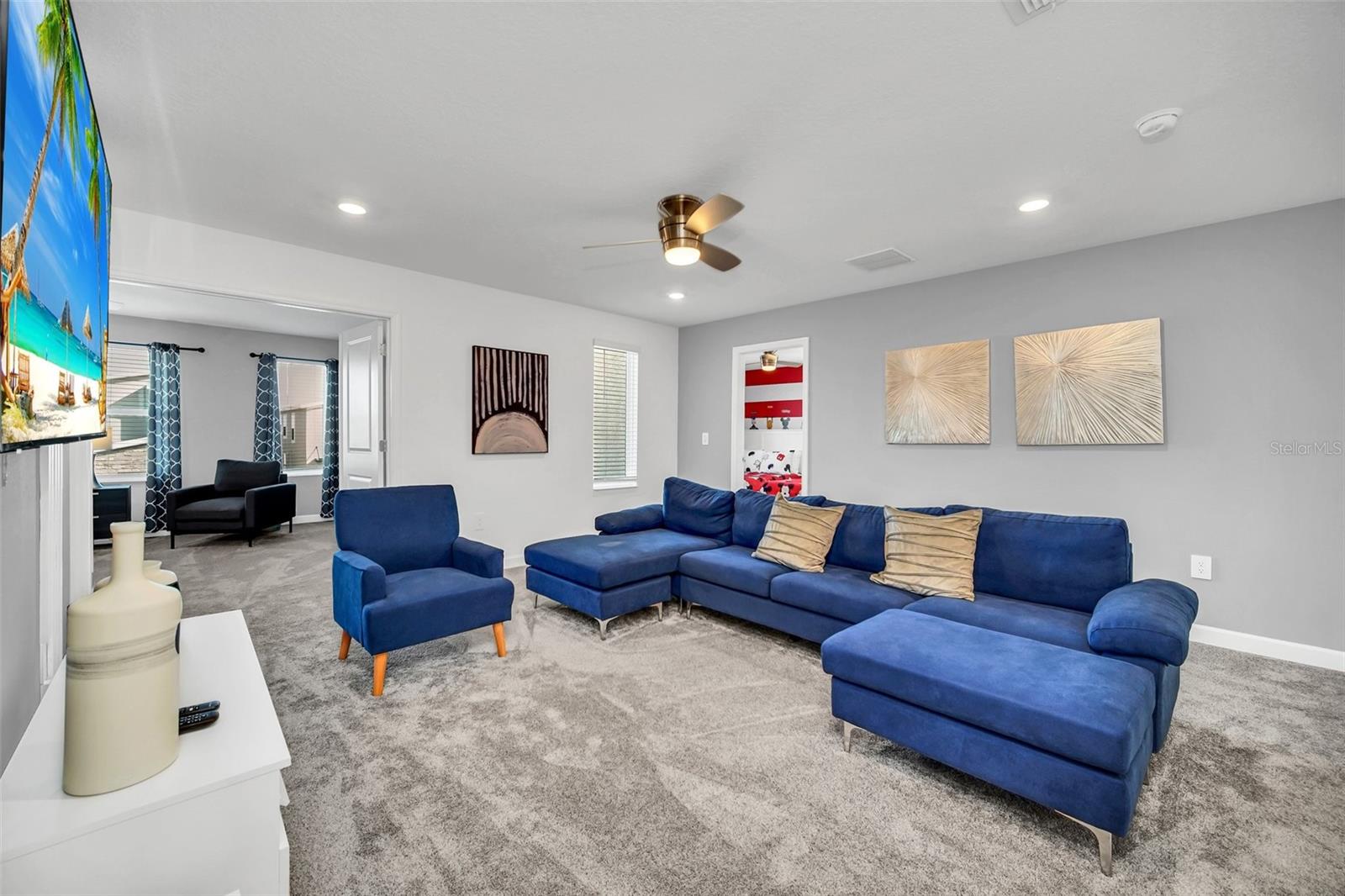 Stunning home with over $100,000 of furnishings. Welcome to your dream vacation home! This extraordinary opportunity presents itself in the form of a luxurious 9-bedroom property, fully furnished and ready for you to move in. Situated in the highly sought-after gated resort community of Champions Gate, this turnkey home offers not only a perfect getaway for you but also a fantastic investment opportunity to generate income. As you step through the front door, leave your worries behind and immerse yourself in the ultimate vacation experience. Unwind in the heated pool and spa, enjoying privacy without any neighbors at the rear. Take pleasure in savoring your favorite drink while preparing delicious meals for your loved ones on the BBQ or in the stunning kitchen, complete with quartz countertops, 42" cabinets and stainless steel appliances. The open concept design allows for effortless entertaining while you cook, catch up on your favorite TV shows, or simply relax after a long day. Whether you're gathering around the breakfast bar or the spacious dining table, there's plenty of seating for all your guests. For additional entertainment, indulge in the media room, where you can engage in lively games of foosball, ping pong, or basketball. Alternatively, unwind in the loft area on the second floor, watching your favorite movies. After an eventful day, retire to one of the nine beautifully appointed bedrooms. Conveniently located on the first floor, both the primary suite and an additional guest suite offer easy access (with one providing direct access to the private pool). The little ones will be enchanted by the themed rooms available, with options like Mickey Mouse, Avengers, or a Princess room to choose from. The Champions Gate community boasts an array of outstanding amenities, including The Oasis Club—a magnificent 16,000 sq ft Clubhouse featuring a full-service restaurant and bar, a movie theater, an arcade/game room, a business center, a yoga room, and Camp Oasis for the younger ones. Stay active at the full fitness center, take a dip in one of the two community pools or the thrilling water park, float along the lazy river, or relax at the tiki bar. Outdoor enthusiasts can enjoy the sand volleyball courts, basketball courts, dog park, and air-conditioned cabanas. Tennis enthusiasts can take advantage of the tennis courts, and golfers can tee off at the 18-hole championship golf courses. An additional clubhouse, pool, and water park offer even more opportunities for recreation. Security and peace of mind are paramount at Champions Gate, with 24-hour surveillance and included security provided by the gated community. HOA fees cover essential services such as basic cable TV, internet, yard maintenance, and trash pickup. Don't miss out on this extraordinary opportunity to own your ideal vacation home. Simply unpack, relax, and enjoy the unparalleled luxury and convenience of Champions Gate.