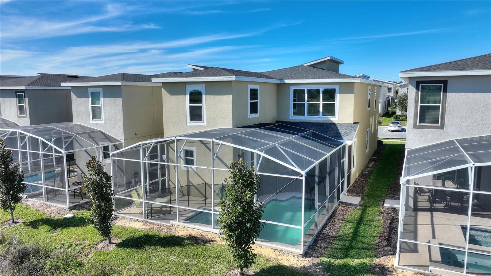 WELCOME HOME TO BEAUTIFUL CHAMPIONSGATE! ***PERFECT AIRBNB/VRBO Investment Property!*** Zoned for Short Term & Long-Term Rentals. FULLY FURNISHED, AMAZING INVESTMENT OPPORTUNITY! Light and bright! Absolutely flawless! This highly desirable home features 5 large bedrooms, 5 bathrooms, heated pool with a private lanai that backs up to scenic preserves and a golf course! The first floor has high ceilings with an open floor plan featuring a large spacious kitchen with loads of upgrades to include 42" cabinets, quartz countertops and tile in the main living areas! Golf carts can be driven throughout the community! This luxury, gated, resort style community is centered around the Oasis Club, a 14,000 sq ft clubhouse that includes a restaurant, movie theater, fitness center, game room, tiki bar, lazy river, cabanas and much more! The recently finished Retreat club offers a full water park, pool and restaurant! Amazing amenities that will be sure to attract potential renters! HOA Covers access to the Oasis Club/Retreat club and its amenities, gated entries, complete lawn care, trash, security monitoring, cable, phone and internet. CDD is included in the taxes. ChampionsGate community is the perfect place to live/vacation and enjoy all the theme parks, golf, shopping, and dining experiences that the Orlando area has to offer!