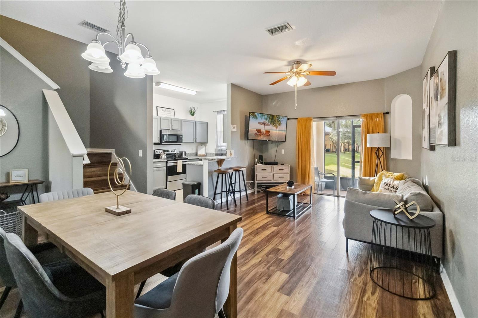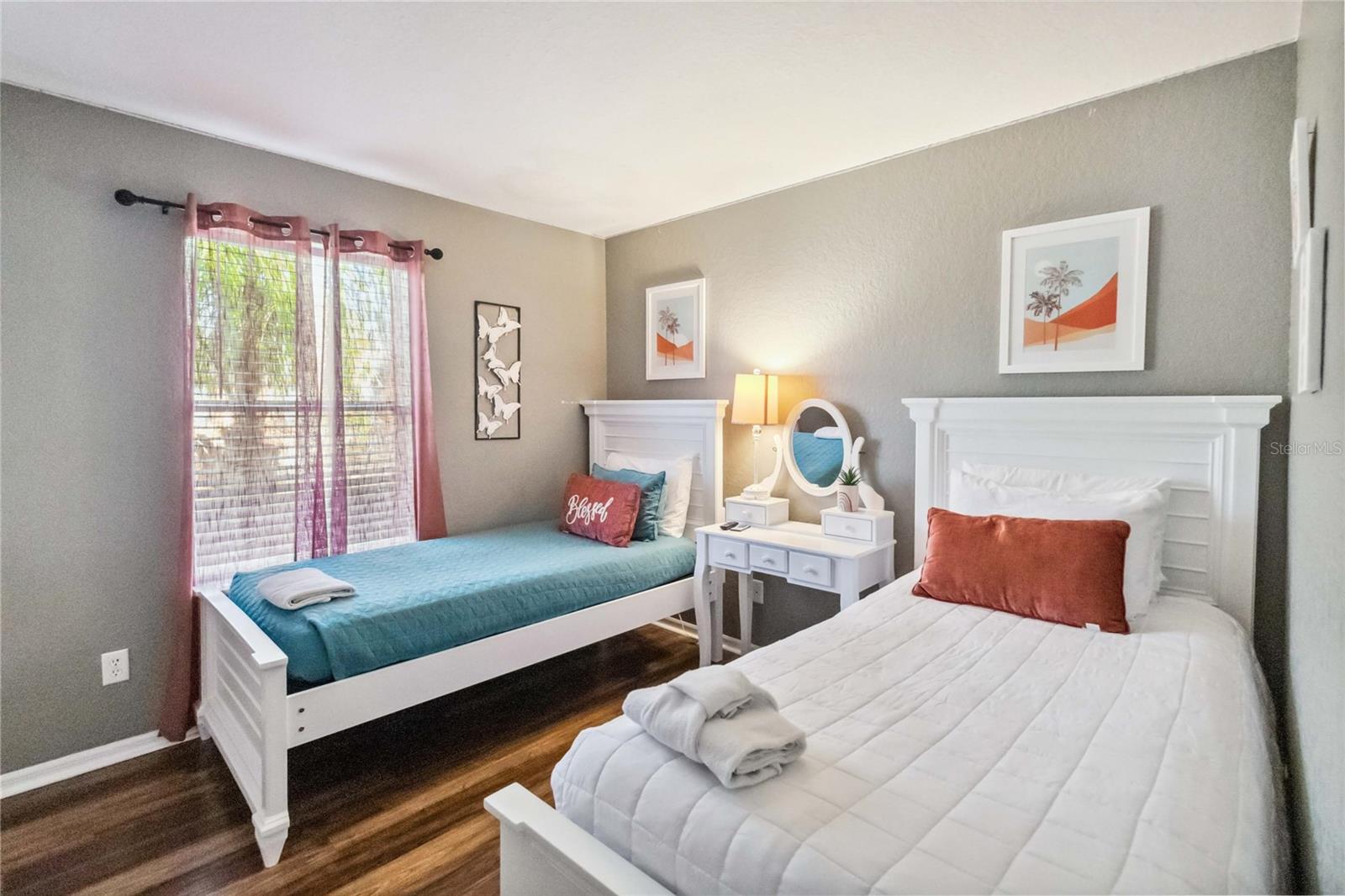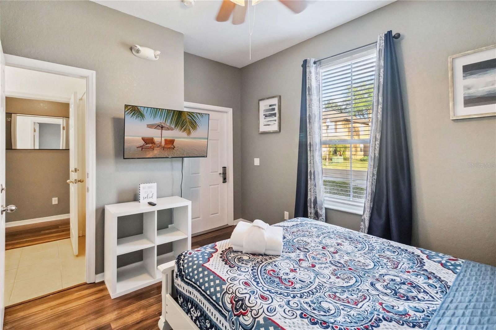 Nestled in the resort-style community of Regal Palms, this stunning fully furnished, fully equipped two-story townhome offers 1,492 square feet of comfortable living space. Featuring 4 spacious bedrooms and 3 beautifully appointed bathrooms, this home is fully furnished and ready for you to move in or start earning with short-term rentals. Designed for both relaxation and connection, the home's layout provides plenty of space for gatherings in the communal areas while also offering private corners for quiet moments. Step outside to enjoy the array of resort-style amenities right at your doorstep. The luxurious clubhouse, just a short stroll away, boasts a lazy river, water slide, arcade room, and a spa-perfect for unwinding after a day of fun.