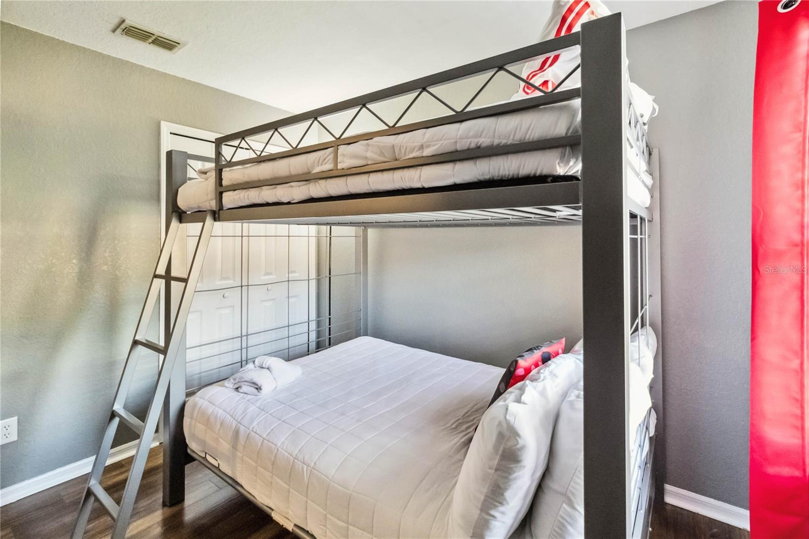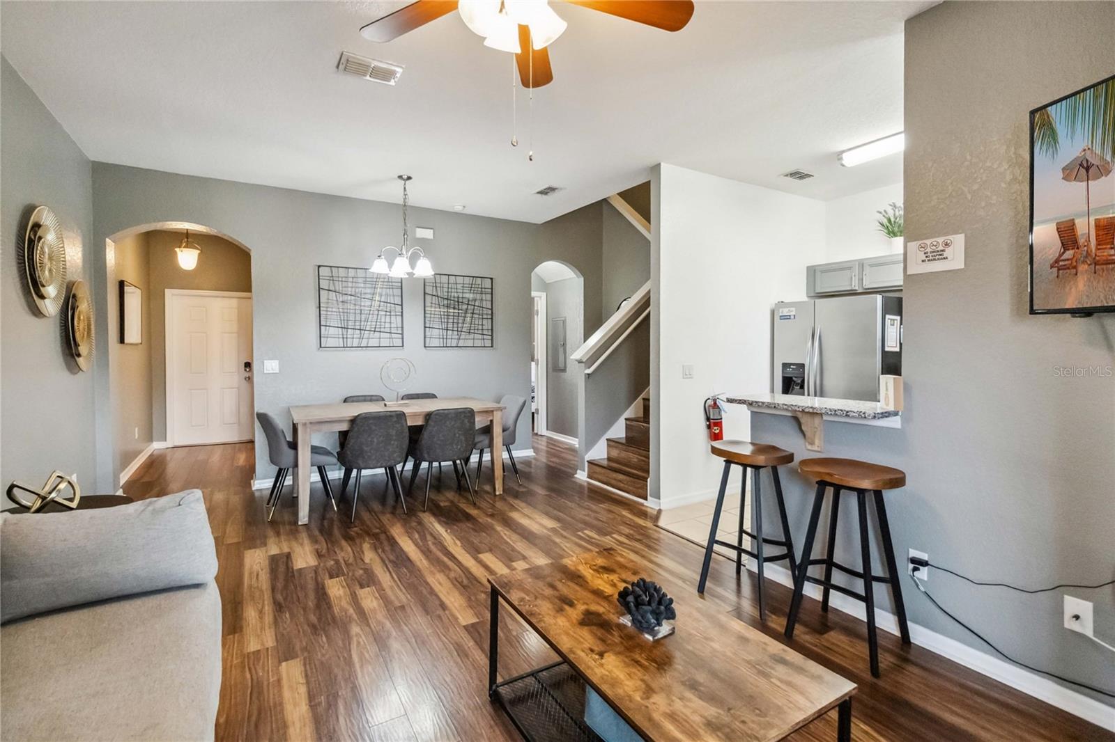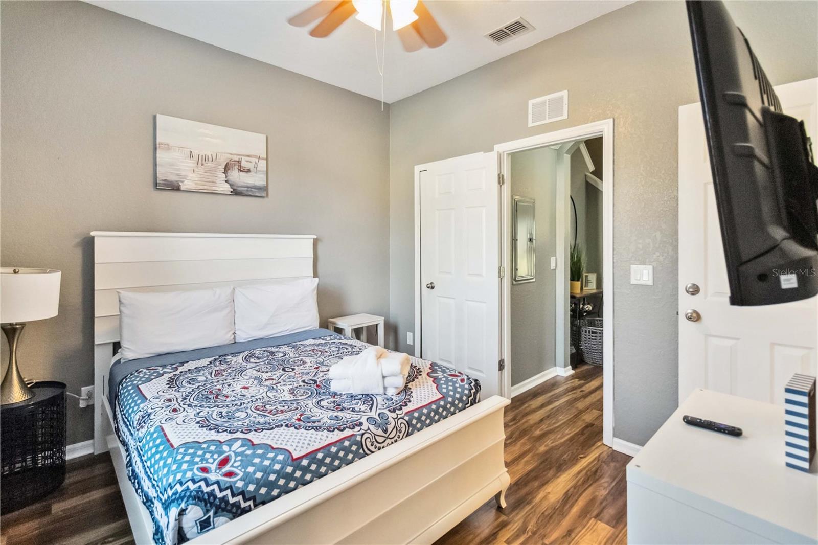 Nestled in the resort-style community of Regal Palms, this stunning fully furnished, fully equipped two-story townhome offers 1,492 square feet of comfortable living space. Featuring 4 spacious bedrooms and 3 beautifully appointed bathrooms, this home is fully furnished and ready for you to move in or start earning with short-term rentals. Designed for both relaxation and connection, the home's layout provides plenty of space for gatherings in the communal areas while also offering private corners for quiet moments. Step outside to enjoy the array of resort-style amenities right at your doorstep. The luxurious clubhouse, just a short stroll away, boasts a lazy river, water slide, arcade room, and a spa-perfect for unwinding after a day of fun.