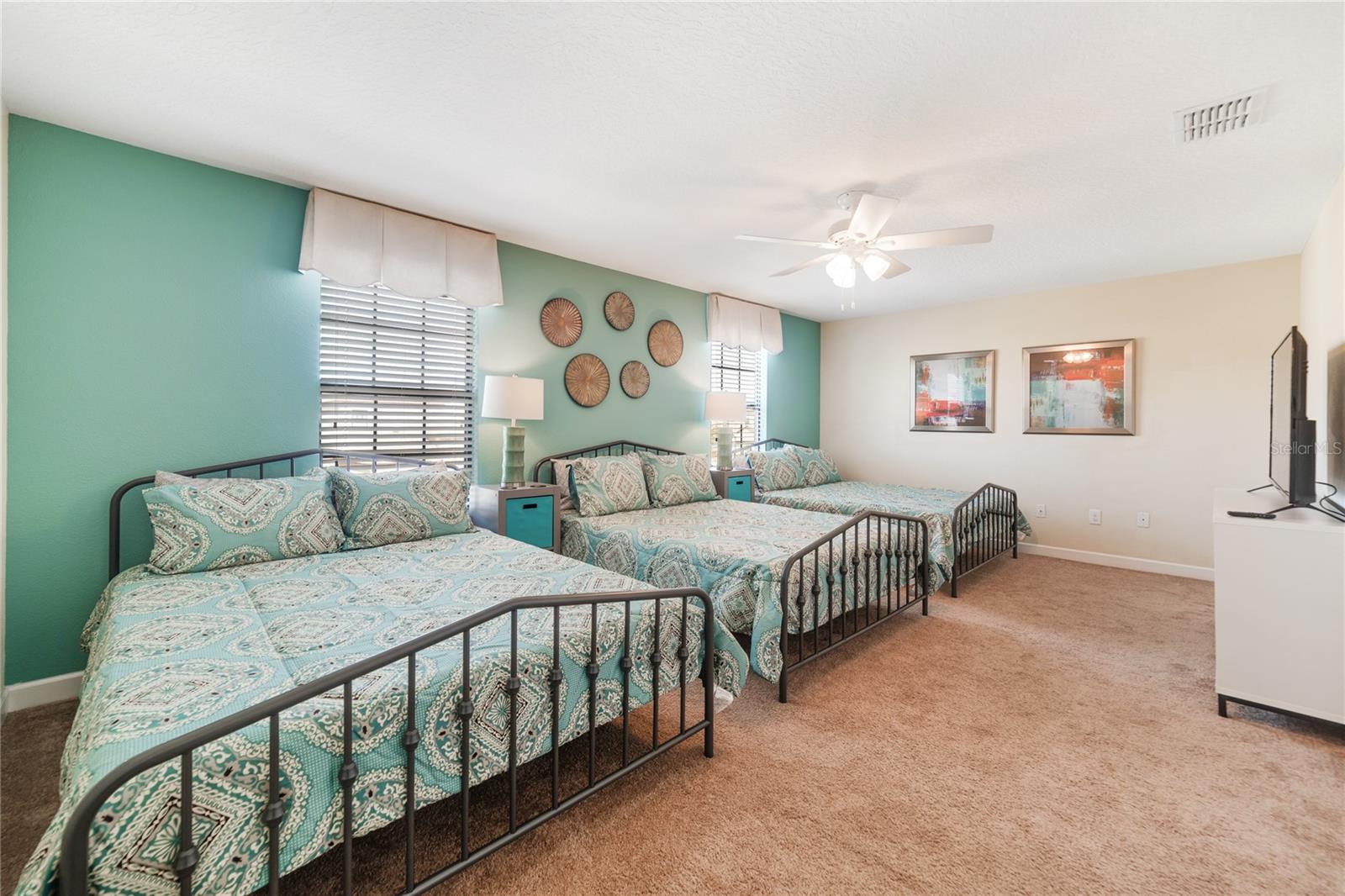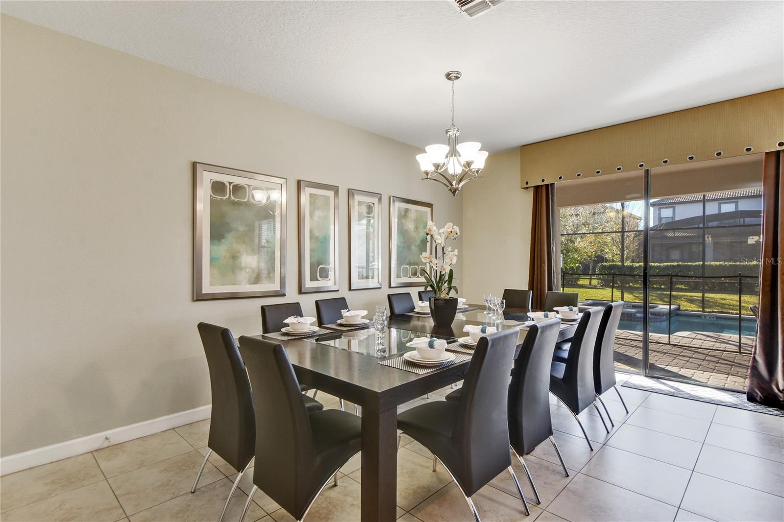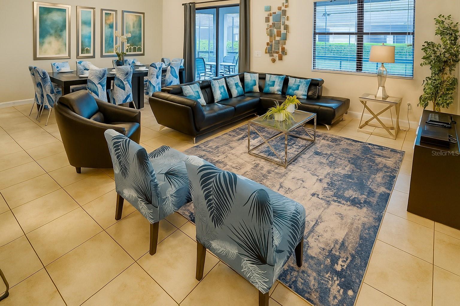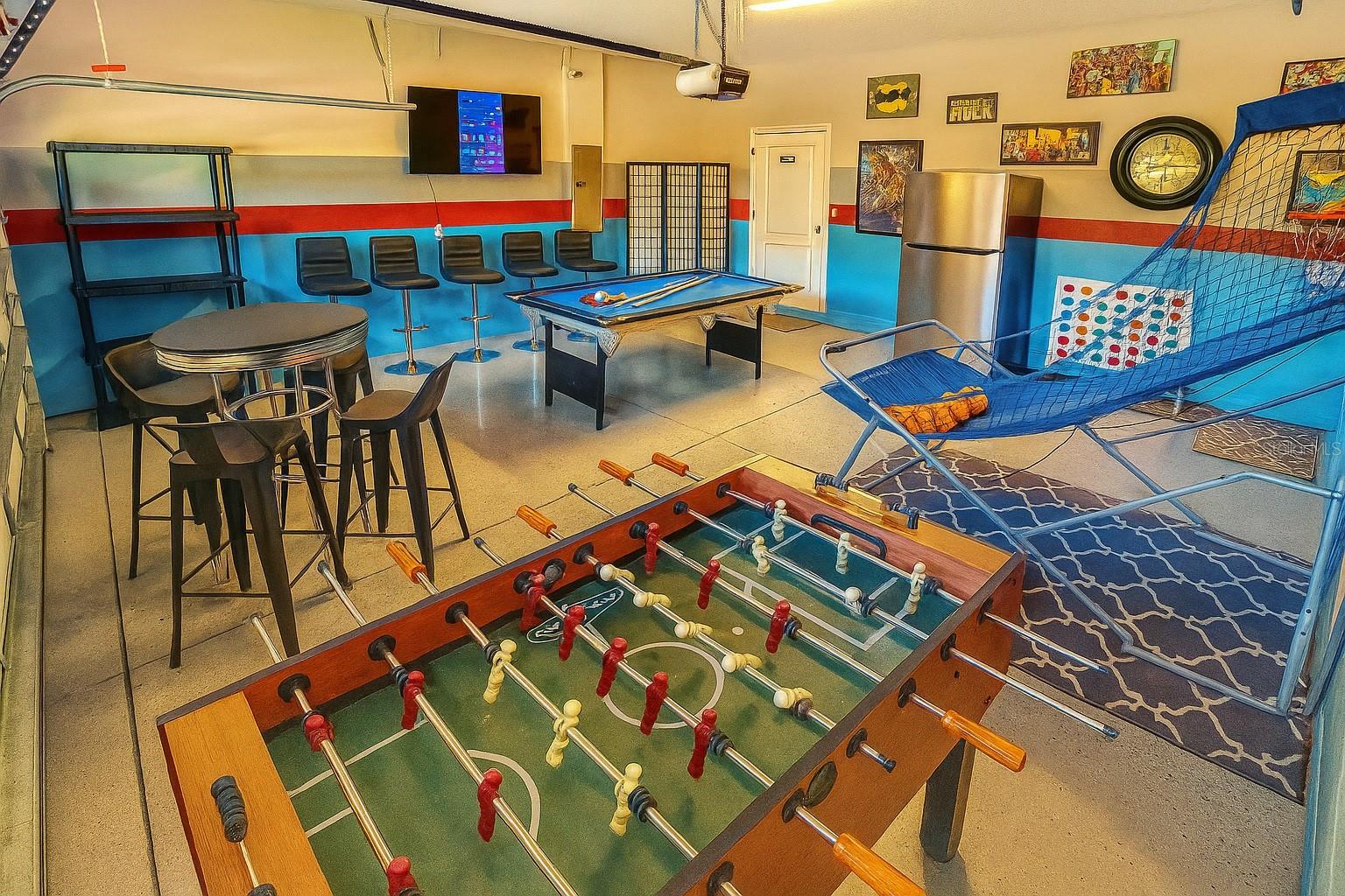 Nestled in the highly sought-after ChampionsGate Retreat subdivision, this exceptional 9-bedroom, 5-bathroom vacation rental home offers a unique combination of luxury, comfort, and practicality. A true turnkey investment property, this home has consistently generated over $100,000 in gross annual rentals, making it an outstanding opportunity for investors and vacationers alike. Key Features: South-Facing Pool and Lanai: Enjoy all-day sun exposure by the stunning pool and spa, with a spacious full-width lanai offering a shaded retreat when desired. Pool and spa heating are included with every reservation. Thoughtfully Designed Interior: Professionally decorated with upscale furnishings, each room features custom décor and a unique theme. Most bedrooms are equipped with ultra-comfortable memory foam mattresses and High Definition LCD TVs, ranging from 50" to 65", ensuring ultimate relaxation and entertainment. All bedrooms & loft have luxury vinyl flooring. Downstairs living area, kitchen & bathrooms have cermic tile flooring. Ample Sleeping Accommodations: The home comfortably sleeps 34 guests, with room for two cribs or fold-out beds. Bedroom configuration: 9 bedrooms overall - 5 bedrooms with king beds - 2 bedrooms with twin-over-full bunks, full trundles, and twin-over-twin bunks (each room sleeping 7) - 1 bedroom with 3 queen beds - 1 bedroom with 2 full beds Well-Appointed Kitchen and Dining Areas: The spacious kitchen boasts upgraded tile, dark wood cabinetry, granite countertops, and stainless-steel appliances. Guests can dine at the kitchen bar (seats 5), the elegant dining table (seats 12), or the outdoor patio tables (seats 16). Entertainment and Outdoor Amenities: Game Room: Features air hockey, pool table, Connect 4, and basketball hoops for endless fun. Outdoor Lounge: Equipped with 5 loungers and outdoor seating for 16, perfect for enjoying the Florida sunshine. Privacy and Conservation Views: The south-facing rear aspect overlooks a large conservation space with a hedgerow for added privacy. Exterior Features: Mediterranean-style stucco façade, barrel-tile roof, and decorative pavers enhance the home’s strong curb appeal. Proximity to Amenities: Just a short walk from the renowned Oasis Clubhouse, offering resort-style amenities, dining, and entertainment. Impeccable Maintenance and Reviews: The home has recently received a fresh coat of exterior paint and boasts exceptional guest reviews, reflecting its quality and desirability. Detailed income and expense accounts are available upon request. Whether you're seeking a potentially lucrative investment or an upscale vacation retreat, The Southern Retreat offers possibly an unparalleled opportunity to experience the best of ChampionsGate living coupled with exceptional income generation.