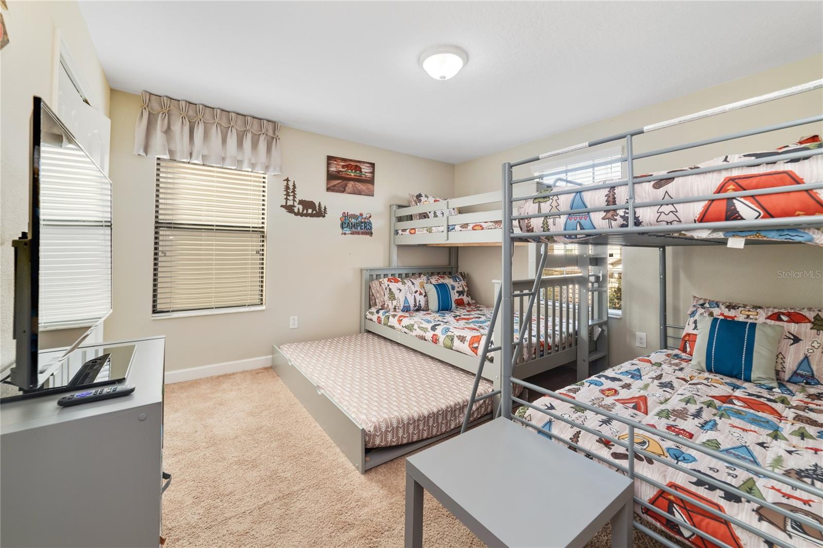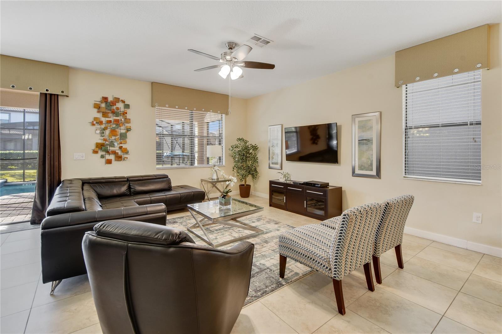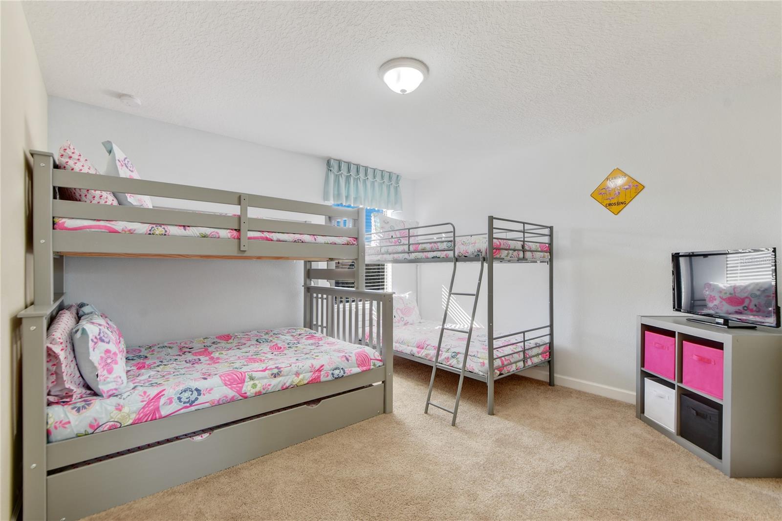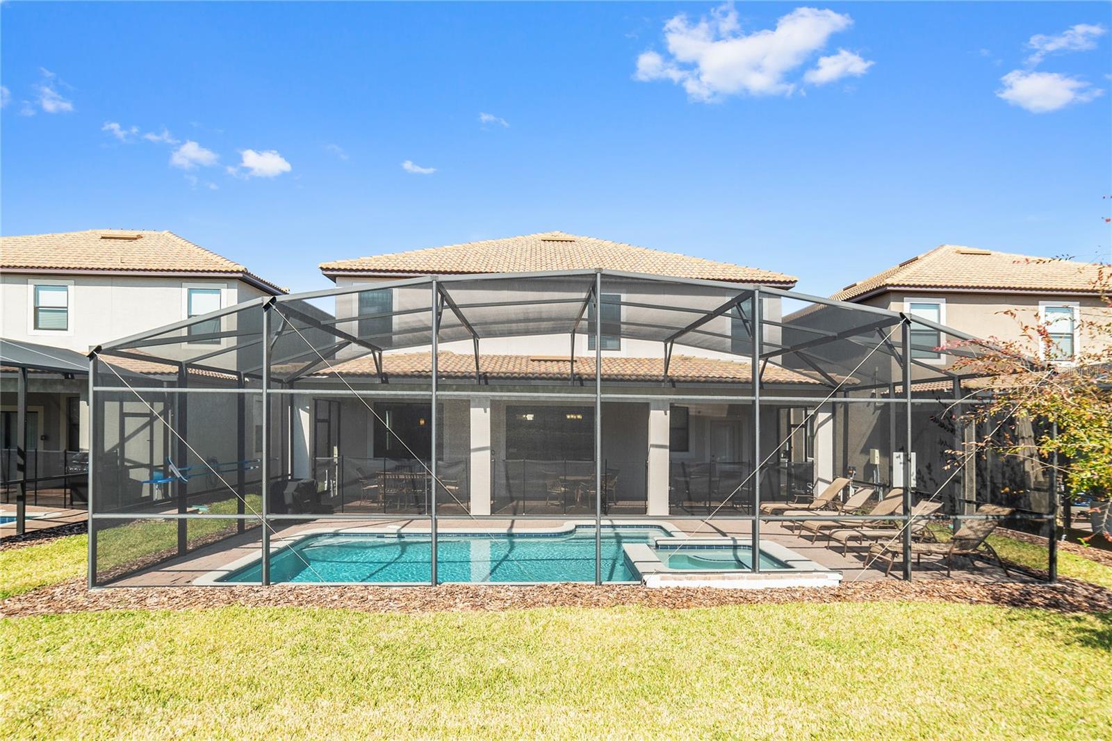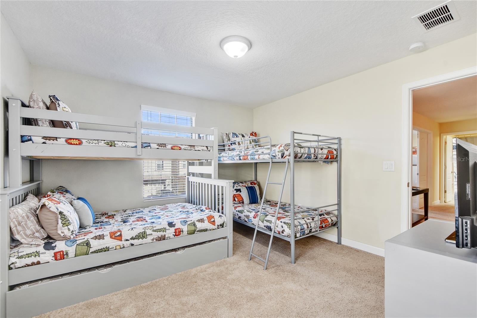 Nestled in the highly sought-after ChampionsGate Retreat subdivision, this exceptional 9-bedroom, 5-bathroom vacation rental home offers a unique combination of luxury, comfort, and practicality. A true turnkey investment property, this home has consistently generated over $100,000 in gross annual rentals, making it an outstanding opportunity for investors and vacationers alike. Key Features: South-Facing Pool and Lanai: Enjoy all-day sun exposure by the stunning pool and spa, with a spacious full-width lanai offering a shaded retreat when desired. Pool and spa heating are included with every reservation. Thoughtfully Designed Interior: Professionally decorated with upscale furnishings, each room features custom décor and a unique theme. Most bedrooms are equipped with ultra-comfortable memory foam mattresses and High Definition LCD TVs, ranging from 50" to 65", ensuring ultimate relaxation and entertainment. All bedrooms & loft have luxury vinyl flooring. Downstairs living area, kitchen & bathrooms have cermic tile flooring. Ample Sleeping Accommodations: The home comfortably sleeps 34 guests, with room for two cribs or fold-out beds. Bedroom configuration: 9 bedrooms overall - 5 bedrooms with king beds - 2 bedrooms with twin-over-full bunks, full trundles, and twin-over-twin bunks (each room sleeping 7) - 1 bedroom with 3 queen beds - 1 bedroom with 2 full beds Well-Appointed Kitchen and Dining Areas: The spacious kitchen boasts upgraded tile, dark wood cabinetry, granite countertops, and stainless-steel appliances. Guests can dine at the kitchen bar (seats 5), the elegant dining table (seats 12), or the outdoor patio tables (seats 16). Entertainment and Outdoor Amenities: Game Room: Features air hockey, pool table, Connect 4, and basketball hoops for endless fun. Outdoor Lounge: Equipped with 5 loungers and outdoor seating for 16, perfect for enjoying the Florida sunshine. Privacy and Conservation Views: The south-facing rear aspect overlooks a large conservation space with a hedgerow for added privacy. Exterior Features: Mediterranean-style stucco façade, barrel-tile roof, and decorative pavers enhance the home’s strong curb appeal. Proximity to Amenities: Just a short walk from the renowned Oasis Clubhouse, offering resort-style amenities, dining, and entertainment. Impeccable Maintenance and Reviews: The home has recently received a fresh coat of exterior paint and boasts exceptional guest reviews, reflecting its quality and desirability. Detailed income and expense accounts are available upon request. Whether you're seeking a potentially lucrative investment or an upscale vacation retreat, The Southern Retreat offers possibly an unparalleled opportunity to experience the best of ChampionsGate living coupled with exceptional income generation.