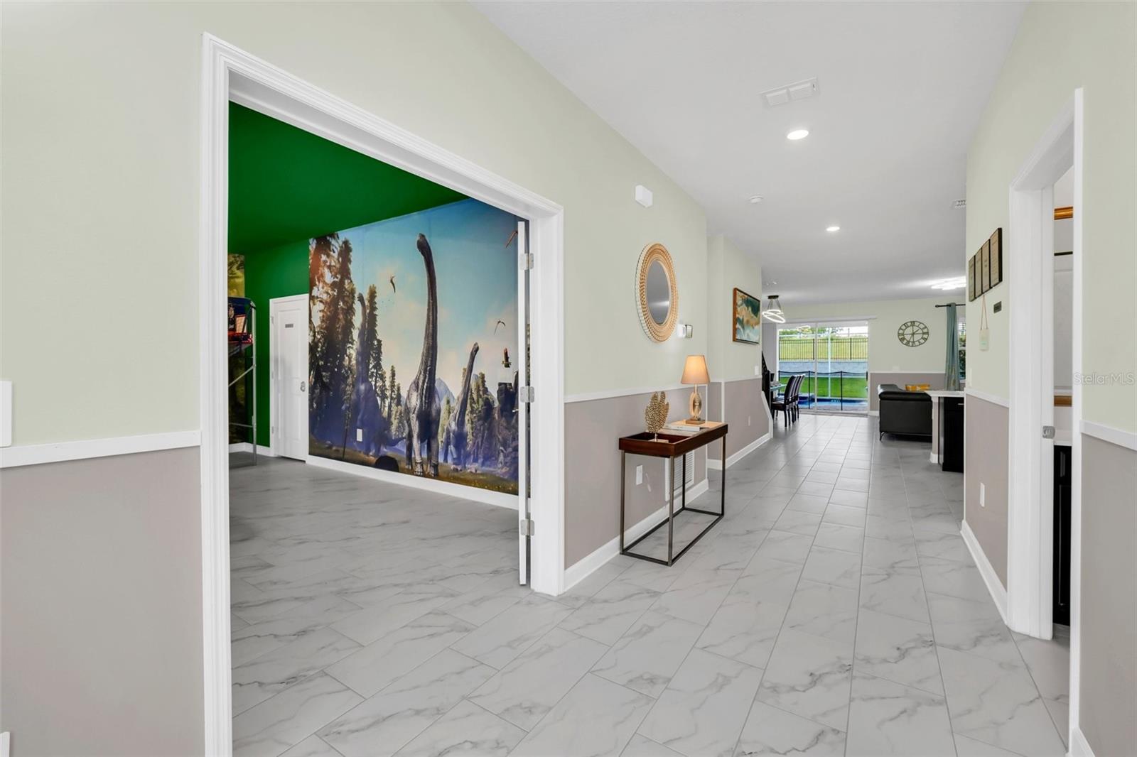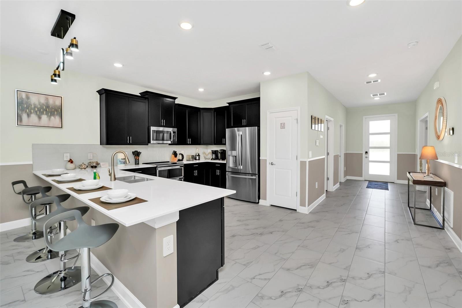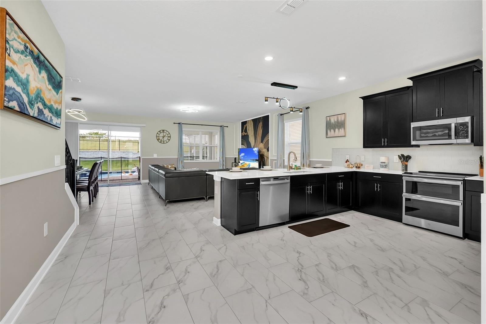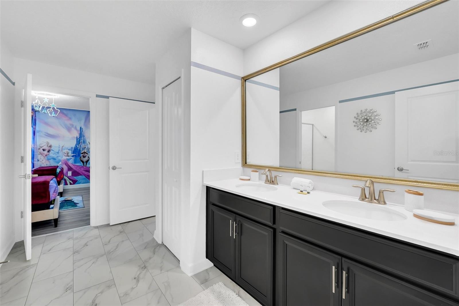 PROFESSIONAL Designed FULLY-FURNISHED SHORT-RETNAL HOUSE! LEASED ENERGY-SAVING SOLAR PANELS IN PLACE!VYNLE FLOORING IN ALL BEDROOMS AND LOFT!TURN KEY READY to start making money! Welcome to this luxurious 9-bedroom property Situated in the highly sought-after gated resort community of Champions Gate. Featuring a spacious open floor plan, this professionally decorated home boasts a stylish gourmet kitchen, complete with stainless steel appliances and an oversized island, seamlessly connects to the dining and living areas. The space naturally flows into a large screened in pool area, where you can enjoy the ultimate Florida lifestyle, ideal for relaxation and entertainment. With no rear neighbors, you’ll also enjoy added privacy. The main floor also features two beautifully decorated bedrooms, each with en-suite bathrooms, including the spacious primary suite for easy access to the pool. The game room at this home is an entertainment haven, designed to provide endless fun for guests of all ages. Whether you’re shooting hoops on the indoor basketball court, testing your skills with a game of foosball, or enjoying the nostalgia of classic arcade games, there’s something for everyone. The pool table offers the perfect setting for friendly competition, while the extra fridge ensures plenty of cold drinks and snacks are always within reach, making it ideal for longer gaming sessions. The living room and loft of this home are perfect for movie nights, sports games, or binge-watching your favorite shows, thanks to the stunning 75” TV in each space. The large screens provide a cinematic viewing experience, creating the ultimate entertainment zones for family and friends to gather. The second floor is designed with fun, themed bedrooms that bring excitement to every stay. From Disney and Star Wars to Avengers and Harry Potter, each room is professionally decorated to create a magical atmosphere that will captivate guests of all ages. This 9 bedroom has even more to offer: The solar panels on this vacation home are an outstanding feature that not only enhance sustainability but also provide significant cost savings. By harnessing the power of the sun, these leased and assumable solar panels help reduce electricity costs, saving up to $500/month during the summer and $300-$400/month during the winter. Vinyl flooring, ideal for high-traffic areas and easier to clean between guests, offers a sleek, modern aesthetic without the need for frequent deep cleaning, making it a practical choice for vacation homes. For additional enjoyment, residents and guests enjoy easy access to multiple resort-style clubhouses, fitness centers, pools, a lazy river, waterslide, tennis and volleyball courts, a tiki bar, and so much more. The strong rental potential and consistent popularity with vacationers offer great opportunities for consistent income and long-term investment appreciation. Whether you’re seeking a vacation retreat or an income-generating property, this property is a must-see. Schedule your showing today and make this dream home yours!