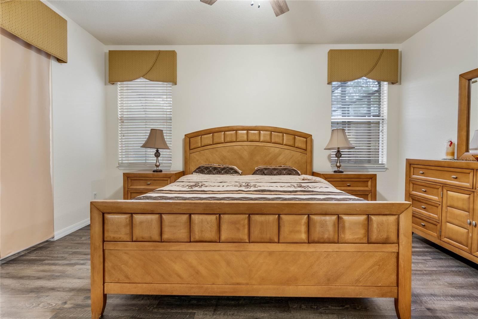 Discover this stunning home in a conservation resort community, centrally located from theme parks, Orlando, Kissimmee attractions, and both east and west coast beaches in central Florida. Features: - 5 bedrooms, 4.5 bathrooms (3 en-suites) - Large, south-facing heated Pool and Spa with conservation and pond views - Tile roof, outdoor shower, Patio, Covered Lanai and Outdoor Summer Kitchen - Custom floors, 42-inch white cabinets, and energy-efficient home - Dual zone HVAC, Smart Home technology and EV charging ready - 24hr security guard-gated community - New super high efficiency tankless water heater 11.1 GPM - New couch set in the living room This resort community supports both primary residences and short-term vacation rentals. HOA includes lawncare, valet trash, amenities and Internet and Cable TV. This home is nearly fully furnished and move-in ready. Motivated seller, concessions offered. Contact us today to schedule a private tour and make this beautiful home yours!