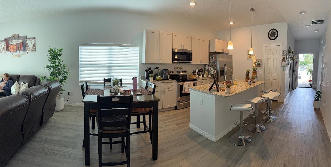 Excellent opportunity, recently reduced TO 298900. This house features 1,202 sq. ft. under roof. LOW COST for living since there are NO HOA FEES / NO CDD. This welcoming open concept floor plan with modern finishes offers 3 bedrooms two bathrooms( 1 bedroom has also a separate entrance in the porch, 1 car garage, full of INCLUDED UPGRADES such as: solid wood soft close cabinets in the kitchen / solid wood vanity in the bathrooms with Luxury vinyl plank flooring throughout the house / tiled bathroom floors / tiled floor to ceiling in the showers / high quality granite countertops in the kitchen and baths / high ceilings/luxury handles /long driveway / the windows are energy efficient / home includes almost brand-new stainless-steel