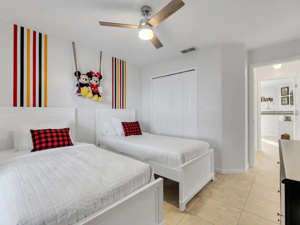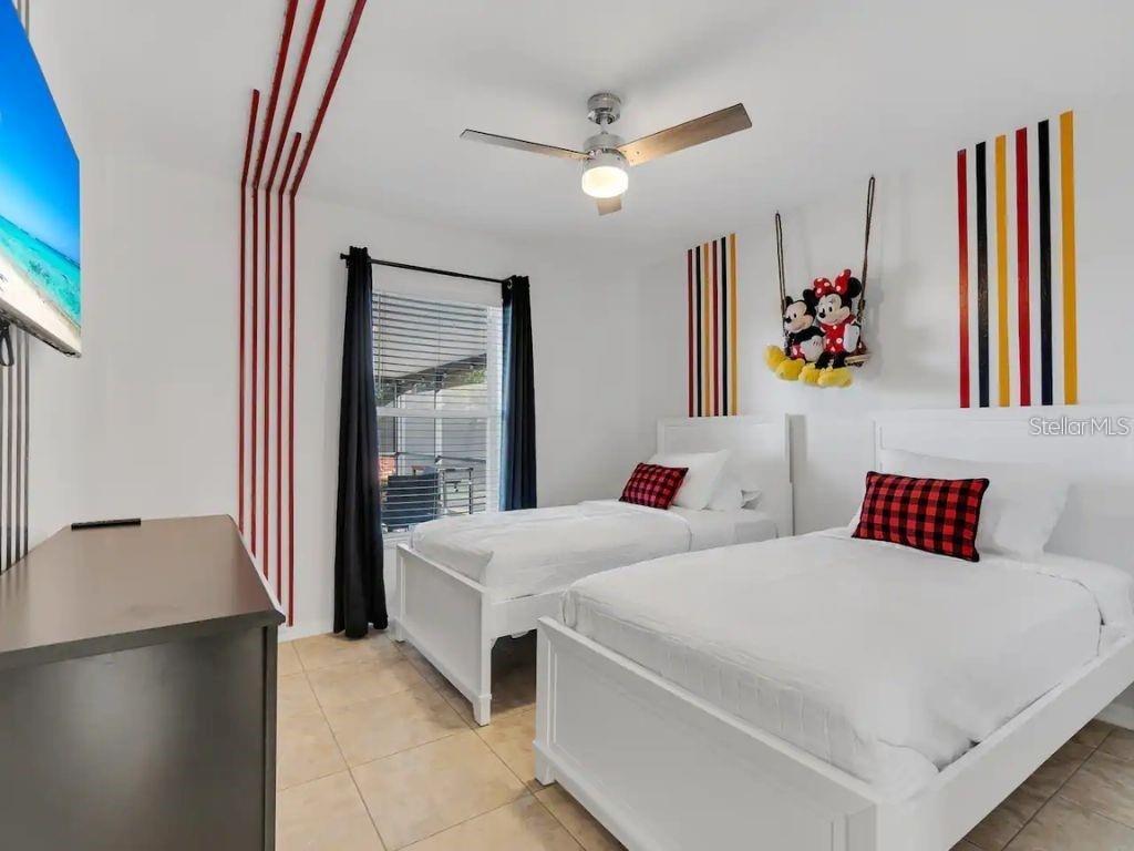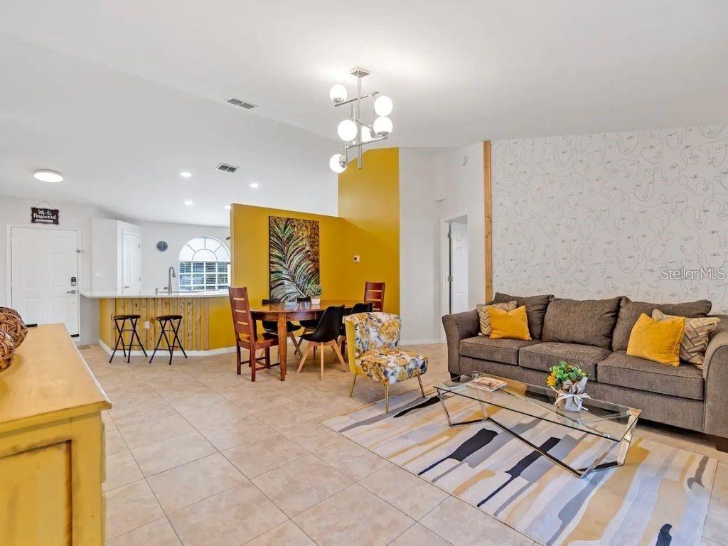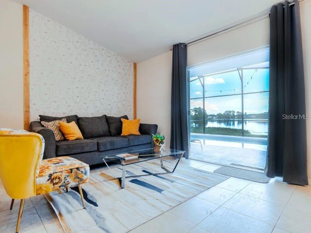 ! SHORT-TERM RENTAL, VACATION HOME, FULLY FURNISHED, PRIVATE POOL, TURNKEY AIRBNB, NO REAR NEIGHBORS, WATER VIEW. This gorgeous home is in the desirable Robbins Rest Place in beautiful Davenport, FL. The home comes fully furnished and ready for your needs as an investment home with current bookings or to move in as a primary home. It features 3 bedrooms and 2 full baths with 1,325 sq ft. The split floor plan is amazing, featuring a master suite, a separate entrance to the pool bathroom, a living room, and a family room. There is plenty of space to entertain your friends and family or for guests to enjoy your new vacation home. Appreciate the tile flooring throughout the house. The master bedroom features a large walk-in master closet, and the 2 bathrooms are completely remodeled, brand new kitchen with stainless steel appliances Enjoy the large lot with a covered porch and an amazing screened-in private pool south-facing the Lake located on 1/4 acre. Large, screened pool deck and extra space for entertainment, with tables and chairs. Hurricane shutters are available. Other features include a washer and dryer included in the sale, ceiling fans, and many more upgrades! The home is located minutes from Disney, Champions Gate, near Old Lake Wilson Road, close to shops and restaurants, and Disney attractions.