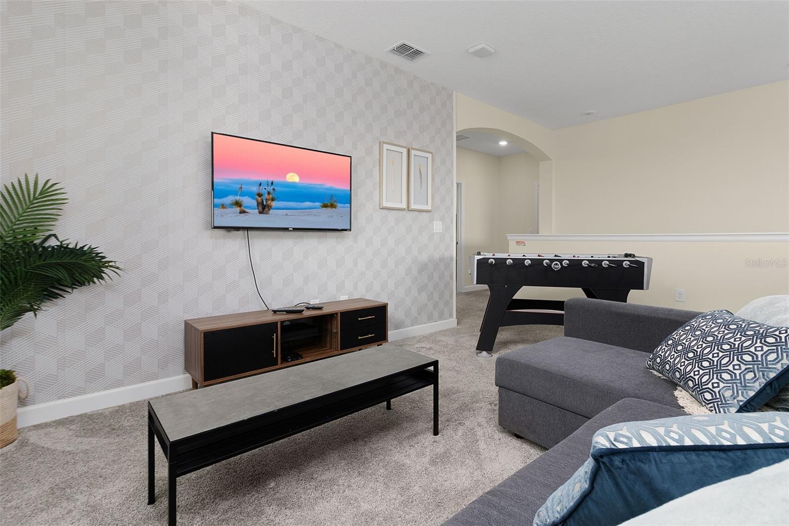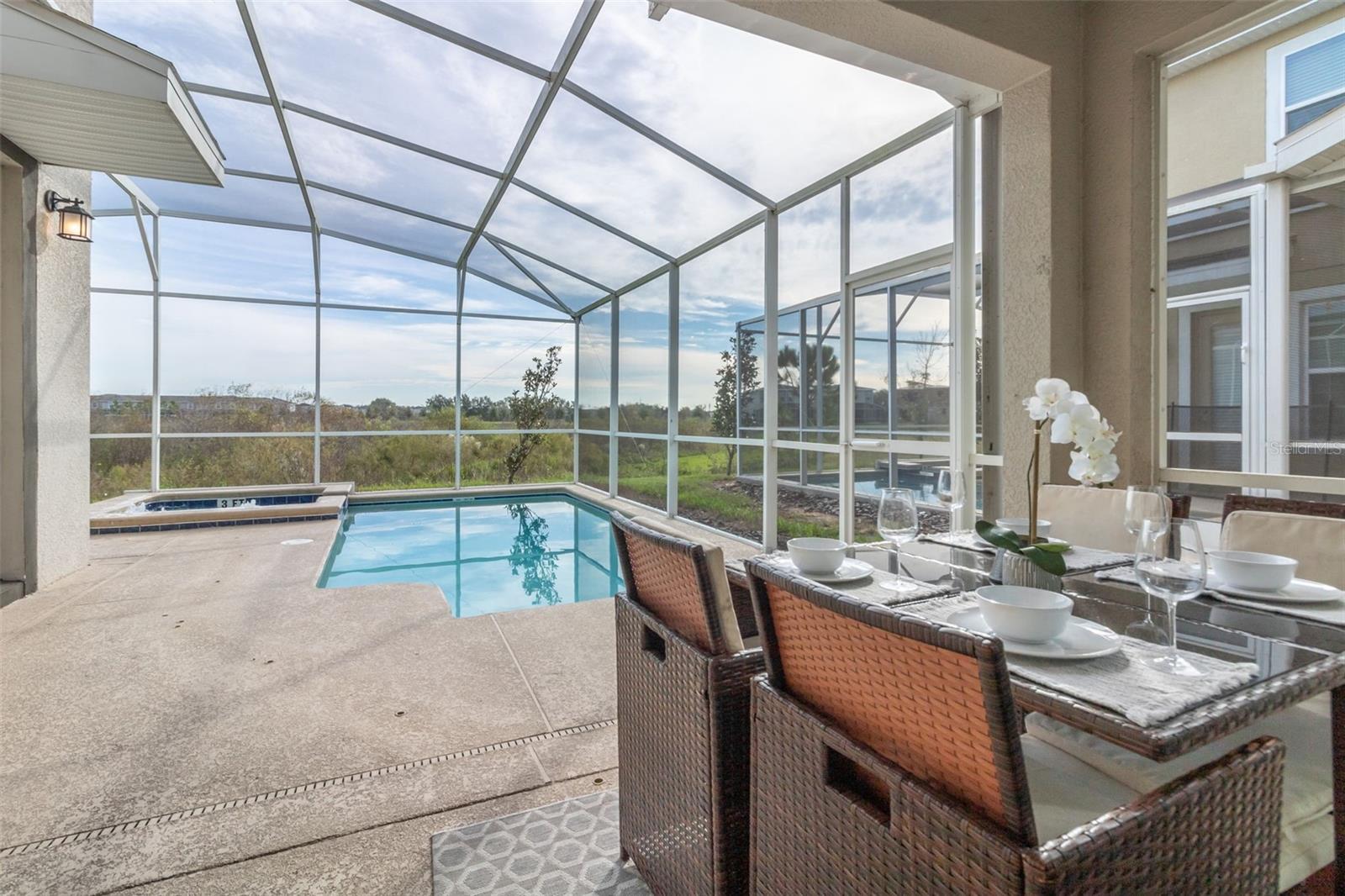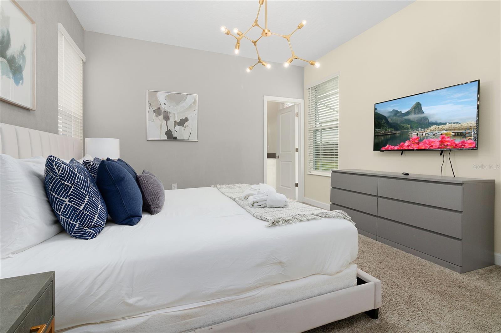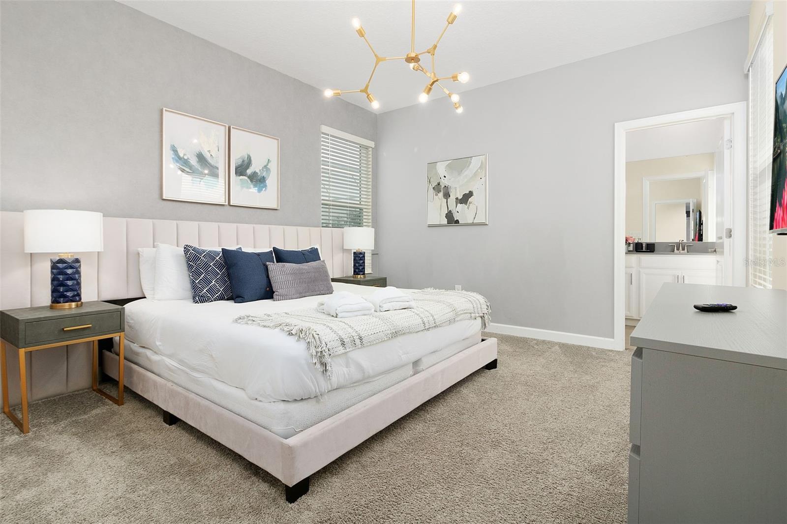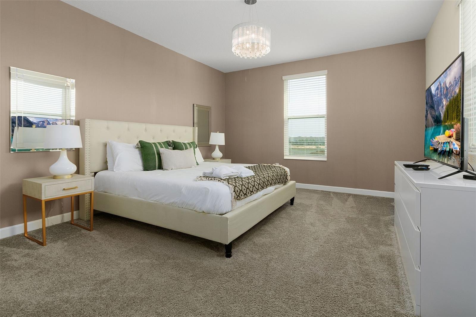 Welcome to your dream vacation getaway in Champions Gate, Florida! This stunning 5-bedroom, 5-bathroom FULLY FURNISHED single-family home offers everything you need for a relaxing and memorable stay. Step inside and experience spacious living with a modern open floor plan, beautifully designed interiors, updated kitchen, and comfortable furnishings throughout. Each of the five bedrooms is thoughtfully appointed. The screened-in patio offers a comfortable outdoor space with your own private pool and spa, perfect for unwinding after a day of exploring the local attractions or lounging under the sun. Located in the prestigious Champions Gate community, enjoy all the community has to offer: clubhouses, golf, tennis courts, and more. This home is just a short drive from Walt Disney World, LEGO Land, Universal Studios and other top attractions, making it an ideal base for any vacation. Whether you're relaxing by the pool, enjoying the luxurious interiors, or exploring all that Central Florida has to offer, this vacation home is your perfect escape.