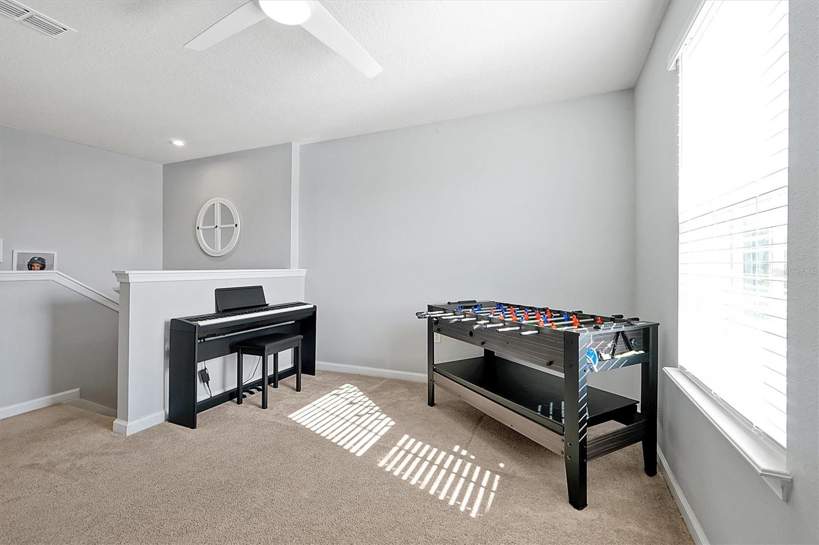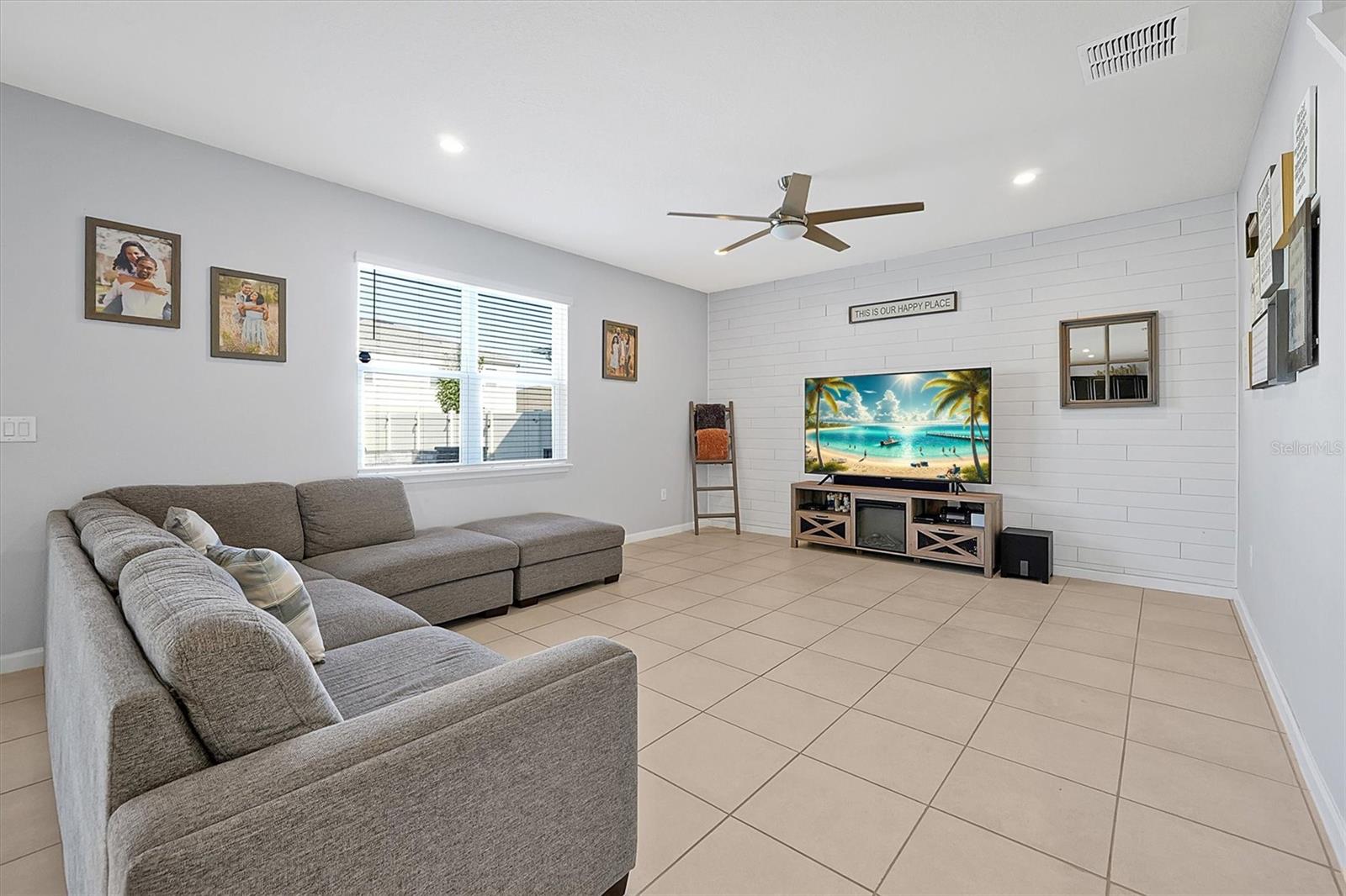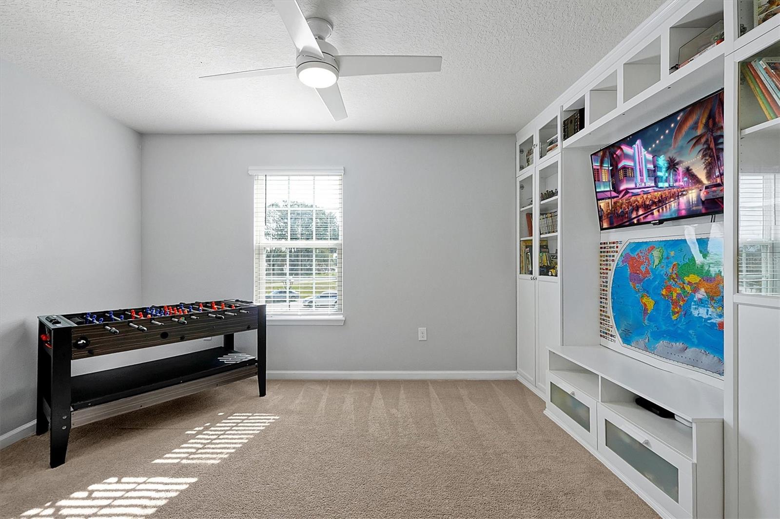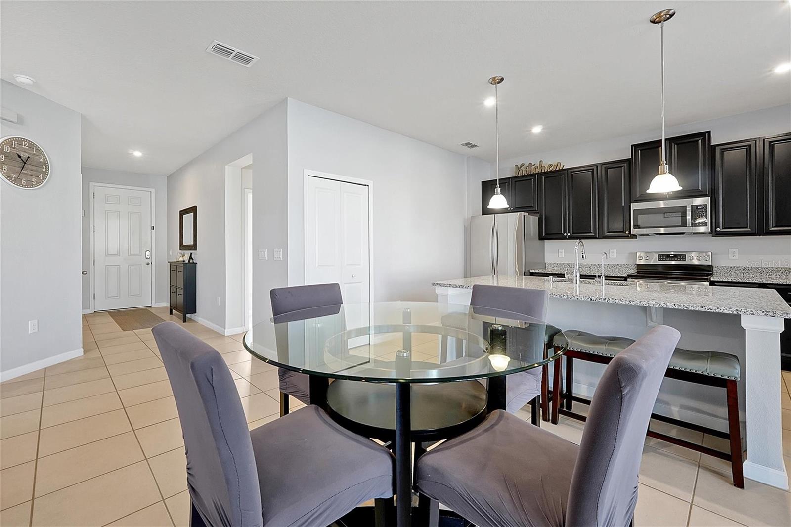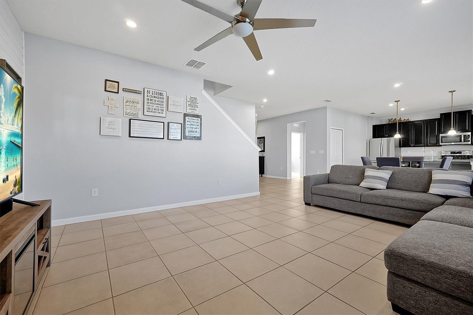 Seller offering $5,000 concession towards buyers closing cost. Luxury Smart Home Near Disney – Your Dream Lifestyle Awaits! Prepare to be captivated by this stunning smart home built by Ryan Homes, where elegance meets innovation in the highly sought-after Champions Reserve community. Perfectly positioned less than 15 minutes from Disney parks and just minutes away from fine dining, shopping, top-rated hospitals, and world-class golf courses, this home offers the ultimate Florida lifestyle. Exquisite Design & Thoughtful Upgrades Step into the beautifully designed Santa Rosa floor plan, crafted for both luxury and comfort. The expanded paved driveway adds a touch of grandeur to the home’s curb appeal, setting the stage for the impressive interior. Upon entering, you’ll be welcomed by an airy, light-filled space with modern finishes and an open-concept design. A versatile first-floor bedroom is ideal for guests, a private office, or a home gym, complemented by a full tiled shower and bath. The chef’s kitchen is the heart of the home, featuring upgraded, high-end appliances, 42” cabinetry, and sleek granite countertops. The open layout flows effortlessly into the spacious dining area and family room, where a custom decorative wood-panel accent wall, LED lighting, and ceiling fan create an inviting atmosphere. Endless Entertainment & Comfort Upstairs Ascend to the second level and discover an expansive loft—perfect for a game room, home theater, or study space. Two generously sized bedrooms and a full bath provide ample space for family or guests. The luxurious primary suite is a true retreat, boasting large windows that bathe the space in natural light. The spa-like primary bath features elegant finishes, while the walk-in closet offers endless storage space, keeping your wardrobe beautifully organized. A Backyard Oasis Like No Other Step outside and experience the ultimate outdoor paradise! The extended, paved lanai features a custom-built fireplace area with seating, perfect for cool evenings. The half-basketball court and private playground ensure endless fun—all within the privacy of a fully fenced backyard. Prime Location for Endless Adventure Whether you're indulging in the magic of Disney, playing a round at the Omni Hotel or Reunion Golf Club, or savoring fine dining and nightlife nearby, this home places you in the heart of it all. Don’t miss your chance to own this exceptional home—schedule your private showing today!