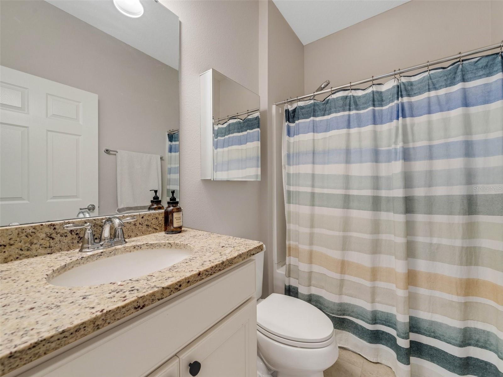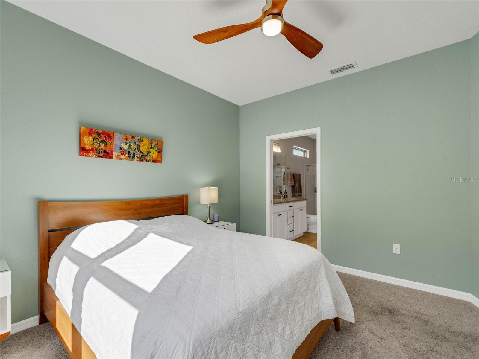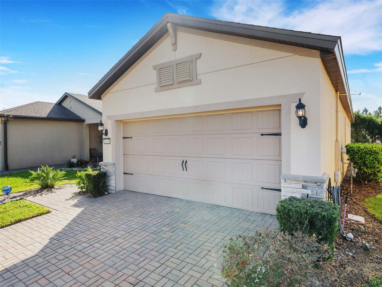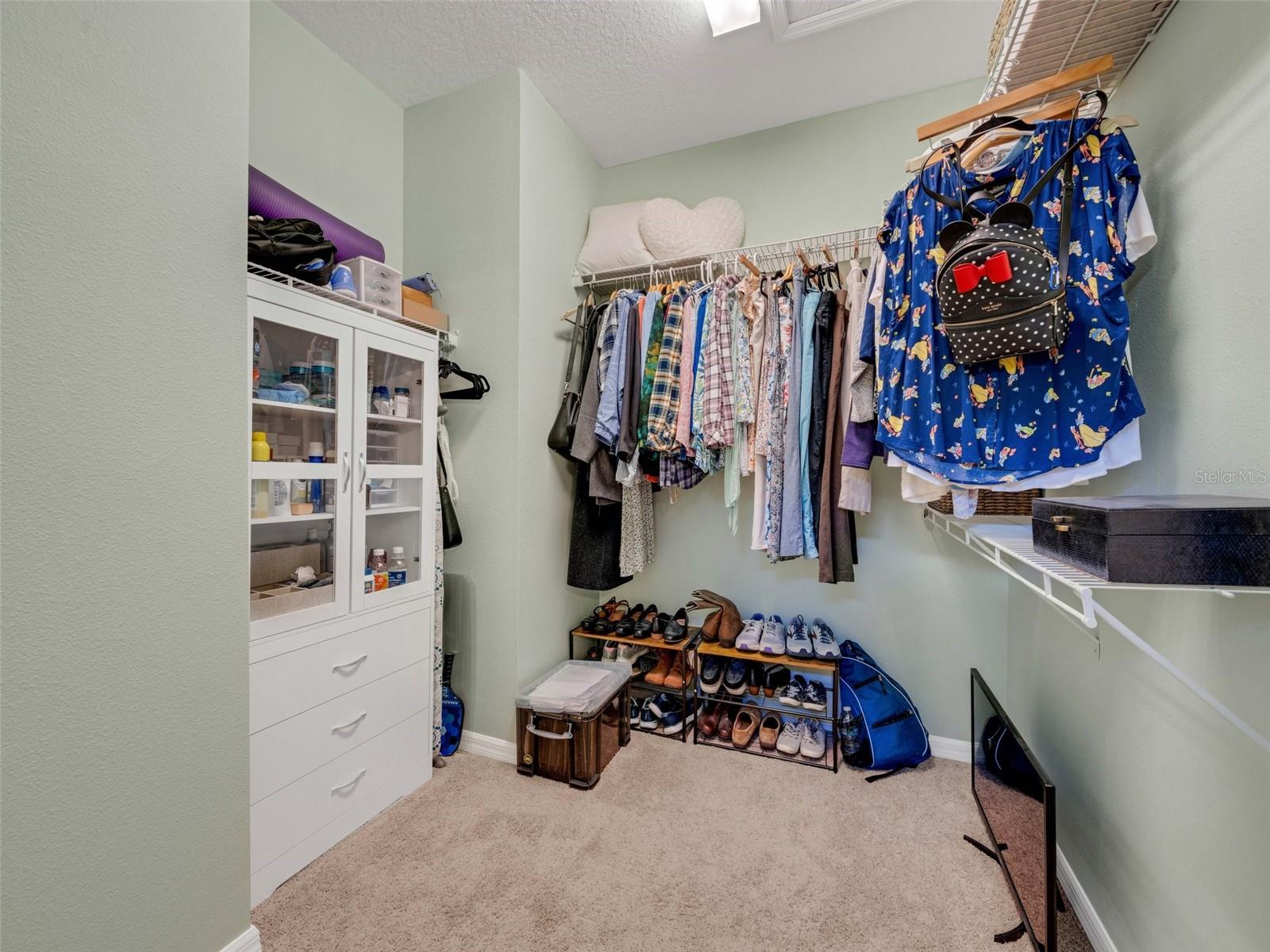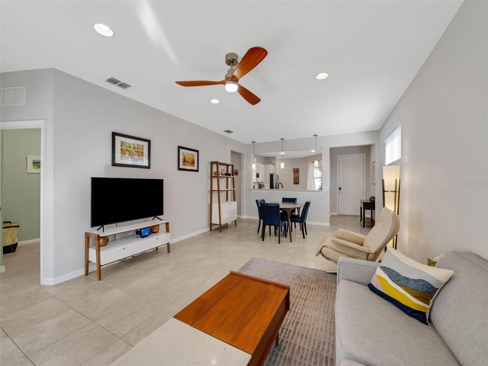 Located in the desired 55+ community of Del Webb Orlando, this immaculate Noir Coast model features 2 bedrooms and 2 bathrooms. The large kitchen has upgraded white cabinets, granite countertops and stainless steel appliances, and recent upgrades including additional cabinetry, a moveable island, new low-profile microwave, and a GE induction range. The living area has porcelain tile floors and large sliding glass doors that open up to a covered and screened lanai with a natural-gas grill. The master suite is in the rear of the home and includes an oversized walk-in closet and master bath featuring double sinks, a large walk-in shower with glass doors, a new medicine cabinet and upgraded fixtures. The laundry room complete with additional cabinetry is conveniently located near the master bedroom. The guest suite is located separately in the front of the home for privacy. Additional upgrades include a smart lock on the front door, updated lighting including ceiling fans, whole-house surge protection, and an epoxy floor in the garage. A termite warranty bond has been paid through 2025. The interior of the home has also been newly painted. The $425 semi-annual HOA fee provides 24x7 staffed security gate and master association-owned private road maintenance. Adjacent to recently renovated 18-hole White Heron Golf Club. The $277 monthly Del Webb HOA fee includes exclusive access to resident-owned 30,000+ SF Montecito clubhouse and amenities. DEL WEBB ORLANDO is a 55+ community with a tavern, indoor walking track, fitness center, indoor and outdoor pools and spas with locker rooms and showers, billiards, ping pong, craft room, and a ballroom for special events. Outdoor activities include pickleball, tennis, bocce, basketball, shuffleboard, community gardening center, an outdoor amphitheater, large brick fire pit and large screened-in gazebo over the water. Miles of biking and walking trails within Ridgewood Lakes gated community. Located conveniently to shopping at Posner Park (4 miles), Disney World, Universal Studios, Orlando & Central FL entertainment nearby. Easy access to I-4, medical facilities, airports & Sunrail Station. Advent Health hospital is 3 miles away.