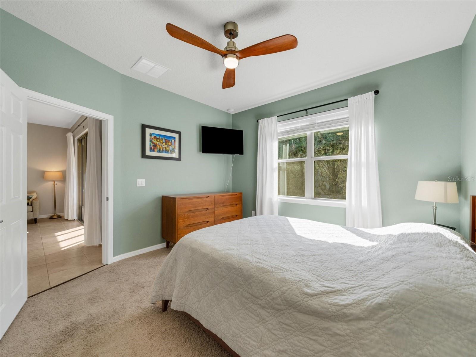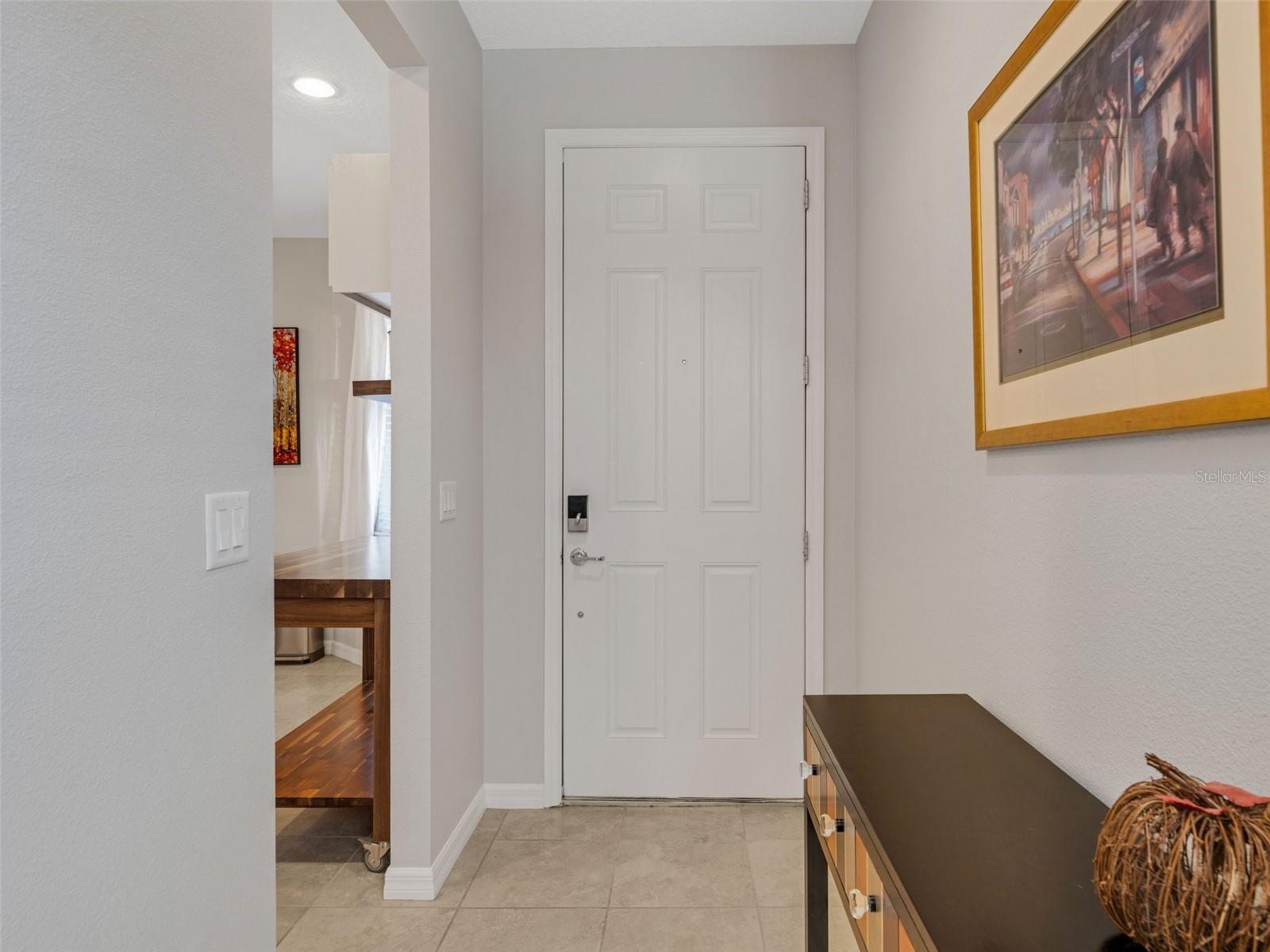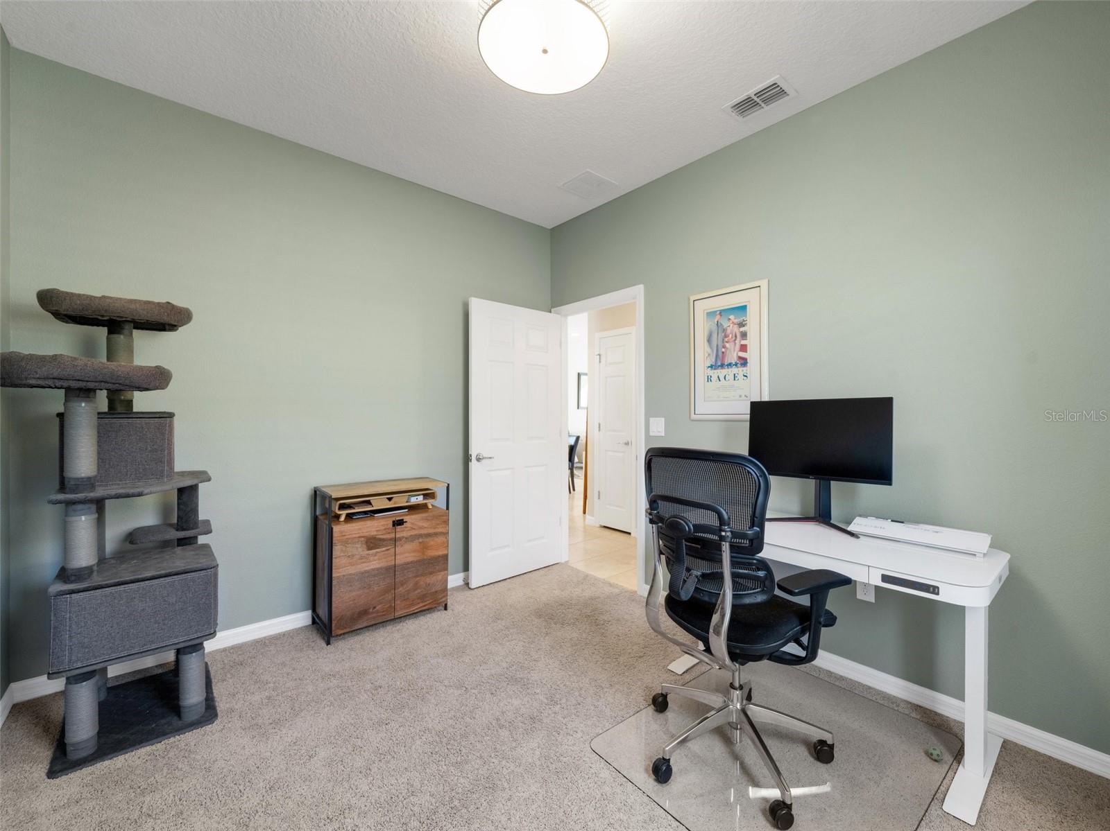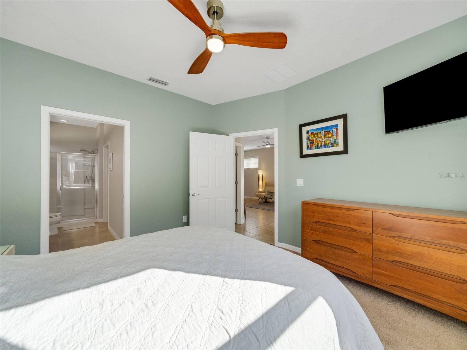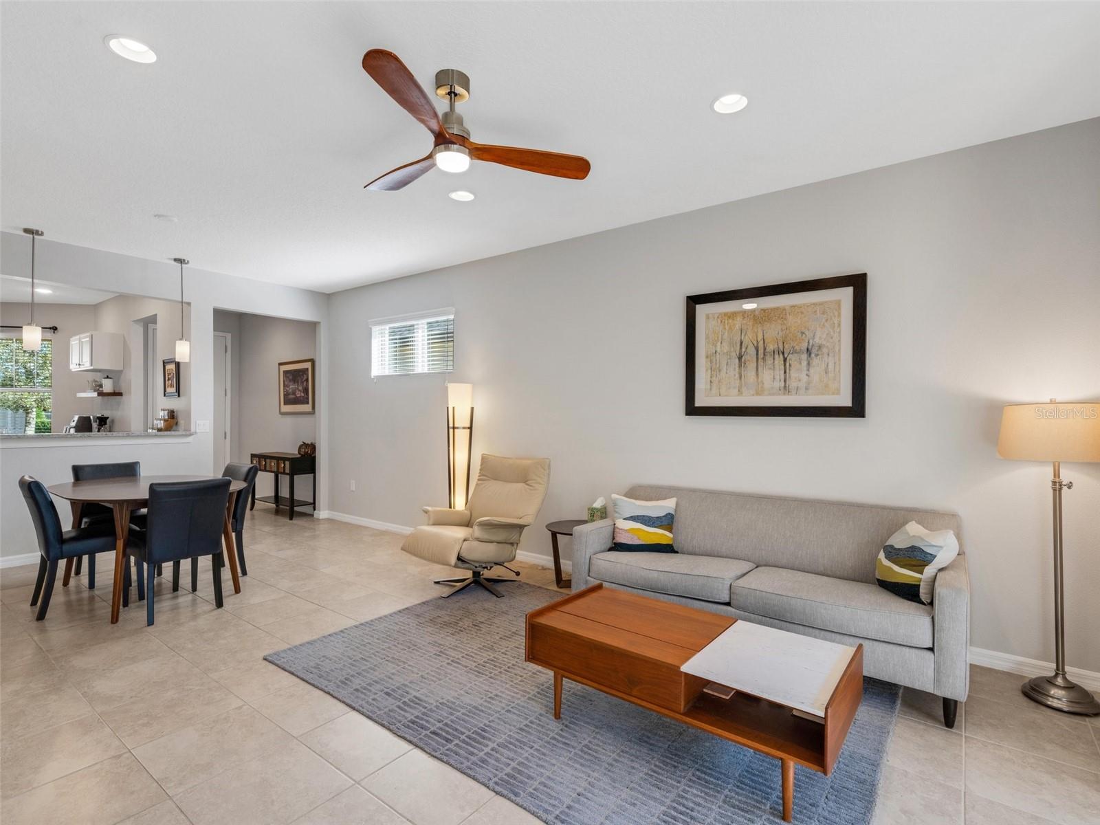 Located in the desired 55+ community of Del Webb Orlando, this immaculate Noir Coast model features 2 bedrooms and 2 bathrooms. The large kitchen has upgraded white cabinets, granite countertops and stainless steel appliances, and recent upgrades including additional cabinetry, a moveable island, new low-profile microwave, and a GE induction range. The living area has porcelain tile floors and large sliding glass doors that open up to a covered and screened lanai with a natural-gas grill. The master suite is in the rear of the home and includes an oversized walk-in closet and master bath featuring double sinks, a large walk-in shower with glass doors, a new medicine cabinet and upgraded fixtures. The laundry room complete with additional cabinetry is conveniently located near the master bedroom. The guest suite is located separately in the front of the home for privacy. Additional upgrades include a smart lock on the front door, updated lighting including ceiling fans, whole-house surge protection, and an epoxy floor in the garage. A termite warranty bond has been paid through 2025. The interior of the home has also been newly painted. The $425 semi-annual HOA fee provides 24x7 staffed security gate and master association-owned private road maintenance. Adjacent to recently renovated 18-hole White Heron Golf Club. The $277 monthly Del Webb HOA fee includes exclusive access to resident-owned 30,000+ SF Montecito clubhouse and amenities. DEL WEBB ORLANDO is a 55+ community with a tavern, indoor walking track, fitness center, indoor and outdoor pools and spas with locker rooms and showers, billiards, ping pong, craft room, and a ballroom for special events. Outdoor activities include pickleball, tennis, bocce, basketball, shuffleboard, community gardening center, an outdoor amphitheater, large brick fire pit and large screened-in gazebo over the water. Miles of biking and walking trails within Ridgewood Lakes gated community. Located conveniently to shopping at Posner Park (4 miles), Disney World, Universal Studios, Orlando & Central FL entertainment nearby. Easy access to I-4, medical facilities, airports & Sunrail Station. Advent Health hospital is 3 miles away.