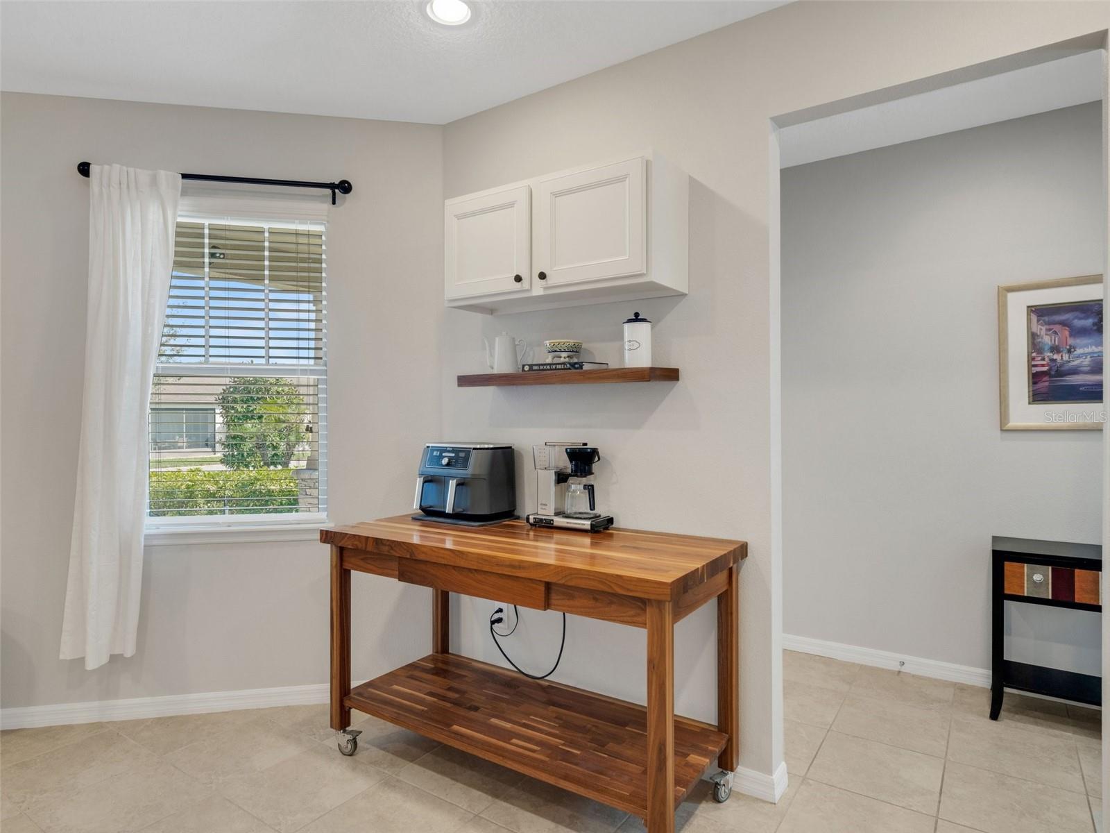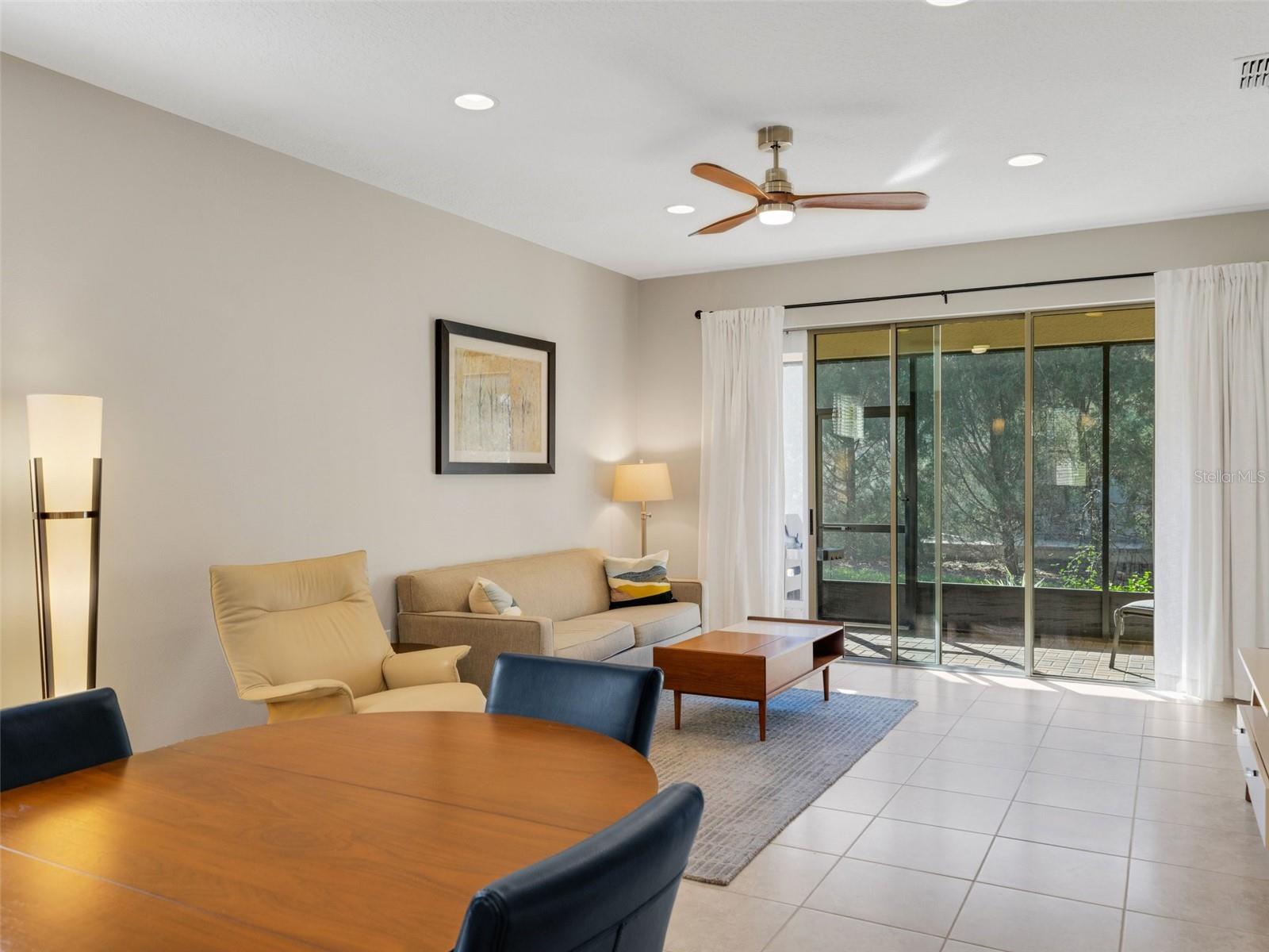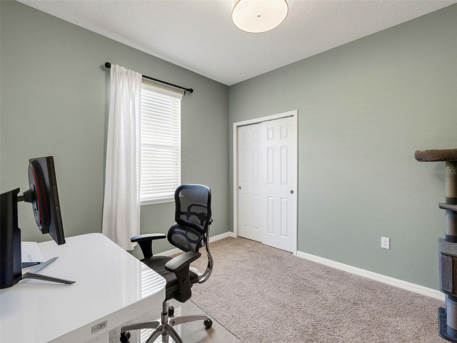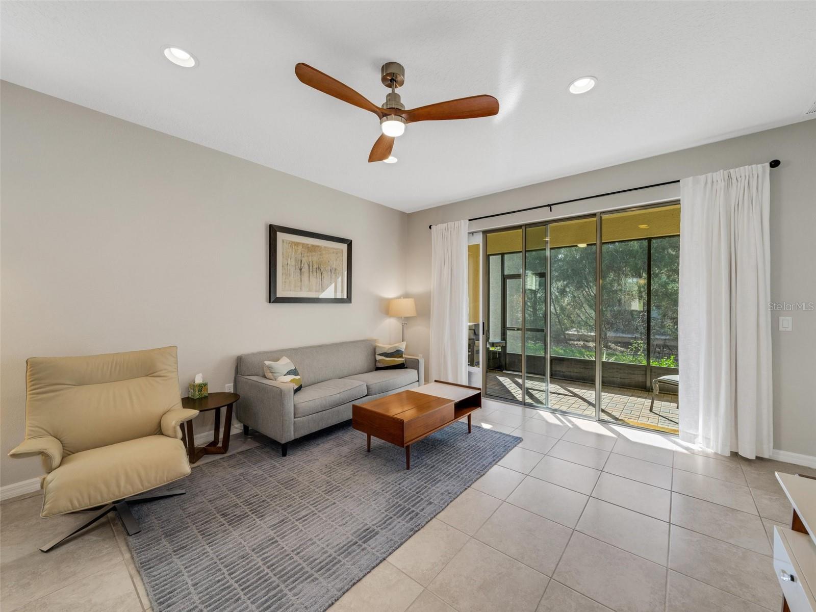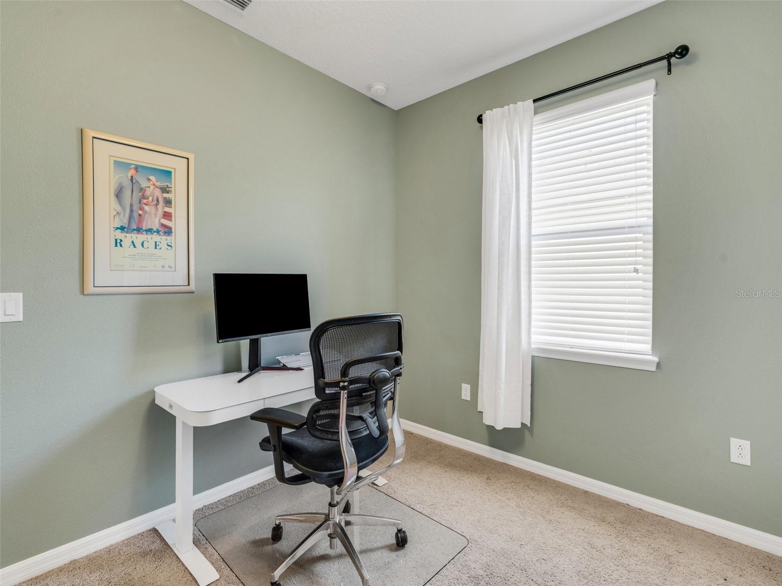 Located in the desired 55+ community of Del Webb Orlando, this immaculate Noir Coast model features 2 bedrooms and 2 bathrooms. The large kitchen has upgraded white cabinets, granite countertops and stainless steel appliances, and recent upgrades including additional cabinetry, a moveable island, new low-profile microwave, and a GE induction range. The living area has porcelain tile floors and large sliding glass doors that open up to a covered and screened lanai with a natural-gas grill. The master suite is in the rear of the home and includes an oversized walk-in closet and master bath featuring double sinks, a large walk-in shower with glass doors, a new medicine cabinet and upgraded fixtures. The laundry room complete with additional cabinetry is conveniently located near the master bedroom. The guest suite is located separately in the front of the home for privacy. Additional upgrades include a smart lock on the front door, updated lighting including ceiling fans, whole-house surge protection, and an epoxy floor in the garage. A termite warranty bond has been paid through 2025. The interior of the home has also been newly painted. The $425 semi-annual HOA fee provides 24x7 staffed security gate and master association-owned private road maintenance. Adjacent to recently renovated 18-hole White Heron Golf Club. The $277 monthly Del Webb HOA fee includes exclusive access to resident-owned 30,000+ SF Montecito clubhouse and amenities. DEL WEBB ORLANDO is a 55+ community with a tavern, indoor walking track, fitness center, indoor and outdoor pools and spas with locker rooms and showers, billiards, ping pong, craft room, and a ballroom for special events. Outdoor activities include pickleball, tennis, bocce, basketball, shuffleboard, community gardening center, an outdoor amphitheater, large brick fire pit and large screened-in gazebo over the water. Miles of biking and walking trails within Ridgewood Lakes gated community. Located conveniently to shopping at Posner Park (4 miles), Disney World, Universal Studios, Orlando & Central FL entertainment nearby. Easy access to I-4, medical facilities, airports & Sunrail Station. Advent Health hospital is 3 miles away.