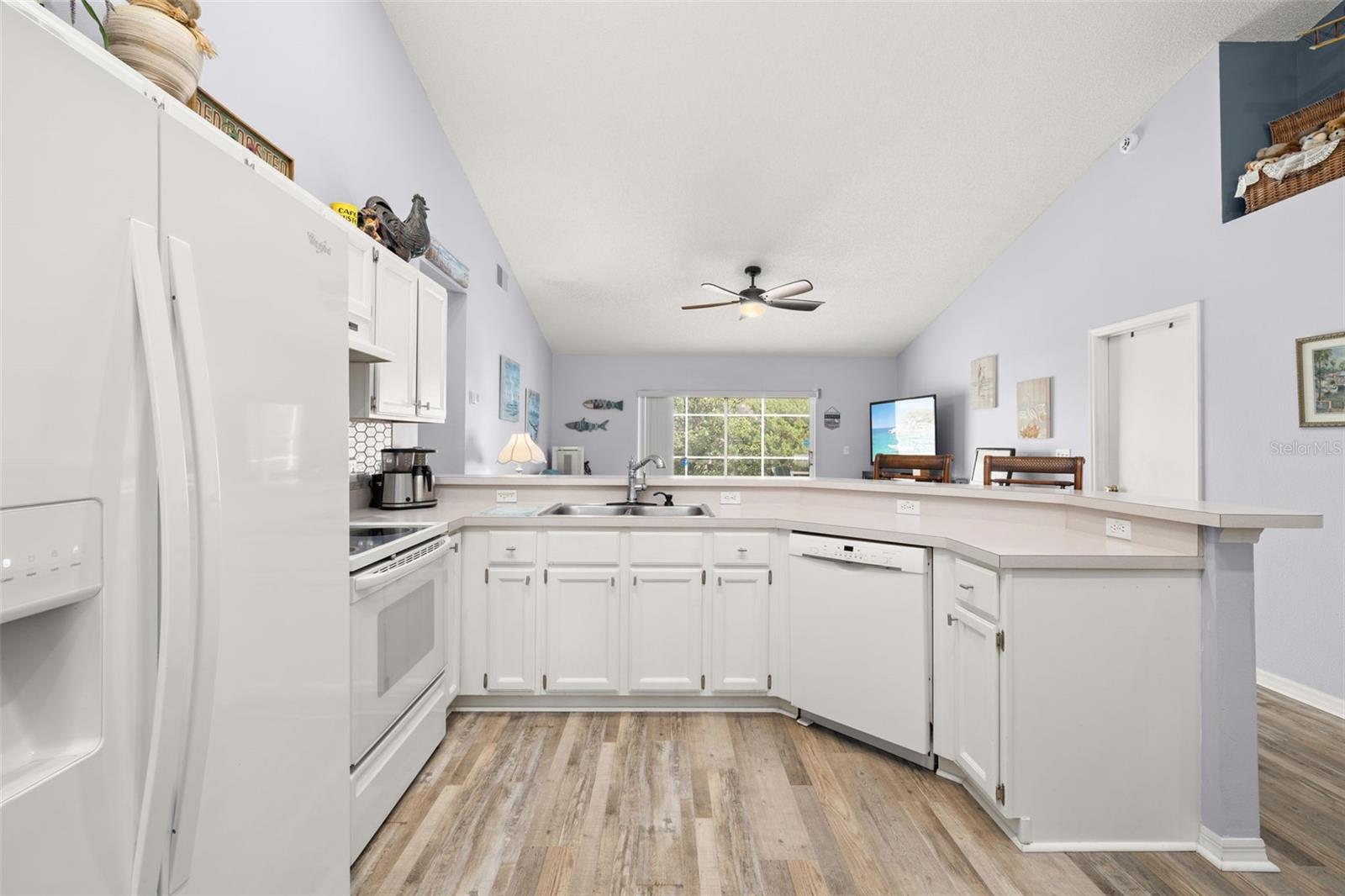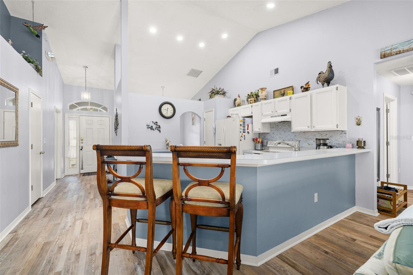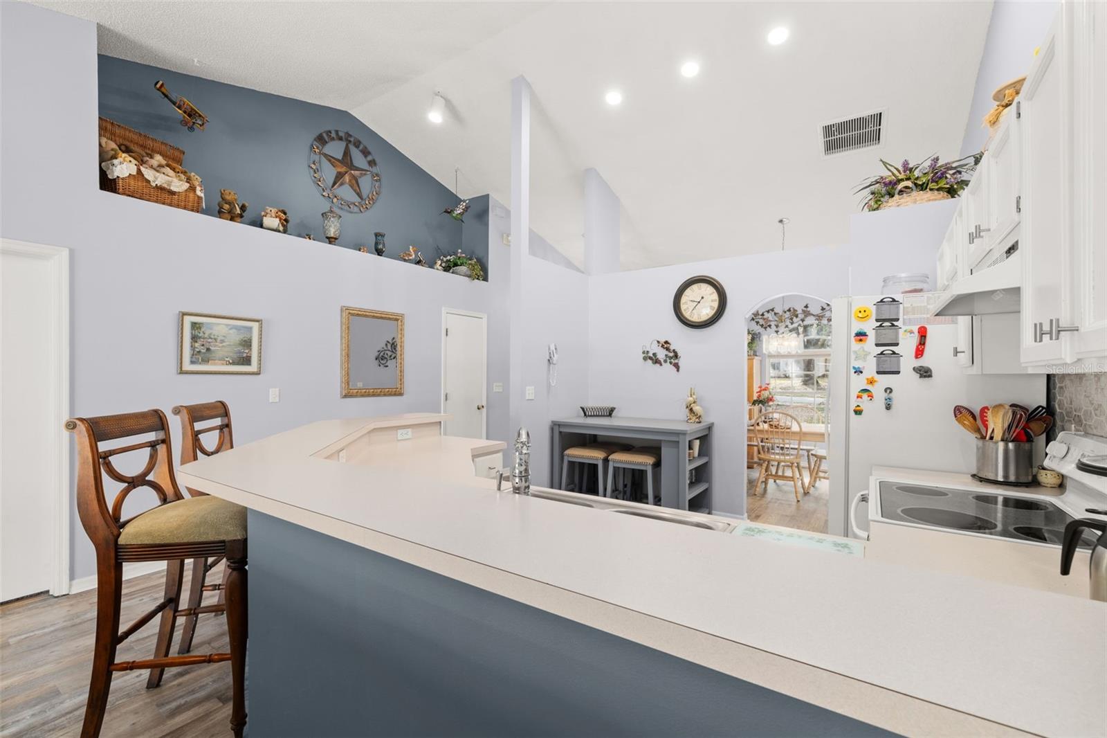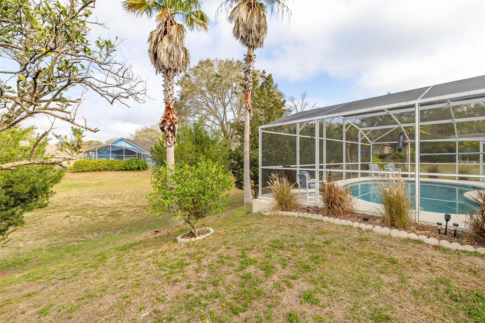 Nestled in the highly desirable Westridge community of Davenport, Florida, this beautifully maintained 3-bedroom, 2-bathroom pool home offers a thoughtful blend of style, comfort, and functionality. The open floor plan is highlighted by vaulted ceilings, luxury vinyl plank flooring throughout the common living areas, and recessed lighting that creates a bright, airy ambiance. A bonus flex room provides endless possibilities, whether used as an office, guest room, craft room, or play area. Recent updates include a new AC unit installed in 2023, a new roof in 2019 and water heater in 2020, and an insulated garage door for enhanced energy efficiency. The addition of attic insulation foil further helps reduce energy costs, and the bedrooms feature thicker carpet padding for added comfort. The secondary bathroom has been refreshed with a new vanity and updated fixtures for a modern touch. Step outside and enjoy a serene outdoor oasis with a covered, screened-in pool deck and porch, perfect for relaxation or entertaining. The 2020 rescreened lanai overlooks a peaceful, mostly dry retention area, providing both privacy and scenic views. Thoughtful details such as updated ceiling fans throughout enhance the home’s comfort and convenience. Many homeowners reside here fulltime, but the community also allows long term or short term rentals. Move-in ready and packed with modern amenities, this home is waiting to welcome its next owners to the vibrant and convenient lifestyle Westridge has to offer!