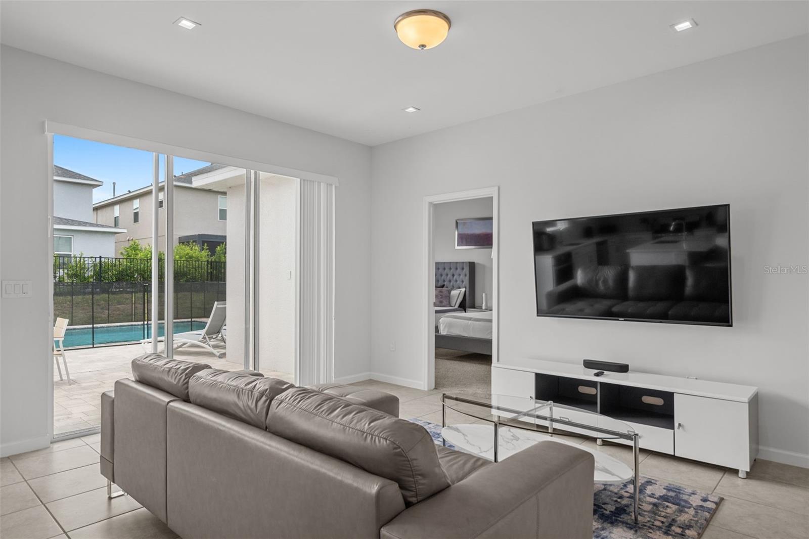 This extraordinary opportunity awaits you in the form of a luxurious 7-bedroom 5-Bathroom property, fully furnished and move-in ready. Nestled in the gated resort community of Eden Gardens, this turnkey home not only promises a perfect getaway for you but also presents a fantastic investment opportunity. This stunning single-family home is more than just a residence—it's a meticulously designed vacation retreat, offering a seamless blend of comfort, style, and convenience. With spacious interiors that include a game room and a private pool, it comfortably accommodates large families or groups of up to 22 guests. Each bedroom is equipped with smart TVs, ensuring entertainment for everyone. The kitchen is a chef’s paradise, featuring stainless steel appliances and everything needed to prepare delicious meals. Whether you’re cooking for a large group or a cozy family dinner, this kitchen is equipped to handle it all. The home’s perfect floor plan boasts an open concept that invites gatherings and relaxation, with ample space for both indoor and outdoor activities. Schedule your showing today to experience firsthand the luxury and charm this home has.