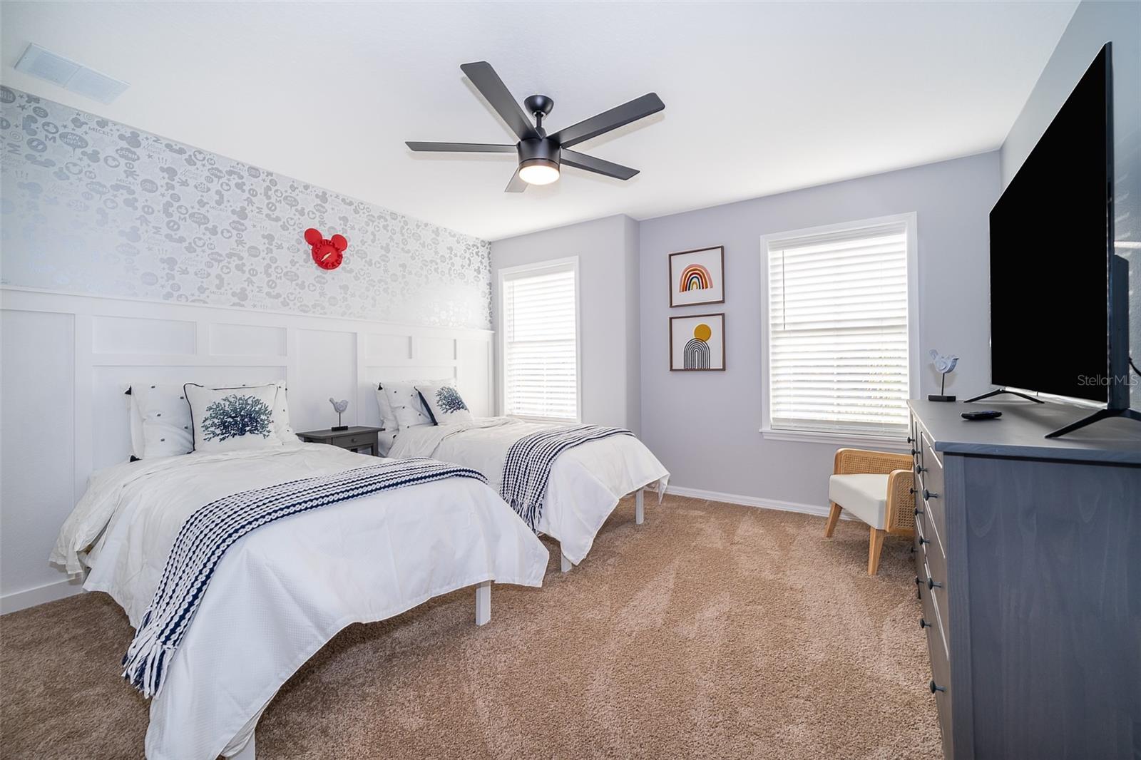 The listing agent is temporarily out of the country. Please TEXT him instead of phone call!!! Motivated seller. Fully furnished vacation rental property. Turn-Key. The owner has made the following updates: Roof $15,000, 2023, Refrigerator, TV, washing machine and other home appliances more than $20,000, The kitchen and bathroom floors have been completely renovated, with brand new furniture for over $50,000. The total cost about $100,000.This amazing and spacious two-story home features 6-bedroom, 4.5-bathroom home with a private pool located in the great community of Windwood Bay. Large spacious interior with lots of natural light coming through the home's many windows. The kitchen features a breakfast bar and a walk-in pantry. Open floor plan offers 3492 sq ft of living space and TWO master bedrooms each with their own a suite private bathroom. The Master bath includes his and her sinks and tub with a separate shower stall. The three guest rooms share the third bathroom. Half-bath is on the first floor and leads directly to the pool area! The laundry room is conveniently located on the 2nd. Flooring on first floor ceramic tile and second floor new carpet. Easy access to I-4, only minutes to Disney, shops, dining, and golf. Carpet in all bedrooms, stairs, and landing. This home is beautiful and ready for you and your family. Schedule your showing today!