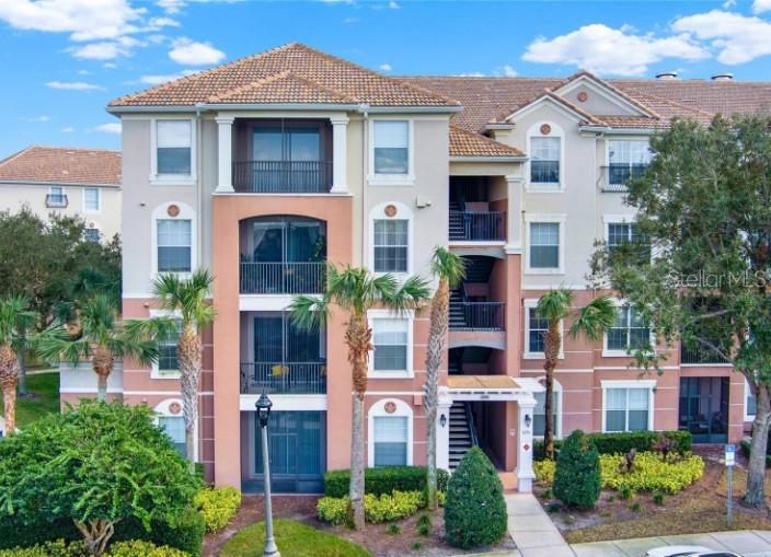 Welcome to your condominium in the resort-style community of Bella Trae by Del Webb, situated in the highly desirable Champions Gate, FL. Just 7 miles (under 20 minutes) from Disney World Property. This Bella Trae (Ventura Village) residence features 3 bedrooms and 2 full baths. A tiled hallway leads to a kitchen with ample cabinet space, which opens into a spacious living and dining room combination. The building boasts a new tile roof (2023) and includes a covered carport and storage unit. For your convenience, there are two elevators in each building! Enjoy your private enclosed balcony that offers a tranquil view of two ponds and the soothing sounds of a water fountain. Bella Trae provides a variety of amenities that are included in your HOA. Such as a gated entrance staffed with a gate guard from 6 am to 10 pm daily. A clubhouse that features resort-style amenities. After scanning your owner’s badge for clubhouse access, you are greeted by a spacious lobby decorated with modern furnishings, friendly front desk staff, and a coffee/tea station. You have a spacious, library-style living room complete with an inviting fireplace, TV, puzzle table, and more. Enjoy the billiards room with two re-felted pool tables, pool sticks and chalk, a kitchen and pantry area, and two multi-purpose rooms available for celebrations and dinners with friends (some restrictions apply). The clubhouse features an aerobics room with hundreds of free on-demand workouts and various equipment. After your cardio session, you can head across the hall to the well-equipped fitness center, which is stocked with free weights and state-of-the-art workout machines, TV, wi-fi, and more. Want a shower after your workout? The clubhouse offers men's and women's locker rooms equipped with lockers, showers, shampoo, conditioner, and body wash. For those who prefer outdoor activities, you can enjoy the zero-entry pool and hot tub, or take advantage of the new outdoor kitchen and fire pit area. Like to play pickleball or tennis, then you will appreciate the recently resurfaced pickleball and tennis court equipped with a new portable netting system. You can also practice your short game at the Putting Green in front of the clubhouse. Just grab the supplied club and golf ball from the front desk. Ventura updates currently in progress include new patio/balcony railings and screens, power washing, painting, and resealing of all buildings and carport areas. Resurfacing the Ventura parking lot and carport areas is scheduled for this summer. Carport roofs are currently being power-washed, painted, and resealed. This prime location provides easy access to theme parks, I-4, shopping centers, restaurants, wellness spas, banks, pharmacies, and more! This property is expected to sell quickly, so contact me or your representative to schedule a showing today.
