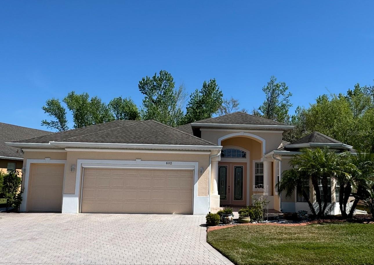 Immaculate 4-Bedroom Home in the Desirable 55+ Ridgewood Lakes Community Step into this meticulously maintained 4-bedroom, 2-bath home, where comfort and elegance blend seamlessly. As you enter through the stained glass 8-foot Pella double front doors, you are greeted by stunning bamboo flooring leading directly to the dining area. To the right, you’ll find the first bedroom, bathed in natural light from its west-facing window. Further down the hall is the spacious master suite, complete with an en-suite master bath for added privacy. This split-plan design ensures guests and family members have their own space, separated by a full bathroom. The open-concept kitchen overlooks the inviting living room and extends to a charming kitchen nook, where you can enjoy peaceful mornings with a view of the enclosed Florida room—an ideal retreat for relaxation. Step outside to a screened lanai, perfect for outdoor living, which opens to a conservation area with beautifully designed paver pathways wrapping around the home’s entrance. The mature landscaping enhances the serene atmosphere. The 2-car garage features an epoxy-coated floor, plus a separate golf cart door and an electric rolling screen door for convenience. The home’s expanded paver driveway adds to its curb appeal. Exclusive Community Amenities Nestled in the sought-after 55+ High Vista at Ridgewood Lakes community, residents enjoy a guarded entrance with 24/7 security. The $230/month High Vista HOA fee includes Spectrum Internet, basic cable (with two boxes), lawn maintenance, and access to the 12,000 sq. ft. private clubhouse. Additional $425 semi-annual Ridgewood Lakes HOA fees cover gated security, private road maintenance, and a community pool. This golf cart-friendly community is adjacent to the 18-hole Heron Golf Club, featuring a public restaurant. Additional amenities include: Heated outdoor pool & spa, Fitness center, library, and pub, Pickleball, tennis, bocce, and shuffleboard courts, Miles of scenic biking & walking trails. Prime Location Conveniently located near shopping, dining, and entertainment, with easy access to I-4, Disney, Universal Studios, and Orlando’s top attractions. Medical facilities, airports, and the SunRail station are all within reach, with Advent Health Hospital just 3 miles away. The seller has priced this home to sell and is open to providing a ‘SELLER CONCESSION’ to assist with closing costs or prepaid. Don’t miss this opportunity to live in one of Central Florida’s most desirable active-adult communities! Schedule your private showing today!