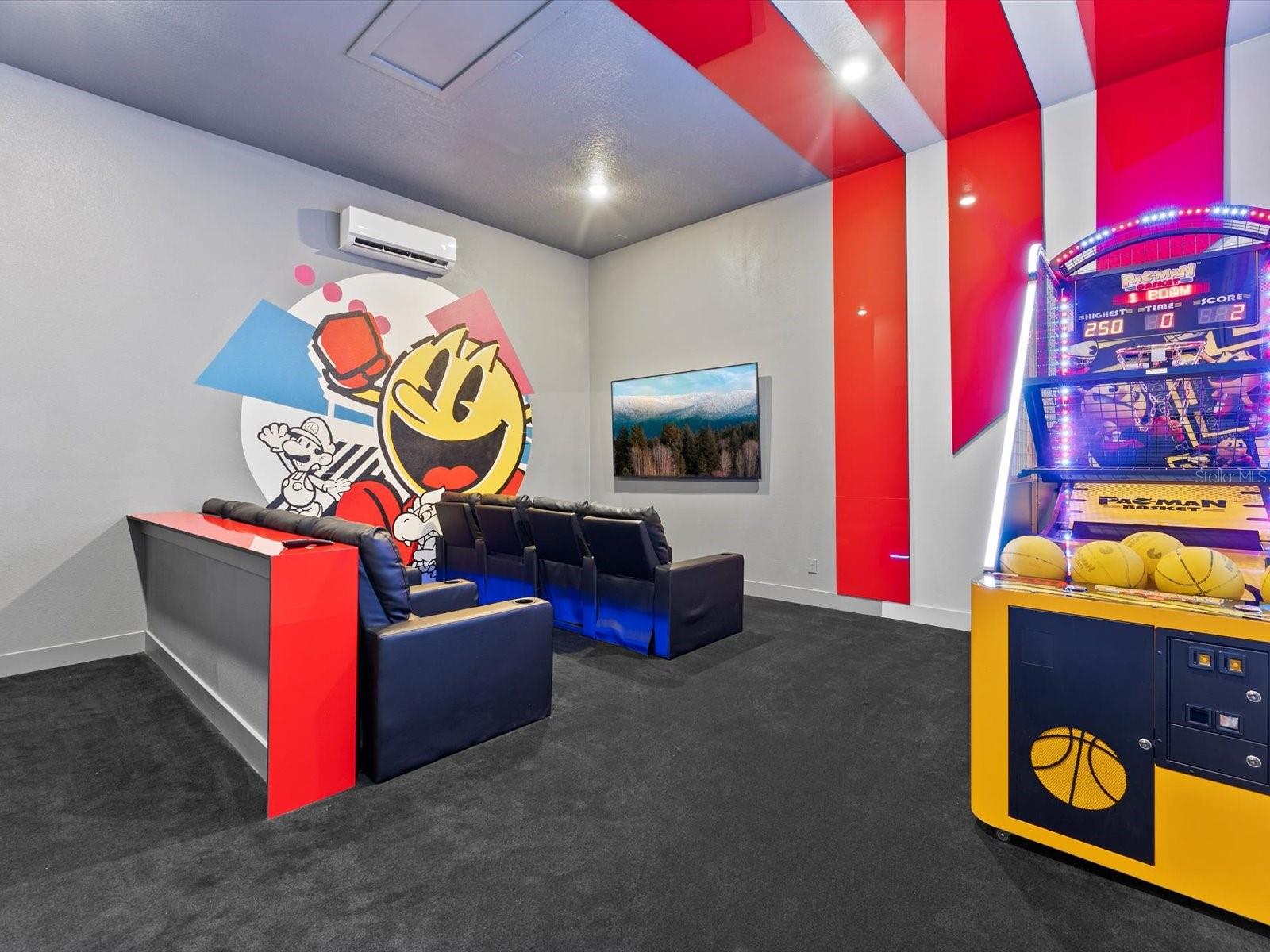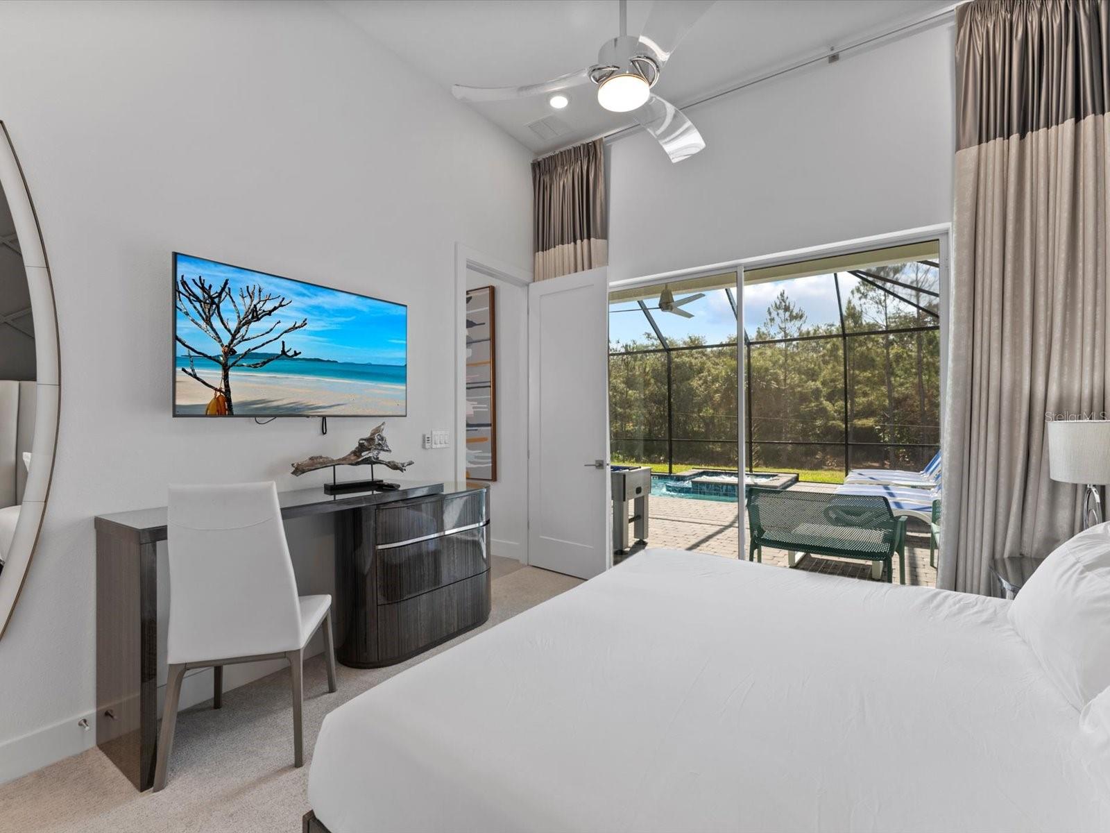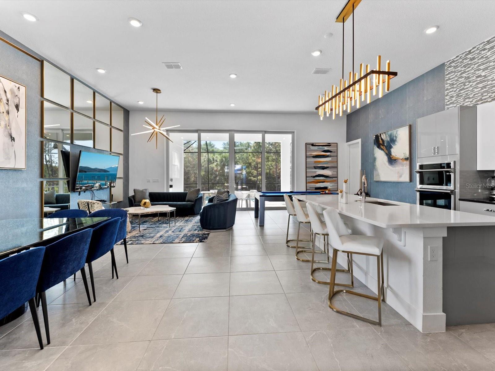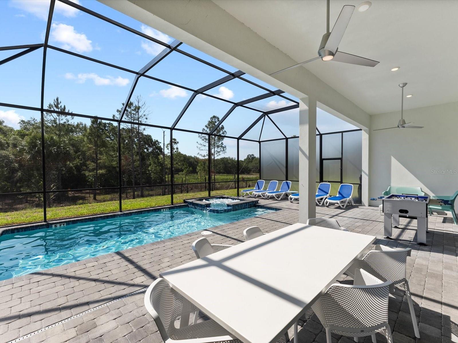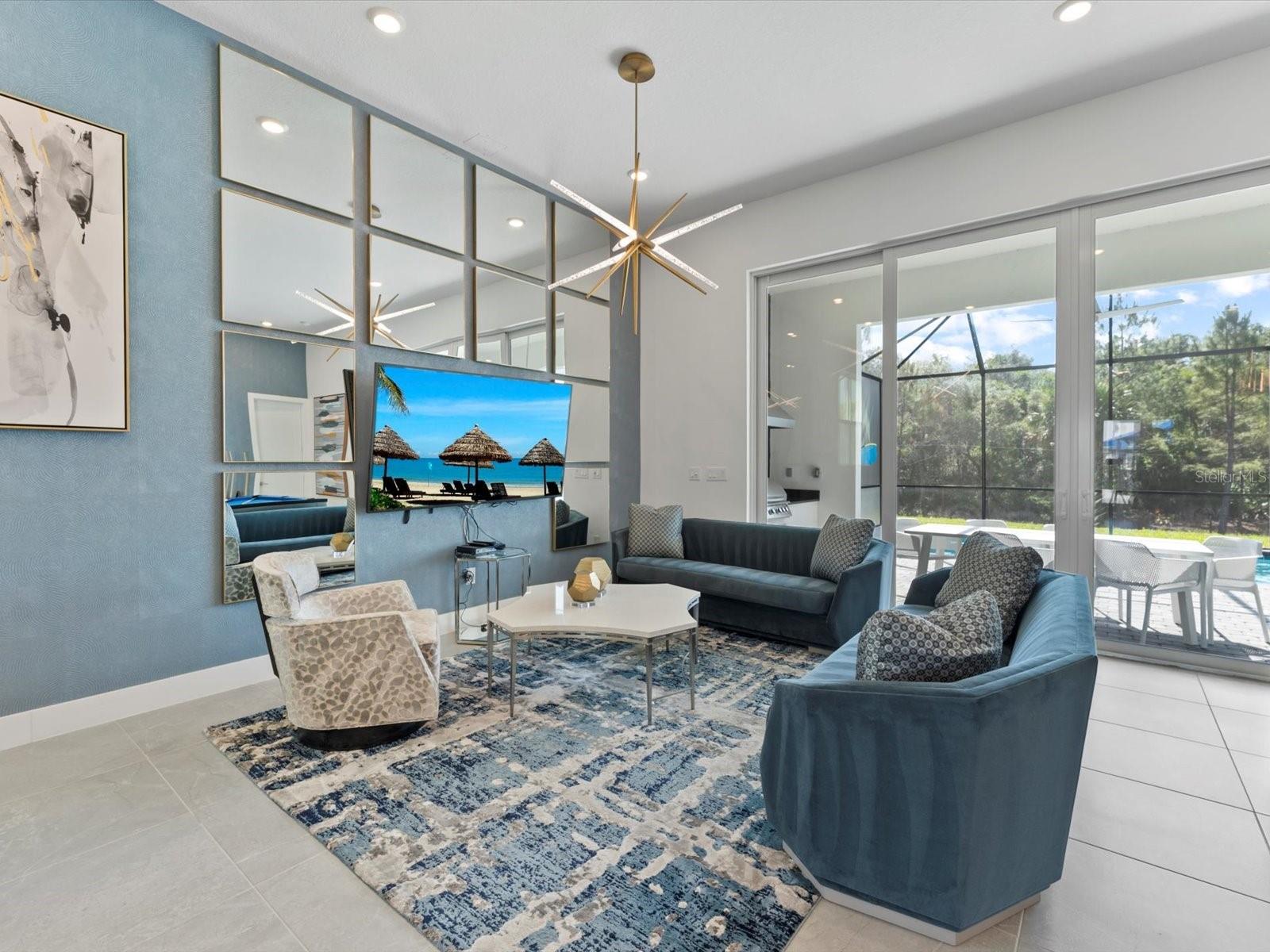Introducing a luxurious contemporary retreat close to Disney, boasting 6 bedrooms and 6.5 bathrooms, expertly designed with your ultimate comfort in mind. Villatel Village, is an exclusive community nestled within the prestigious Solterra resort just 12 miles away from the world-renowned Disney theme park. As you enter the home, you'll be greeted by soaring extra high ceilings that create a grandiose and spacious atmosphere throughout. Entertaining is a breeze with your own private pool and spa, complete with a screen for added privacy. Enjoy endless days of relaxation and fun in the sun in complete seclusion. The summer kitchen is the perfect way to take your outdoor living space to the next level, so you can cook, entertain, and enjoy the Florida sunshine all year. The upgraded, extra height kitchen cabinetry and granite countertops exude a sleek and modern aesthetic, making meal preparation a true joy. Luxury abounds in the bedrooms with custom blackout drapes, ensuring a restful and rejuvenating night's sleep. The themed children's bunk room is a dream come true for the little ones, while the games room and cinema provide hours of entertainment for all ages. The loft space is perfect for those looking for a little friendly competition, featuring games to keep everyone entertained for hours. And upgraded lighting throughout the home adds an extra touch of elegance. This stunning property offers a truly unique and unforgettable experience for those seeking the ultimate in luxury living. Don't miss out on the opportunity to make this extraordinary home your own. Designed for short-term rental use, this community offers a unique investment opportunity for those looking to maximize their rental income potential. One of the standout features of Villatel Village is the soon-to-be-completed conference center. This state-of-the-art facility will be the perfect venue for hosting events and celebrations of all kinds, adding an extra layer of convenience and versatility for guests. Whether you're looking to host a corporate retreat, family reunion, or other special occasion, Villatel Village's conference center is sure to impress. Located just a short distance from all of the attractions that Orlando has to offer, Villatel Village provides the perfect blend of convenience and luxury for both homeowners and renters alike. Don't miss out on the opportunity to be a part of this extraordinary community.