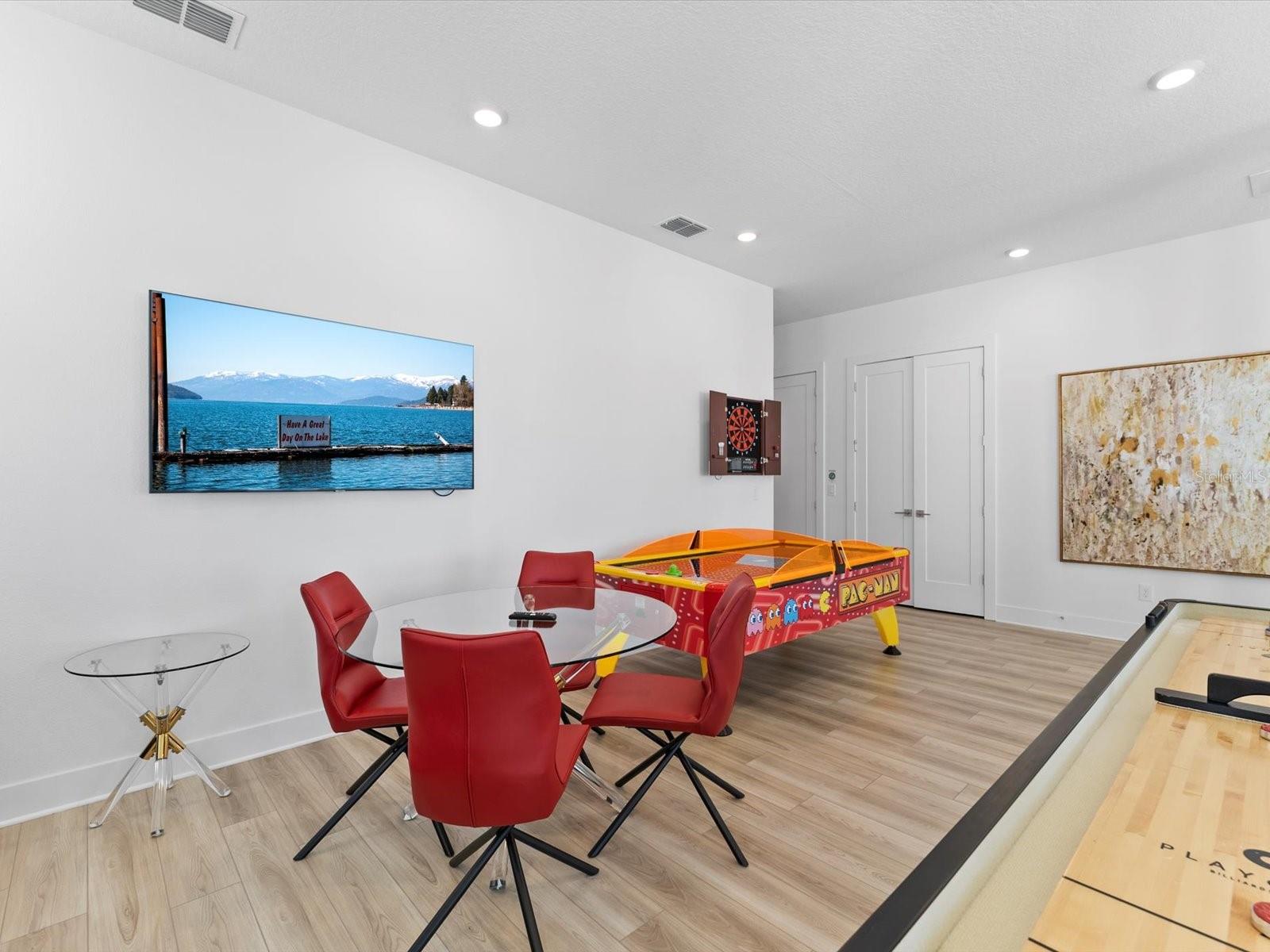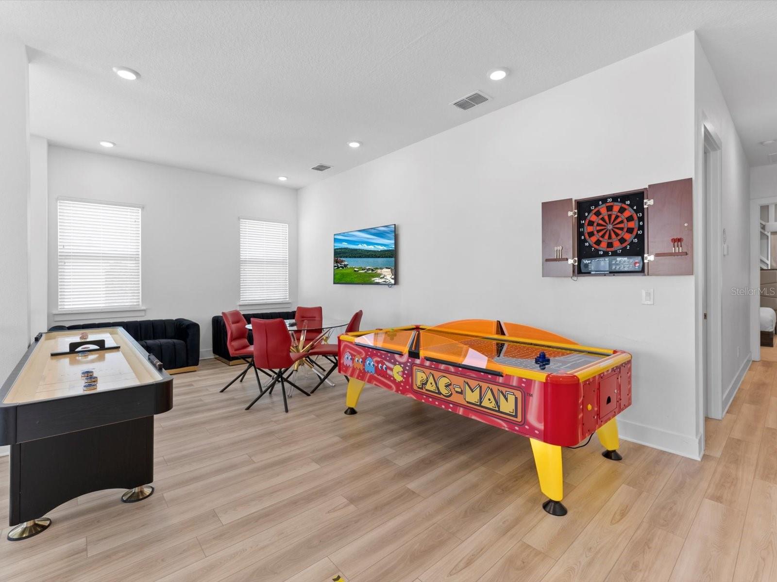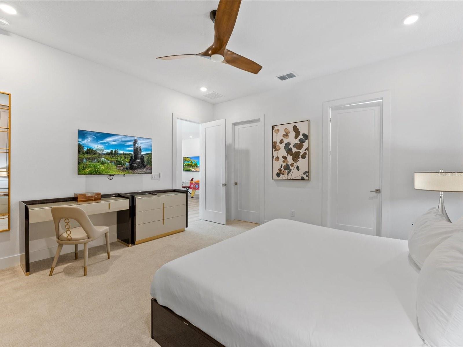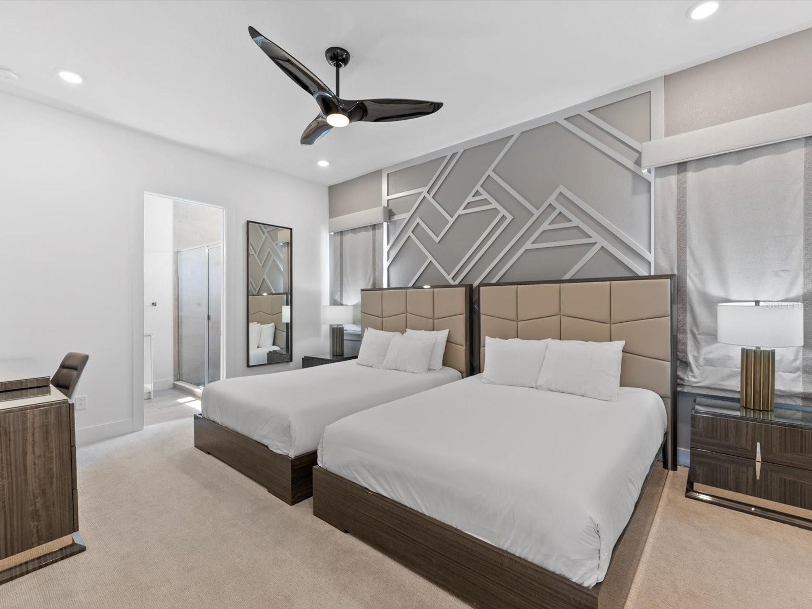 Introducing a luxurious contemporary retreat close to Disney, boasting 6 bedrooms and 6.5 bathrooms, expertly designed with your ultimate comfort in mind. Villatel Village, is an exclusive community nestled within the prestigious Solterra resort just 12 miles away from the world-renowned Disney theme park. As you enter the home, you'll be greeted by soaring extra high ceilings that create a grandiose and spacious atmosphere throughout. Entertaining is a breeze with your own private pool and spa, complete with a screen for added privacy. Enjoy endless days of relaxation and fun in the sun in complete seclusion. The summer kitchen is the perfect way to take your outdoor living space to the next level, so you can cook, entertain, and enjoy the Florida sunshine all year. The upgraded, extra height kitchen cabinetry and granite countertops exude a sleek and modern aesthetic, making meal preparation a true joy. Luxury abounds in the bedrooms with custom blackout drapes, ensuring a restful and rejuvenating night's sleep. The themed children's bunk room is a dream come true for the little ones, while the games room and cinema provide hours of entertainment for all ages. The loft space is perfect for those looking for a little friendly competition, featuring games to keep everyone entertained for hours. And upgraded lighting throughout the home adds an extra touch of elegance. This stunning property offers a truly unique and unforgettable experience for those seeking the ultimate in luxury living. Don't miss out on the opportunity to make this extraordinary home your own. Designed for short-term rental use, this community offers a unique investment opportunity for those looking to maximize their rental income potential. One of the standout features of Villatel Village is the soon-to-be-completed conference center. This state-of-the-art facility will be the perfect venue for hosting events and celebrations of all kinds, adding an extra layer of convenience and versatility for guests. Whether you're looking to host a corporate retreat, family reunion, or other special occasion, Villatel Village's conference center is sure to impress. Located just a short distance from all of the attractions that Orlando has to offer, Villatel Village provides the perfect blend of convenience and luxury for both homeowners and renters alike. Don't miss out on the opportunity to be a part of this extraordinary community.