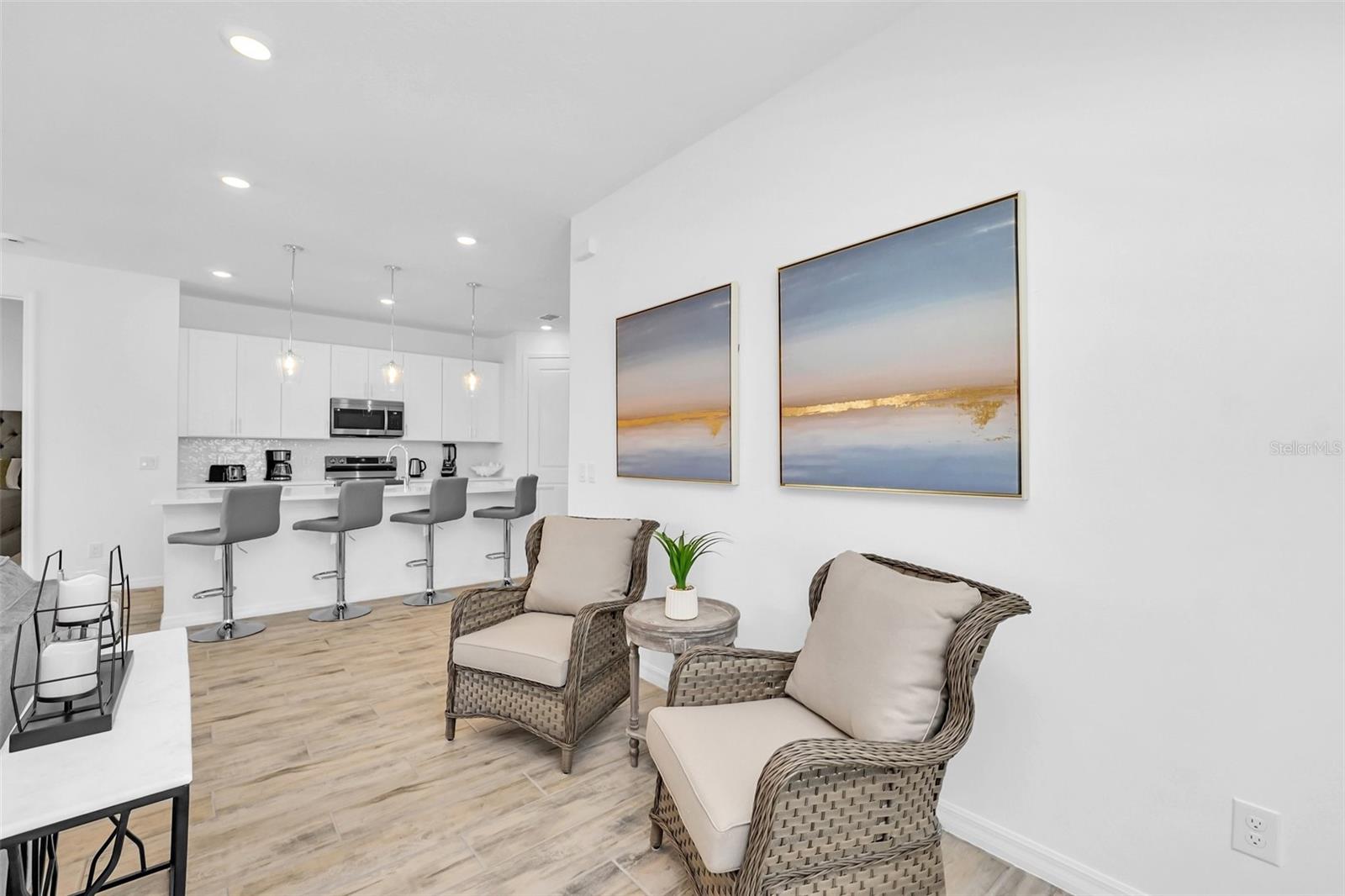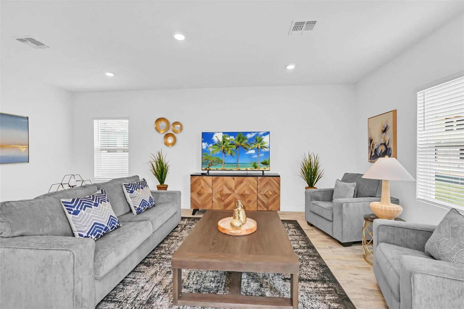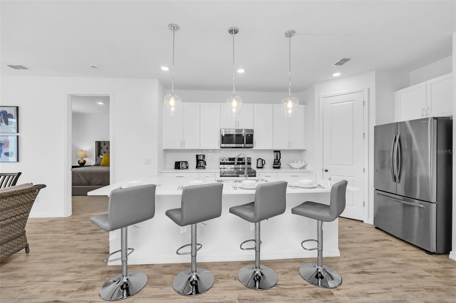 This beautiful 4-bedroom, 2-bathroom home, built in 2023, is approved for both short-term and long-term rentals and offers exceptional income potential. Nestled in the highly sought-after Champions Gate area, this home is just minutes from world-class golf courses, shopping, dining, and the Disney Parks—making it a strategic choice for investors and vacationers. Designed with elegance and functionality, it features 8' interior and exterior doors, upgraded LED lighting, and premium tile flooring throughout. The gourmet kitchen boasts quartz countertops, upgraded cabinetry, a stylish backsplash, and pendant lighting over the island. The spa-inspired master bath includes a frameless glass shower, and designer tile to the ceiling, creating a true retreat. Enjoy breathtaking conservation views from the extended French doors leading to the private backyard. Located in the Glen at West Haven, a community with resort-style amenities including a pool and gym, and featuring a low HOA, this home is excellent as a high-performing rental or a dream primary residence. Don’t miss this unique opportunity in one of the best locations in Central Florida!