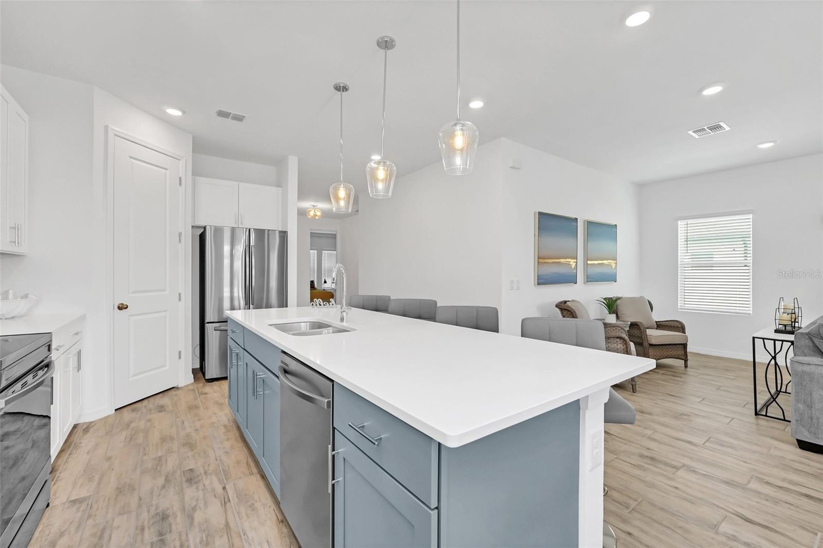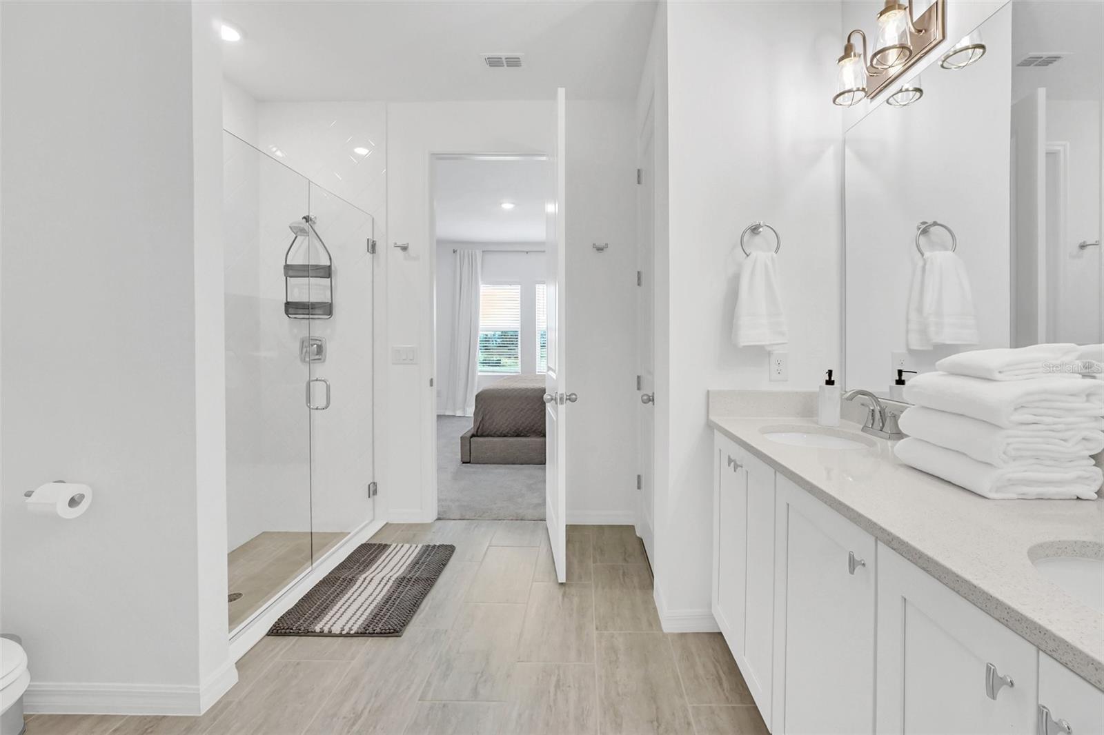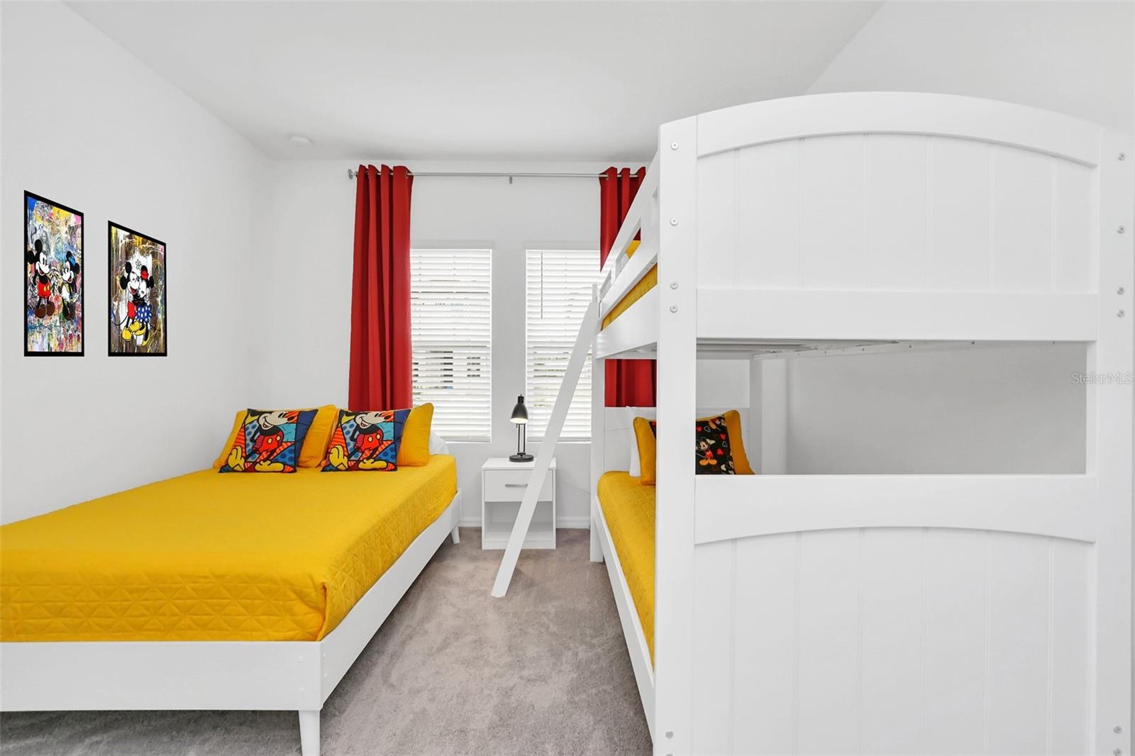 This beautiful 4-bedroom, 2-bathroom home, built in 2023, is approved for both short-term and long-term rentals and offers exceptional income potential. Nestled in the highly sought-after Champions Gate area, this home is just minutes from world-class golf courses, shopping, dining, and the Disney Parks—making it a strategic choice for investors and vacationers. Designed with elegance and functionality, it features 8' interior and exterior doors, upgraded LED lighting, and premium tile flooring throughout. The gourmet kitchen boasts quartz countertops, upgraded cabinetry, a stylish backsplash, and pendant lighting over the island. The spa-inspired master bath includes a frameless glass shower, and designer tile to the ceiling, creating a true retreat. Enjoy breathtaking conservation views from the extended French doors leading to the private backyard. Located in the Glen at West Haven, a community with resort-style amenities including a pool and gym, and featuring a low HOA, this home is excellent as a high-performing rental or a dream primary residence. Don’t miss this unique opportunity in one of the best locations in Central Florida!