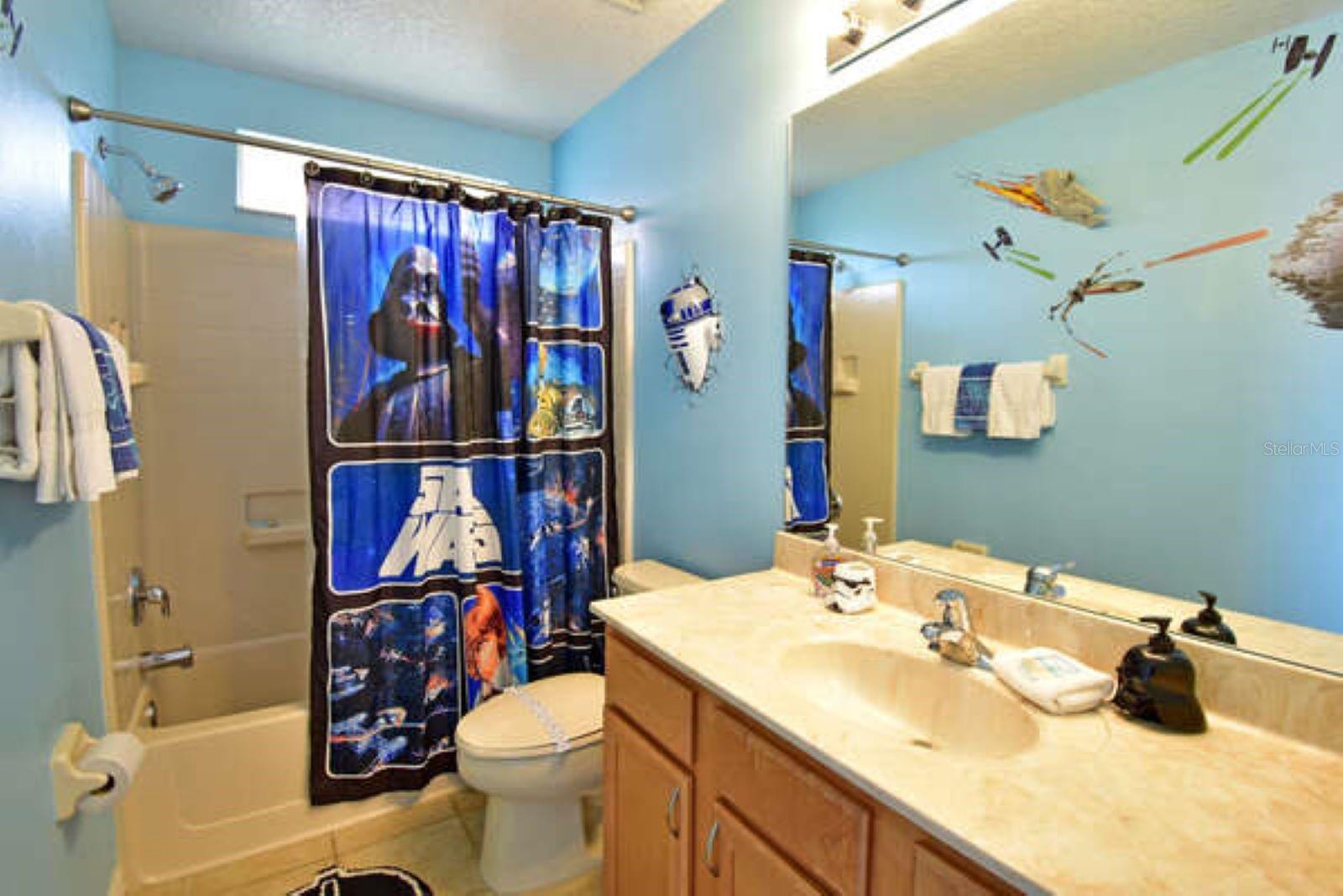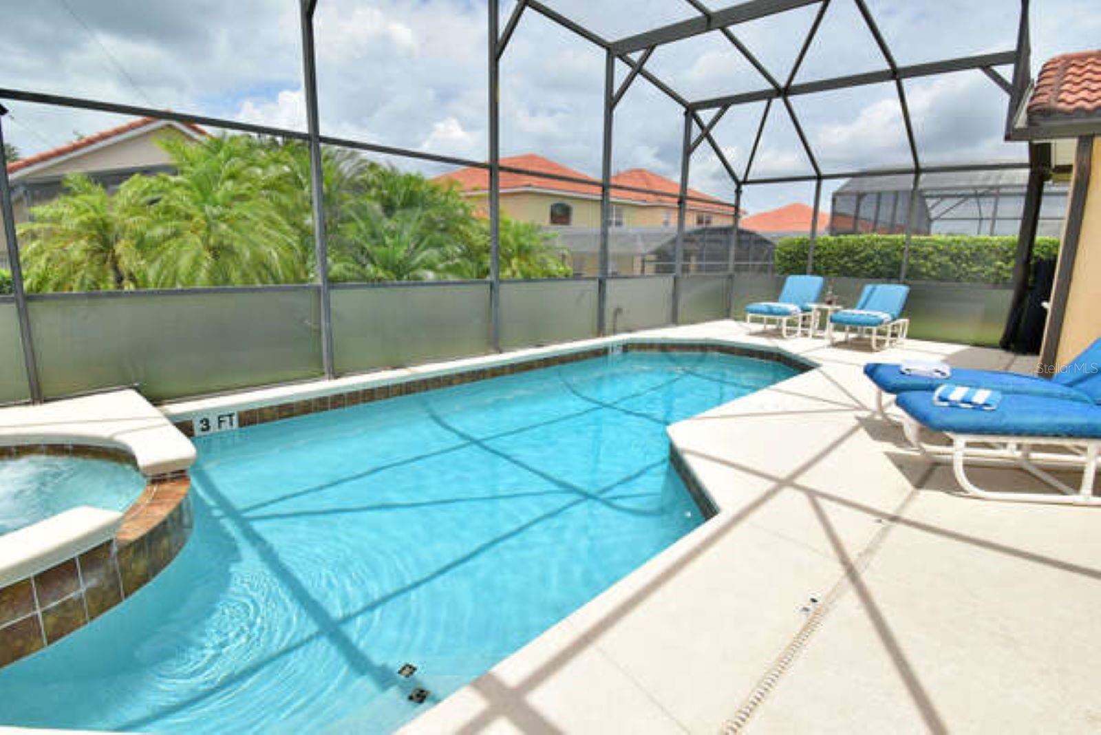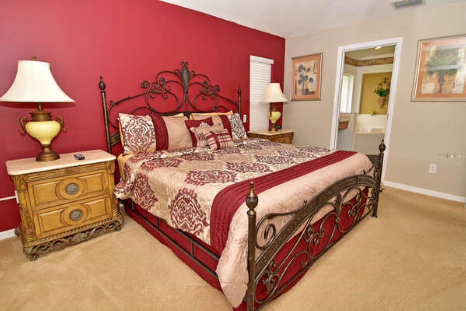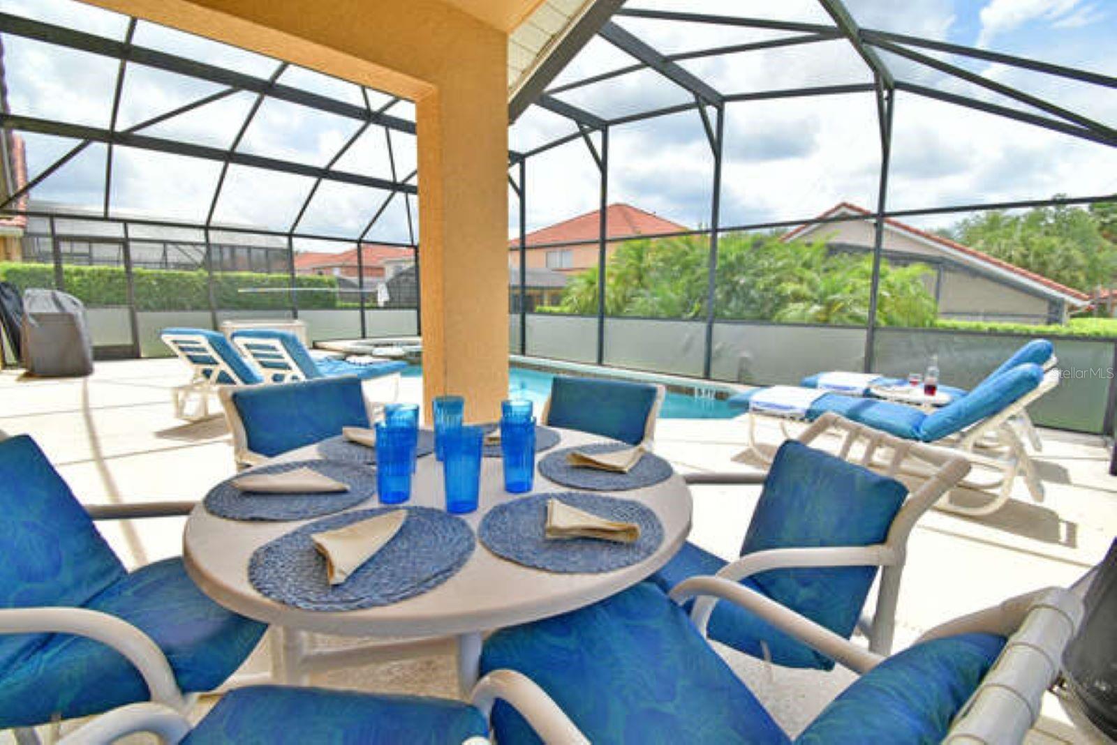 ENJOY IMMEDIATE INCOME WITH THIS SENSATIONAL FULLY FURNISHED, DISNEY-AREA, POOL HOME IN THE LUXURIOUS GUARD-GATED COMMUNITY OF SOLANA! Spacious, bright and airy 4/3 floorplan with 2 MASTER SUITES - Perfect for two families! High ceilings and large windows offer fabulous views of the shimmering pool. West-facing pools like this one are highly desirable because they receive sunshine all day long allowing a full day of tanning from your very own private oasis! The pool is also heated for year-round enjoyment! This beautiful home has so many great features including split bedrooms, open kitchen with barstool seating, separate formal living and dining rooms and a covered lanai – so important for rentals and resale! Designer touches & themed decor throughout. With a garage conversion to game room, this home is set up to enjoy and entertain. Tastefully furnished and decorated – everything stays! Appliances, electronics, games – all of it! New A/C, water heater, beds & mattresses, ROKU tv’s in every room! This stunning home also has special zoning which allows it to be used as a primary residence, vacation home and/or income-generating rental so you can put it to work when not in use. The owners have been able to enjoy 3 peak period vacations each year while still achieving a stellar booking history. The home is professionally managed and ready for the upcoming peak earning season, if desired! But wait there’s more - this spectacular home also comes with a worry-free home warranty for added peace of mind! Solana Resort is highly coveted because of its proximity to everything and amenity-rich offerings which include a poolside Tiki Bar, mini golf course, fitness center, movie theater, arcade and much more! This is a beautiful, well-priced property in a rapidly growing area - don't put off seeing it. Make an appt to view it today!