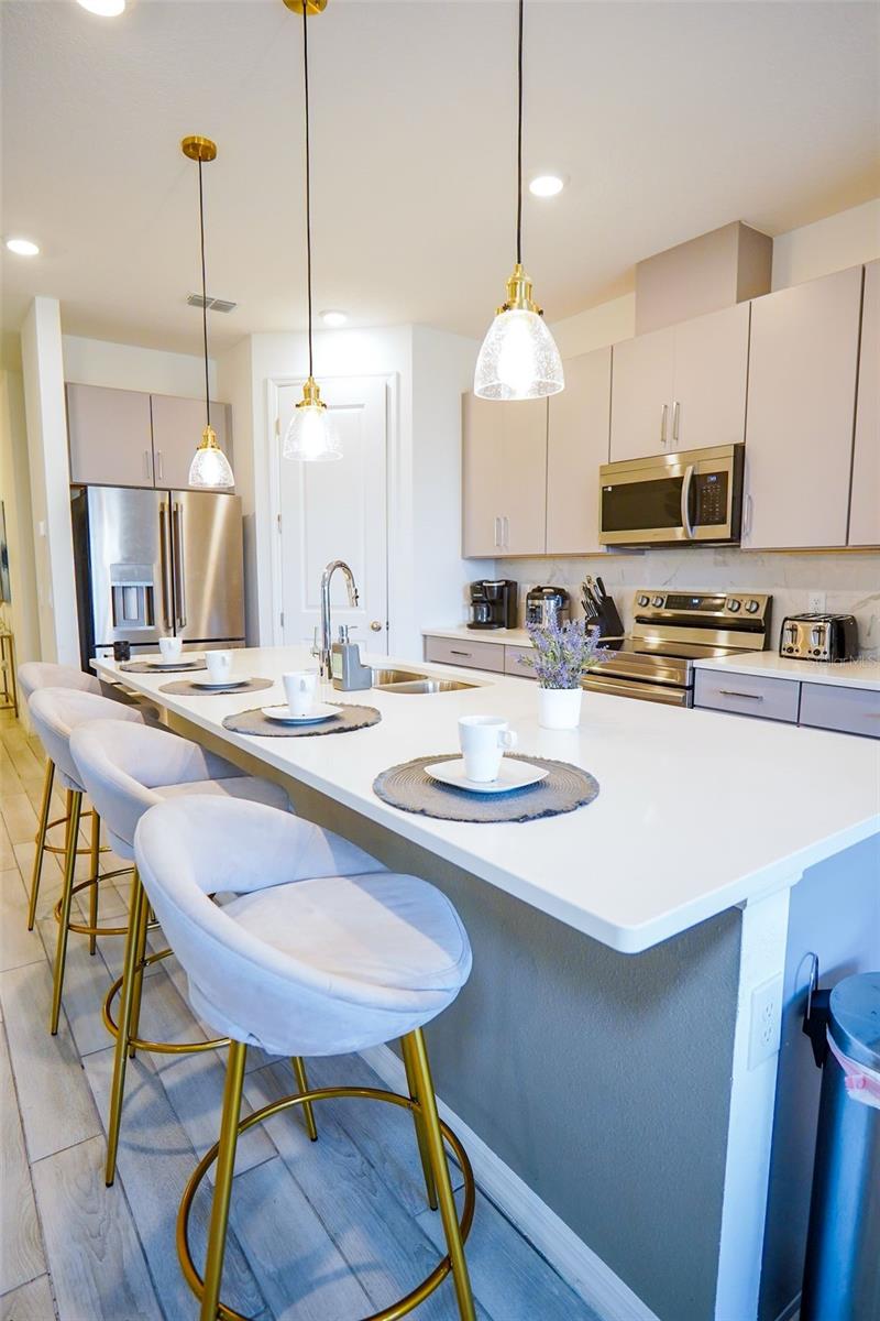 One or more photo(s) has been virtually staged. Welcome to this stunning single-story home in the highly desirable Champions Gate community.This property is perfect for personal enjoyment or as an investment opportunity. The community also allows short-term rentals. The open and bright floor plan is ideal for entertaining, with wood-like ceramic tile in the main living areas and cozy carpet in the bedrooms. The gourmet kitchen boasts stylish cabinetry, stainless steel appliances, and a large quartz island. Enjoy resort-style amenities, including a pool, clubhouse, fitness center, volleyball and tennis courts, and more. Conveniently located just minutes from top attractions, shopping, and major highways. The home is being sold fully furnished, making it move-in ready or a turnkey option for the next owner. The Seller will contribute $10,000 towards the buyer's closing costs.