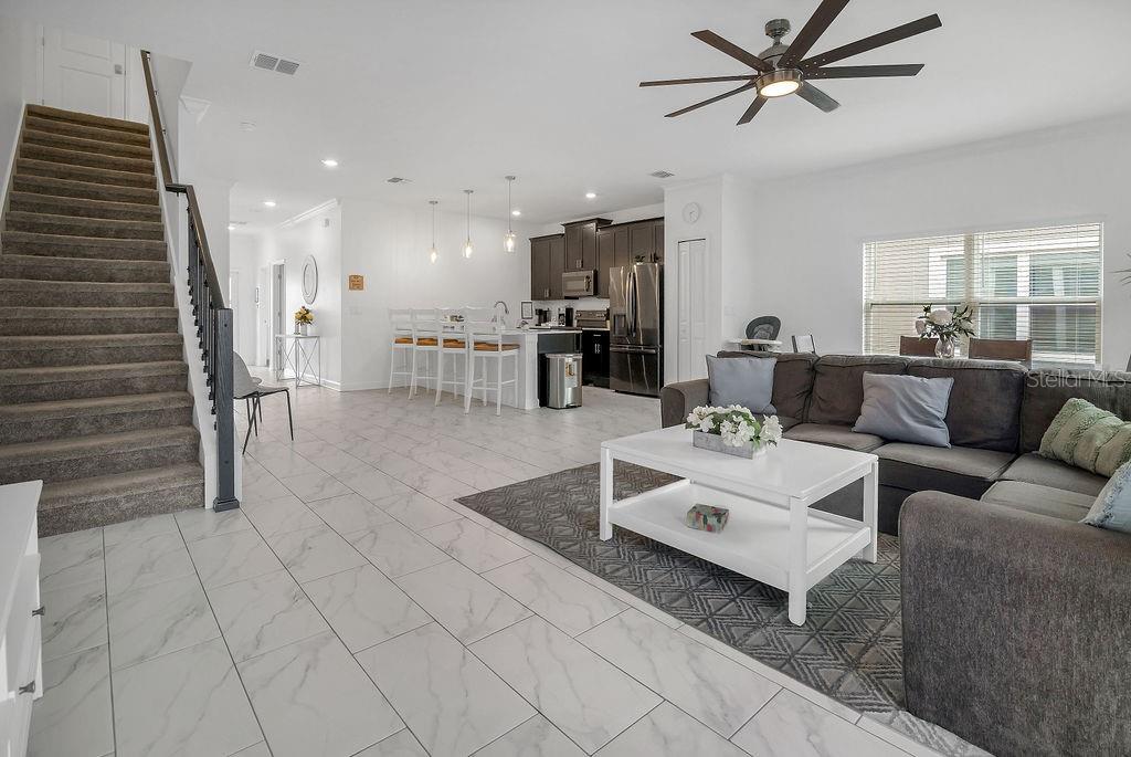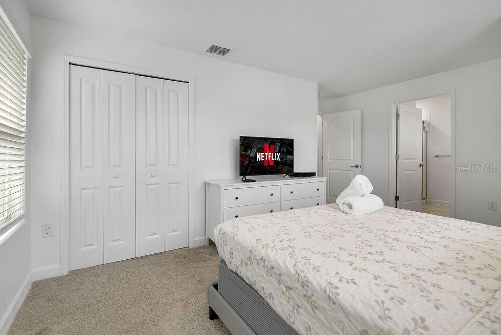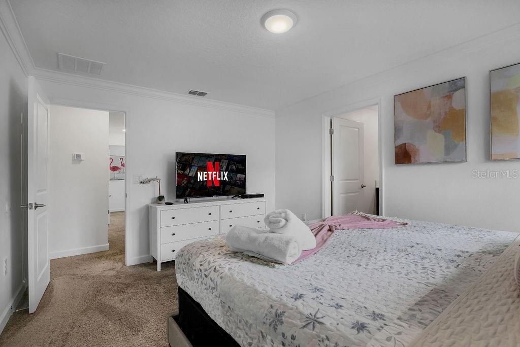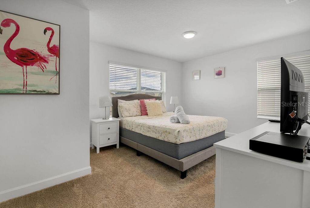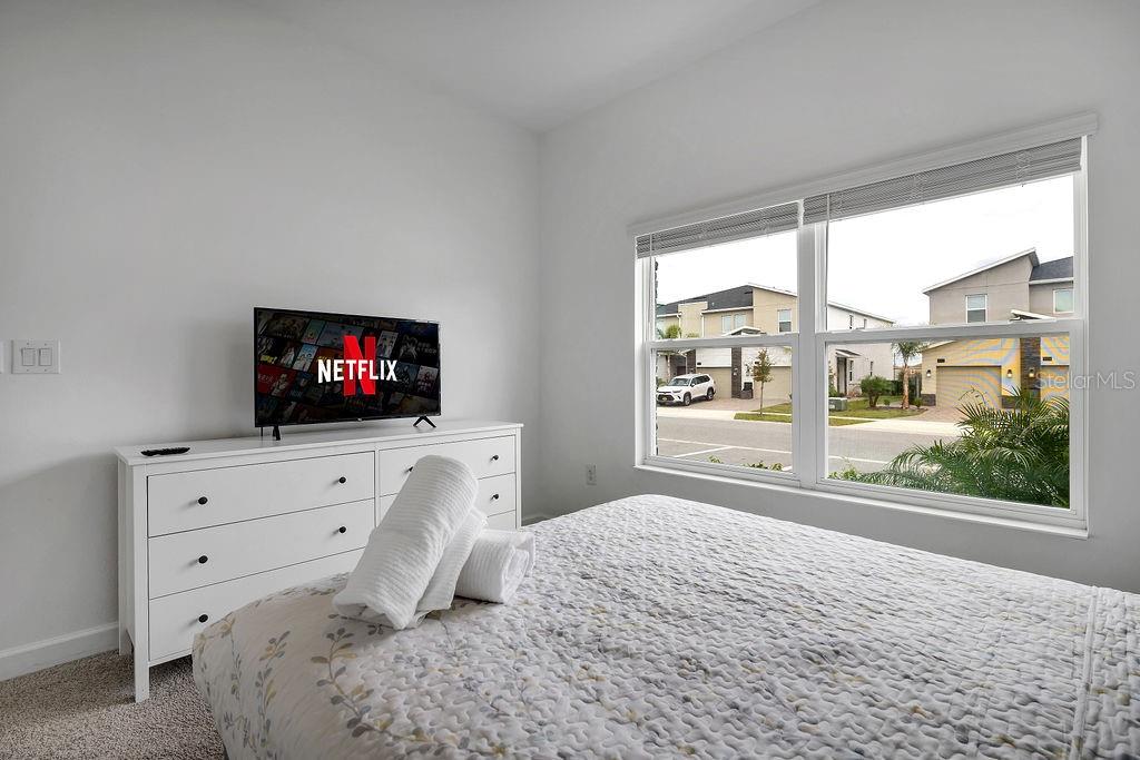 Come see this amazing fully furnished two-story townhome located in the Champions Gate Resort. This spacious property offers 5 bedrooms and 4 bathrooms. The first floor features an open-plan, fully equipped modern kitchen and dining area, spacious family room, two full-size bedrooms and a family bathroom, a spacious private deck with a pool and a covered lanai/patio area. The second floor features a loft area, two master suites and a fifth bedroom, each bedroom is furnished with comfortable bedding, and flat-screen TVs. Don't miss out on the amazing amenities at the Oasis Club featuring one pool for the little ones with awesome water entertainment, a lazy river, adult pool with bar, private cabanas, jacuzzi, restaurant, gym with the latest equipment, game room, movie theater and office center. Other amenities include tennis courts, golf course, a water park, mini soccer, playgrounds and basketball. Located 15 minutes from Disney parks, 30 minutes from Universal Studios, 15 minutes from Premium Outlets, near restaurants and shopping, 10 minutes from US 27, I-4, dinning and shopping.