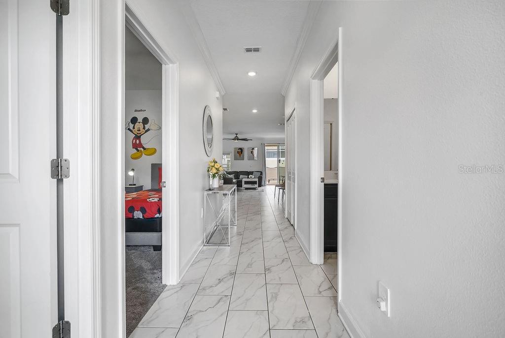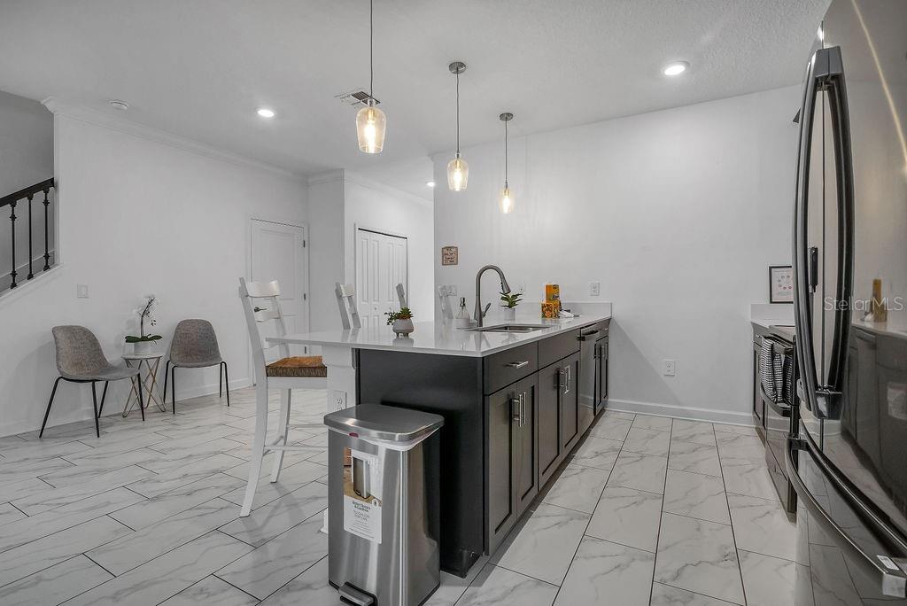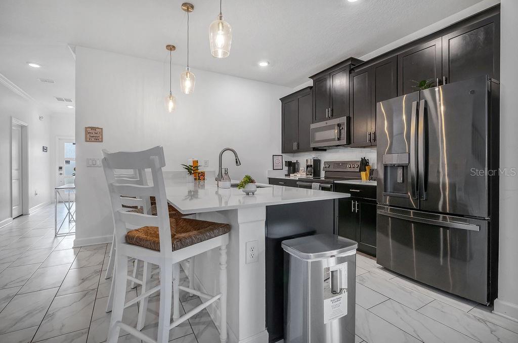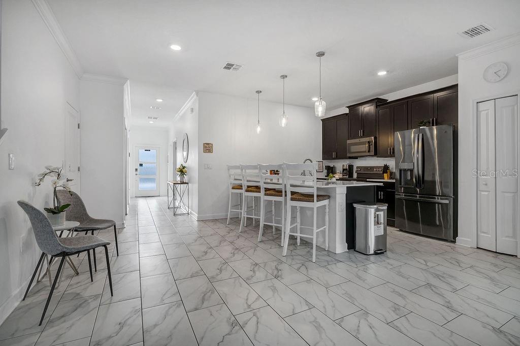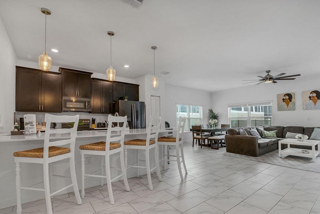 Come see this amazing fully furnished two-story townhome located in the Champions Gate Resort. This spacious property offers 5 bedrooms and 4 bathrooms. The first floor features an open-plan, fully equipped modern kitchen and dining area, spacious family room, two full-size bedrooms and a family bathroom, a spacious private deck with a pool and a covered lanai/patio area. The second floor features a loft area, two master suites and a fifth bedroom, each bedroom is furnished with comfortable bedding, and flat-screen TVs. Don't miss out on the amazing amenities at the Oasis Club featuring one pool for the little ones with awesome water entertainment, a lazy river, adult pool with bar, private cabanas, jacuzzi, restaurant, gym with the latest equipment, game room, movie theater and office center. Other amenities include tennis courts, golf course, a water park, mini soccer, playgrounds and basketball. Located 15 minutes from Disney parks, 30 minutes from Universal Studios, 15 minutes from Premium Outlets, near restaurants and shopping, 10 minutes from US 27, I-4, dinning and shopping.