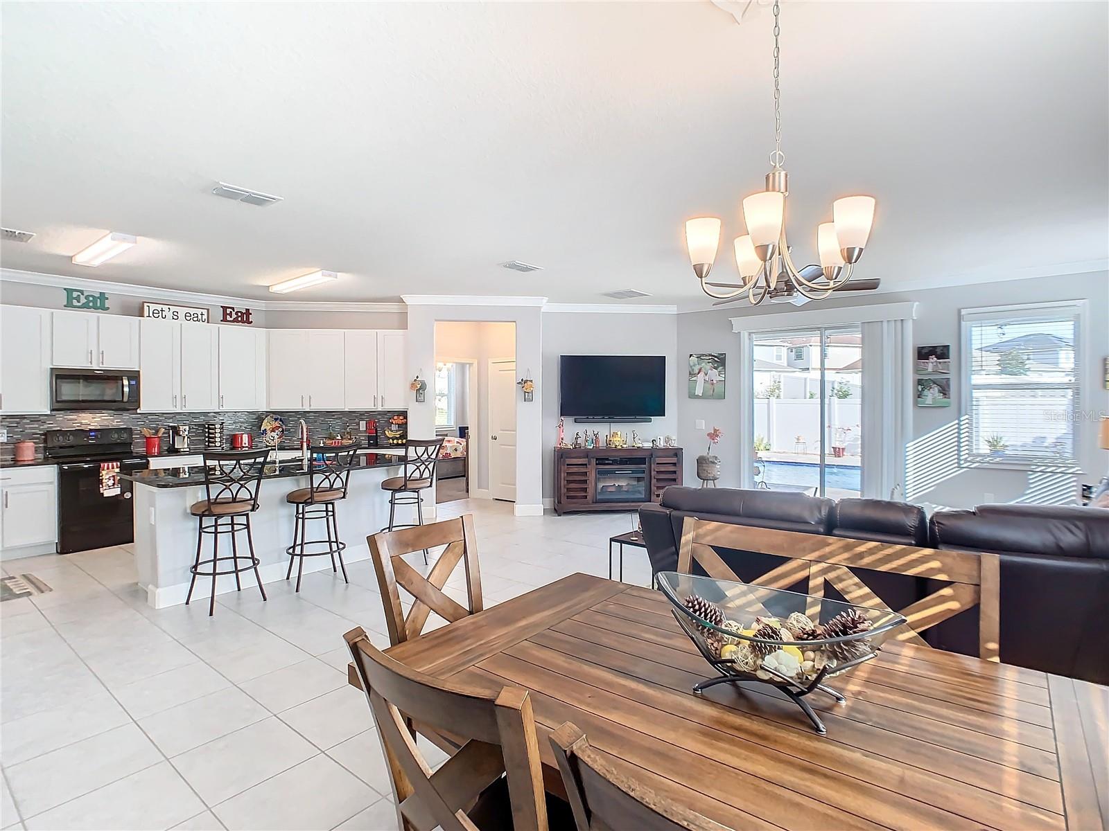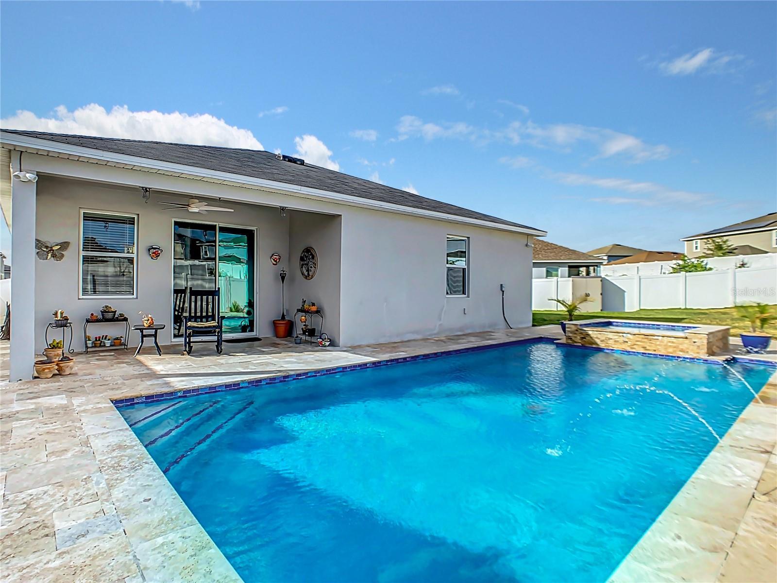 Welcome to the sought-after Magnolia at Westside community in Four Corners—Where modern luxury meets convenience. This Beautifully UPGRADED HOME built in 2020, spans over 1989 square feet, offering a seamless blend of elegance and functionality across its 4 bedrooms and 2 baths. Step inside to discover an inviting open floor plan adorned with luxury vinyl plank flooring and plush carpeting in the bedrooms, creating a warm and welcoming atmosphere throughout. The heart of the home, the kitchen, is a culinary enthusiast's dream, featuring exquisite quartz countertops, sleek stainless steel appliances, 42-inch shaker cabinets with SOFT-CLOSE drawers, and state-of-the-art fixtures. An instant hot water heater ensures convenience at your fingertips, adding to the home's modern appeal. Unwind in the expansive master suite, complete with QUARTZ counters in the ensuite bathroom and a stand-up shower for ultimate relaxation and comfort. The attention to detail extends outdoors, where a custom-built pool and patio await. This "smart" pool and jacuzzi can be heated via Bluetooth in just 20 minutes, offering a private oasis right in your backyard. Imagine evenings spent lounging by the saltwater swimming pool, surrounded by upgraded features like crown molding, hurricane-resistant doors and windows, and a water purifying filter—details that elevate everyday living to a new level of luxury. Located on a peaceful cul-de-sac, this home not only offers tranquility but also convenient proximity to top-rated schools, Advent Health Celebration, and a short drive to the magical worlds of Disney and Universal. Embrace the resort-style amenities of the Magnolia at Westside community, ensuring there's always something to enjoy right outside your door. With OVER $100,000 in upgrades, including the EXQUISITE HEATED POOL WITH JACUZZY, WATER SOFTENER SYSTEM and all the LUXURIOUS enhancements, this homes is more than just a residence—it's an unparalleled lifestyle experience waiting to be enjoyed. Don't miss the opportunity to make this gem your own and immerse yourself in the best of Florida living.