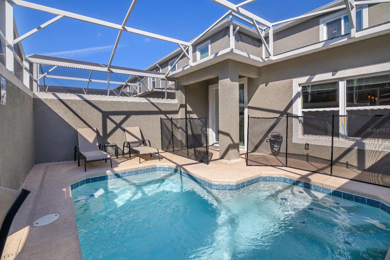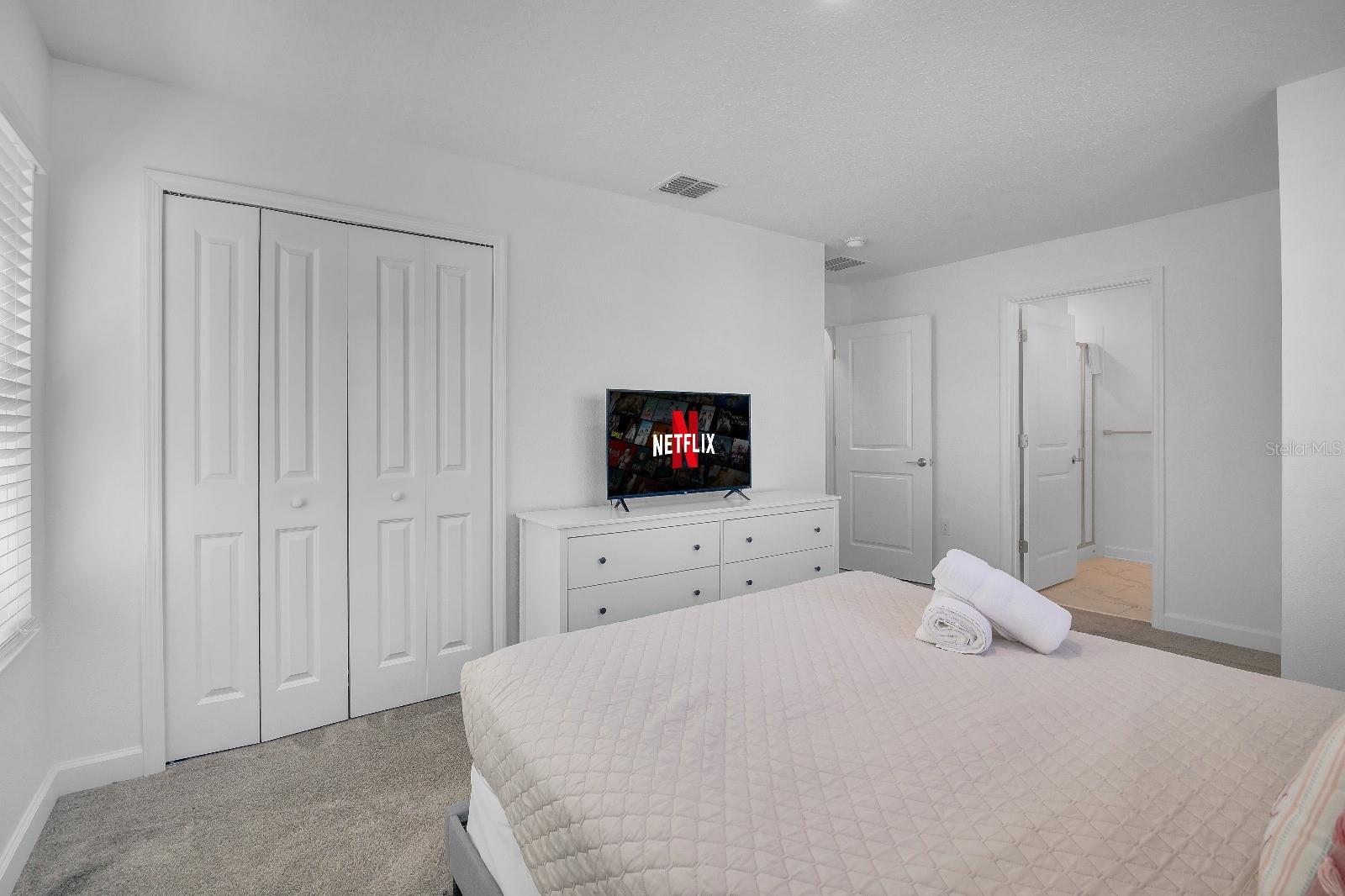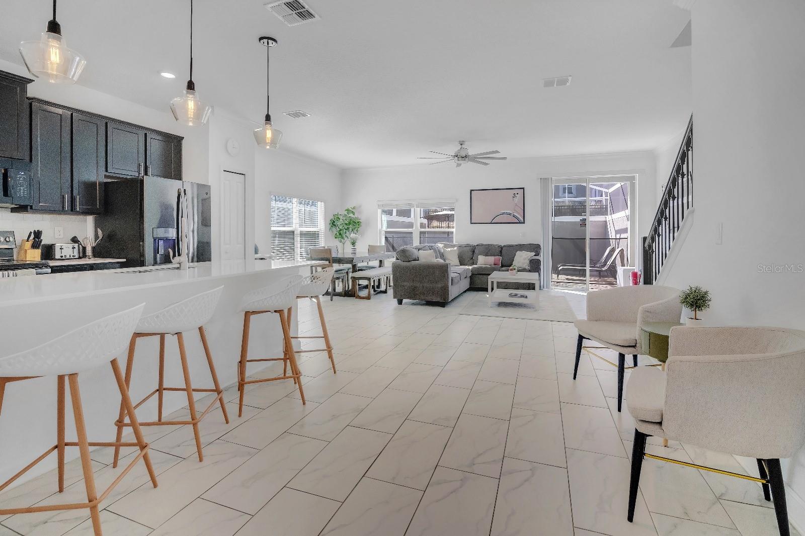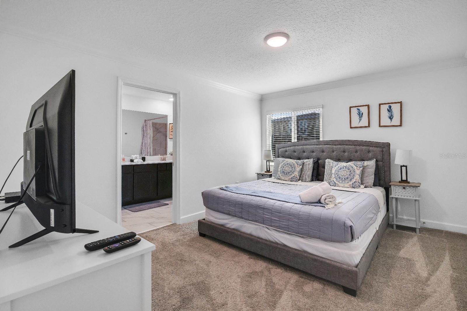 Come see this amazing fully furnished two-story townhome located in the Champions Gate Resort. This spacious property offers 5 bedrooms and 4 bathrooms. The first floor features an open-plan, fully equipped modern kitchen and dining area, spacious family room, two full-size bedrooms and a family bathroom, a spacious private deck with a pool and a covered lanai/patio area. The second floor features a loft area, two master suites and a fifth bedroom, each bedroom is furnished with comfortable bedding, and flat-screen TVs. Don't miss out on the amazing amenities at the Oasis Club featuring one pool for the little ones with awesome water entertainment, a lazy river, adult pool with bar, private cabanas, jacuzzi, restaurant, gym with the latest equipment, game room, movie theater and office center. Other amenities include tennis courts, golf course, a water park, mini soccer, playgrounds and basketball. Located 15 minutes from Disney parks, 30 minutes from Universal Studios, 15 minutes from Premium Outlets, near restaurants and shopping, 10 minutes from US 27, I-4, dinning and shopping.