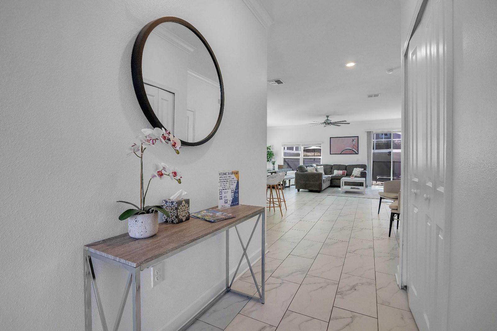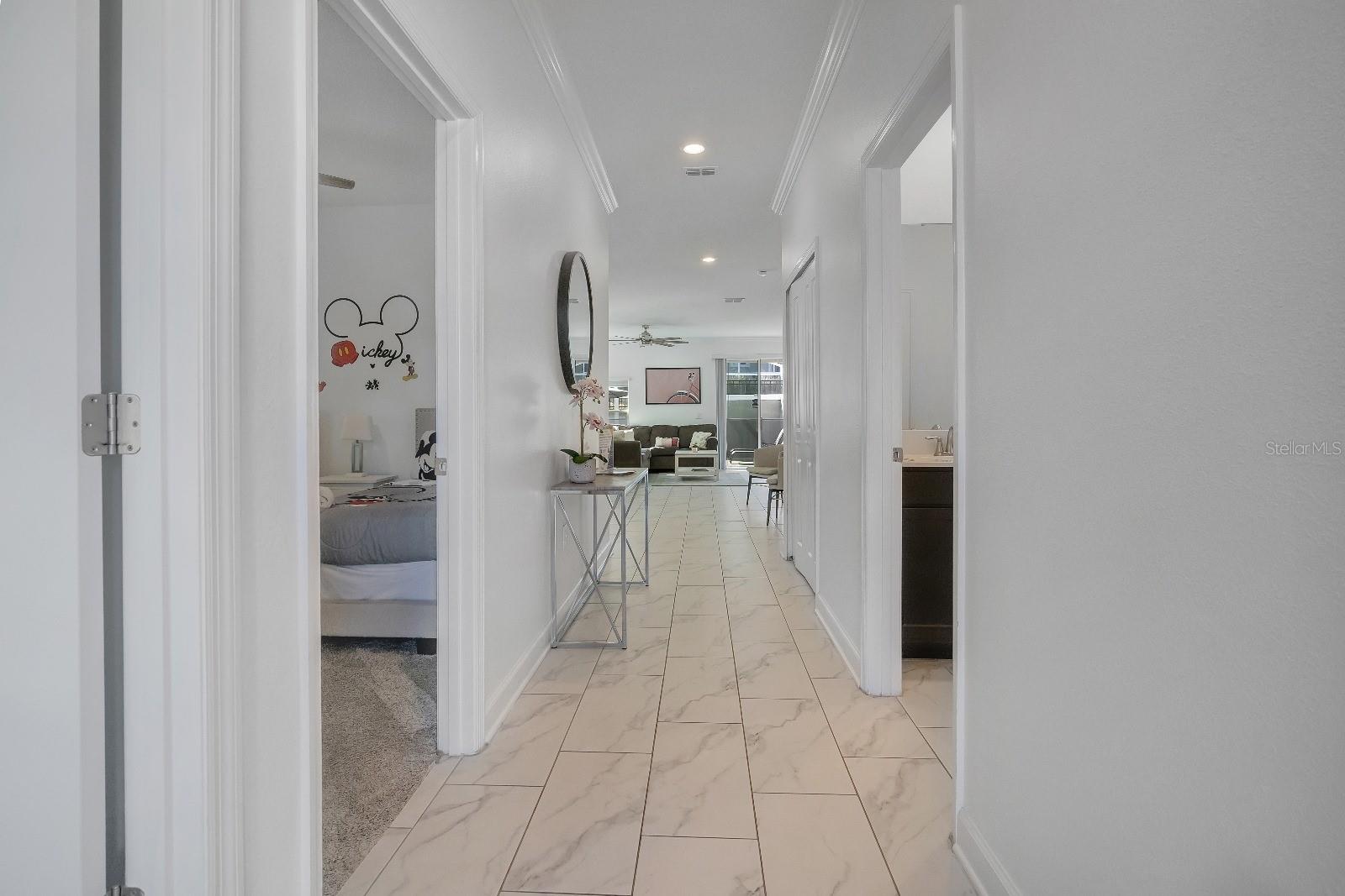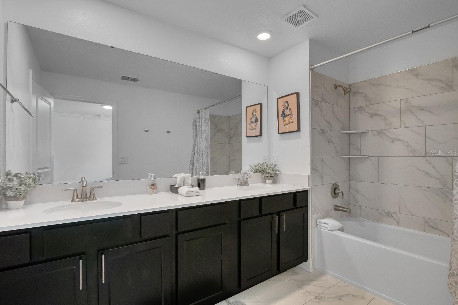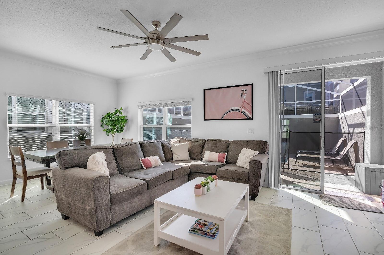 Come see this amazing fully furnished two-story townhome located in the Champions Gate Resort. This spacious property offers 5 bedrooms and 4 bathrooms. The first floor features an open-plan, fully equipped modern kitchen and dining area, spacious family room, two full-size bedrooms and a family bathroom, a spacious private deck with a pool and a covered lanai/patio area. The second floor features a loft area, two master suites and a fifth bedroom, each bedroom is furnished with comfortable bedding, and flat-screen TVs. Don't miss out on the amazing amenities at the Oasis Club featuring one pool for the little ones with awesome water entertainment, a lazy river, adult pool with bar, private cabanas, jacuzzi, restaurant, gym with the latest equipment, game room, movie theater and office center. Other amenities include tennis courts, golf course, a water park, mini soccer, playgrounds and basketball. Located 15 minutes from Disney parks, 30 minutes from Universal Studios, 15 minutes from Premium Outlets, near restaurants and shopping, 10 minutes from US 27, I-4, dinning and shopping.